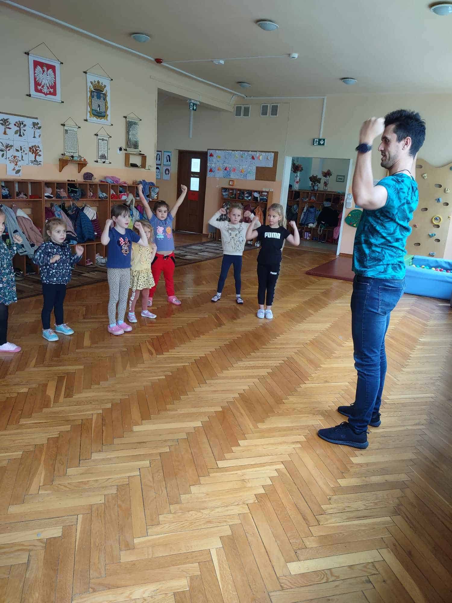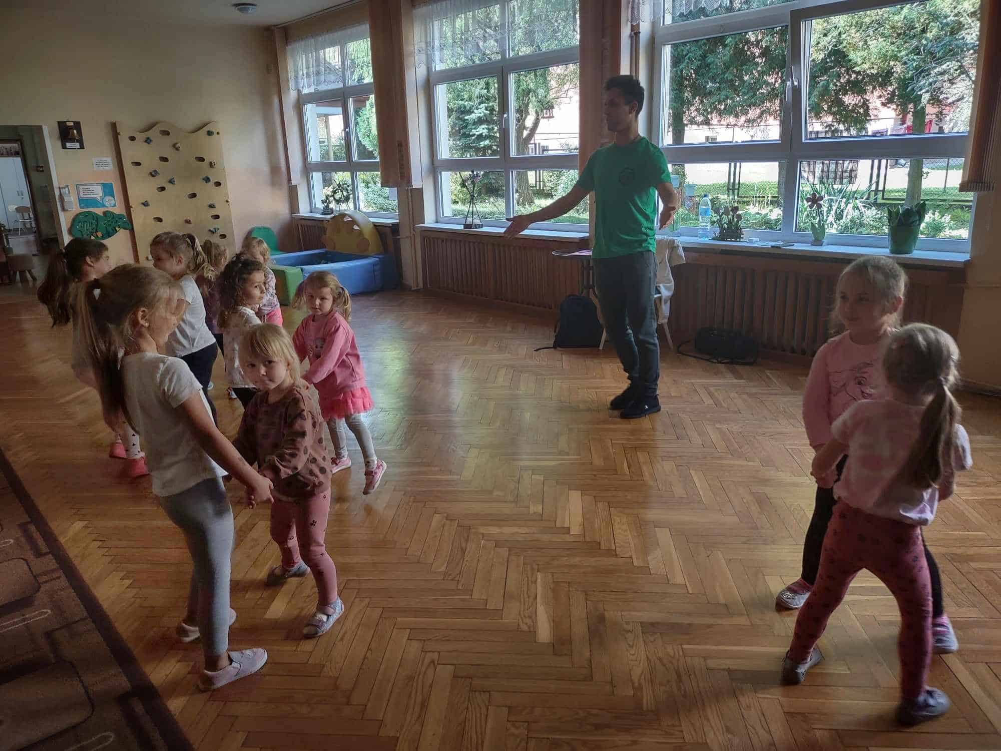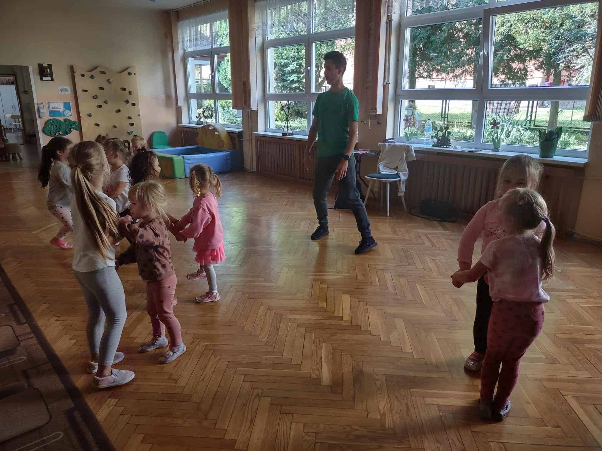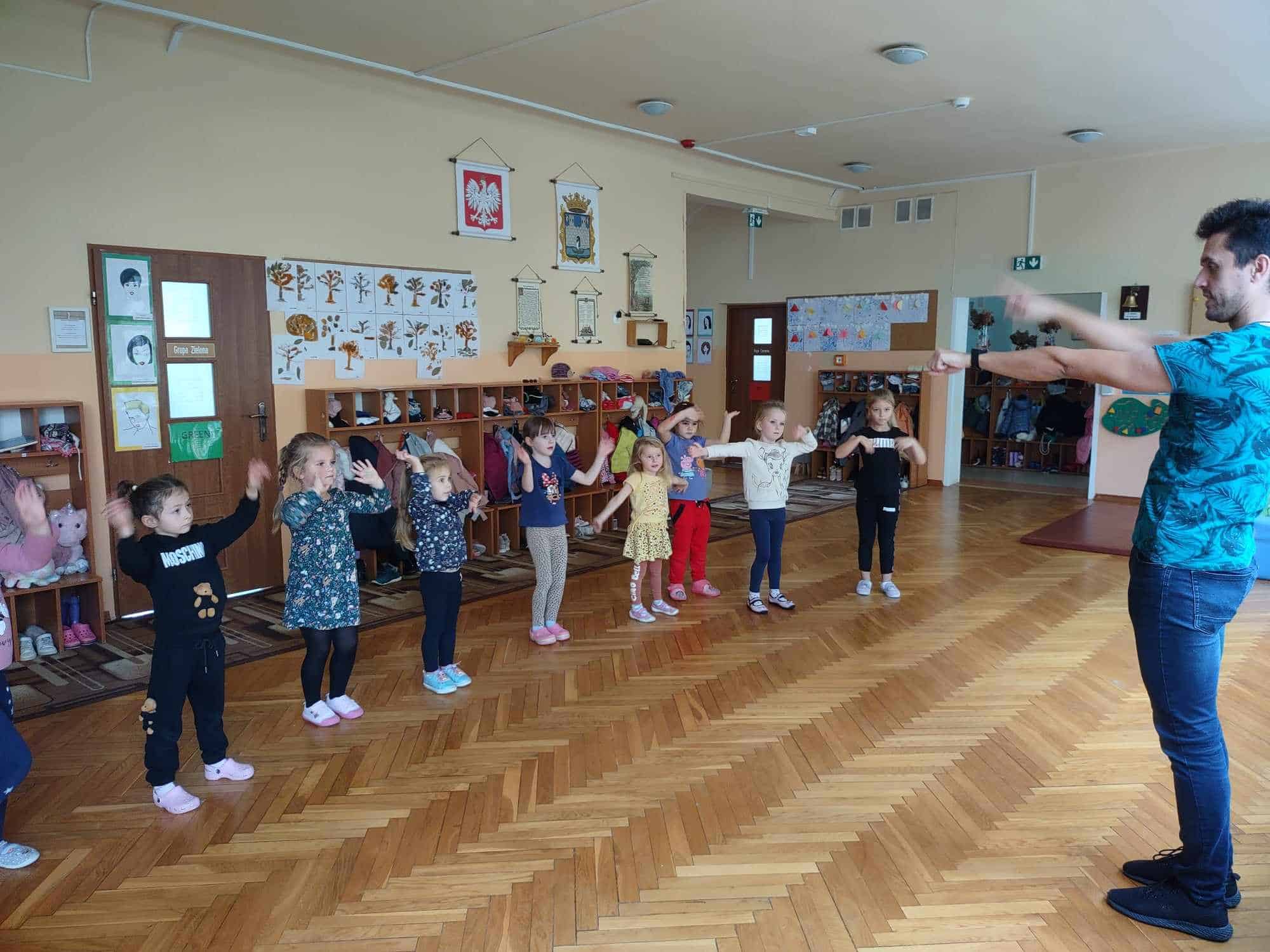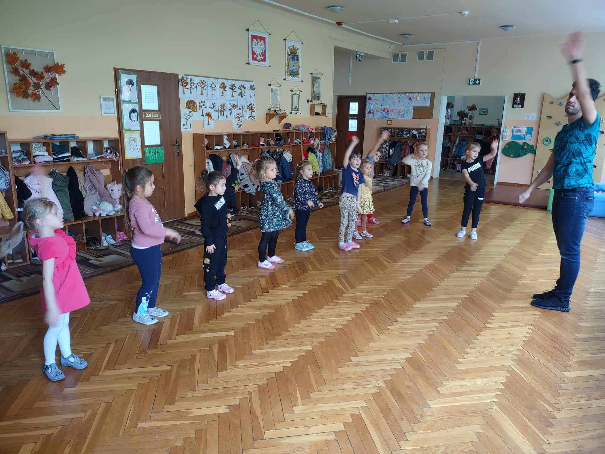 To już kolejny rok w naszym przedszkolu podczas którego dzieci mogą cieszyć się z zajęć tanecznych prowadzonych przez fantastycznego i uwielbianego przez wszystkich Pana Michała 🙂 Taniec dla dzieci to nieocenione dobro i wszechstronne korzyści dla jego rozwoju. Oprócz świetnej zabawy, zajęcia taneczne wspierają rozwój dziecka we wszystkich sferach: fizycznej, poznawczej, emocjonalnej, społecznej a nawet duchowej. Ponadto, angażując zmysły: słuch, wzrok, dotyk, ruch, stymuluje integrację sensoryczną. Dziecko nabywa umiejętności współdziałania w grupie, akceptacji samego siebie i innych, poszukiwania i pokonywania barier swoich możliwości. Co ważne, taniec rozwija pamięć, myślenie, spostrzegawczość, uwagę, orientację, wyobraźnię i inteligencję twórczą. Tańczące dzieci mogą pochwalić się lepszą motoryką, postawą ciała, a także lepszą niż ich rówieśnicy umiejętnością zachowania równowagi. Taniec pomaga wyrażać emocje, które trudno nam ubrać w słowa, a to sprawia, że nauka tańca staje się często terapią dla ducha 🙂 Dziękujemy Panie Michale za kolejny rok owocnej współpracy ☺️ A my kochani tańczmy…wszędzie…wszak taniec to ukryty język duszy 🤗 🤩