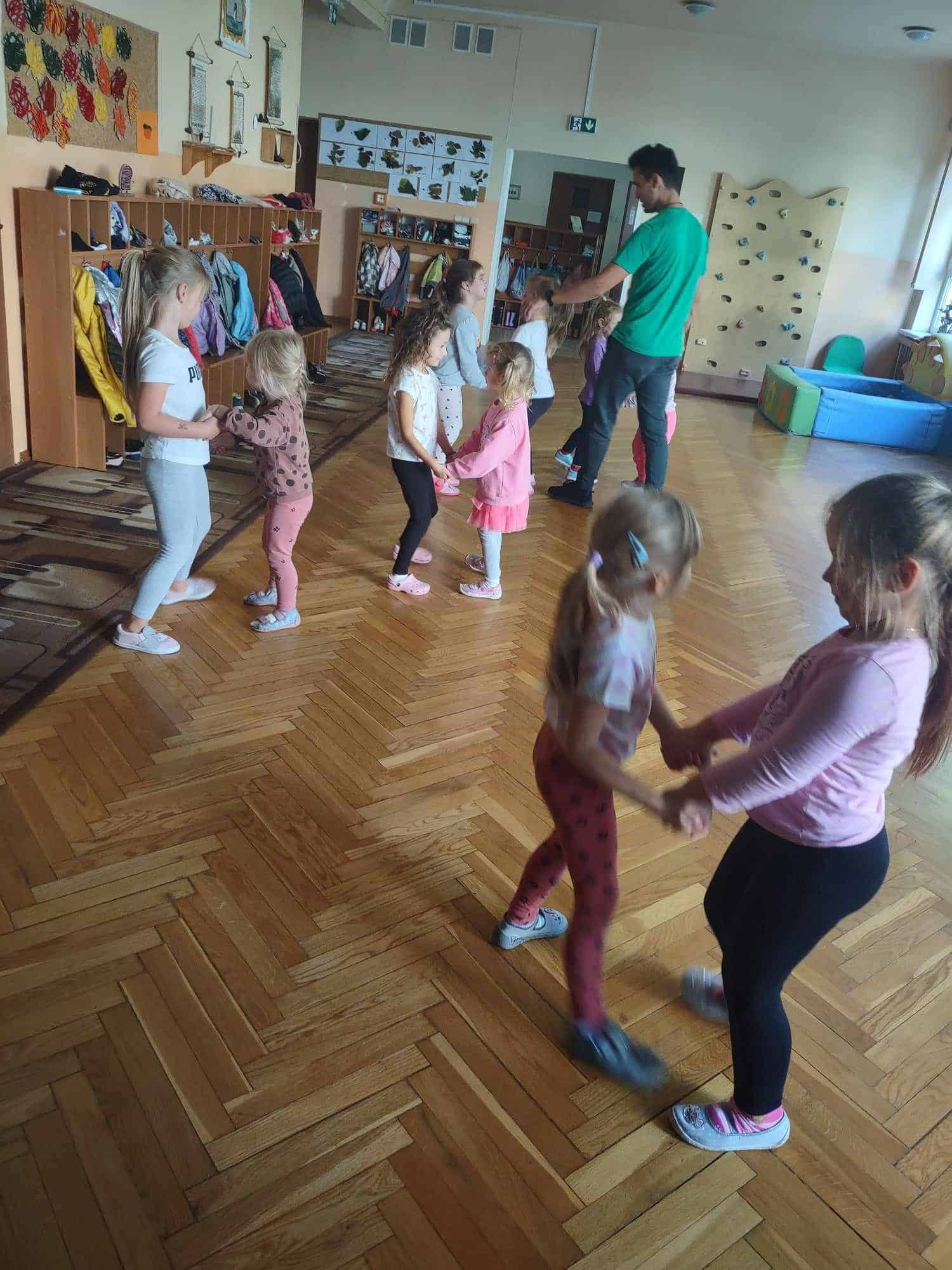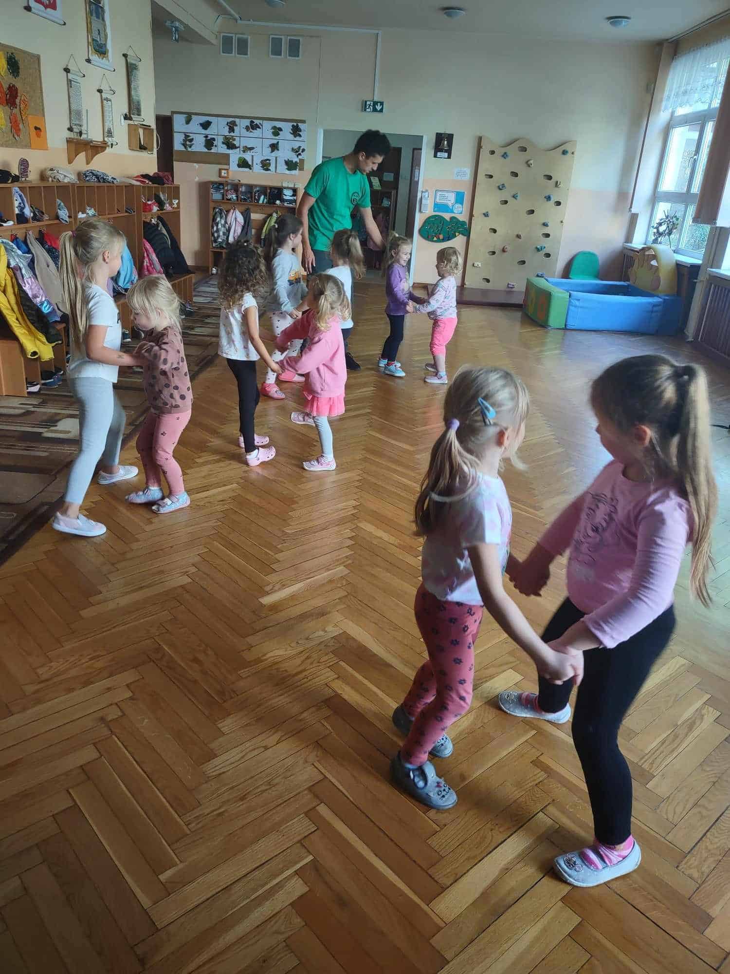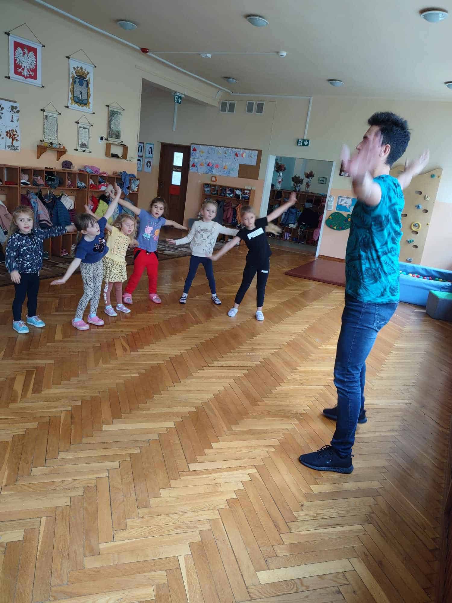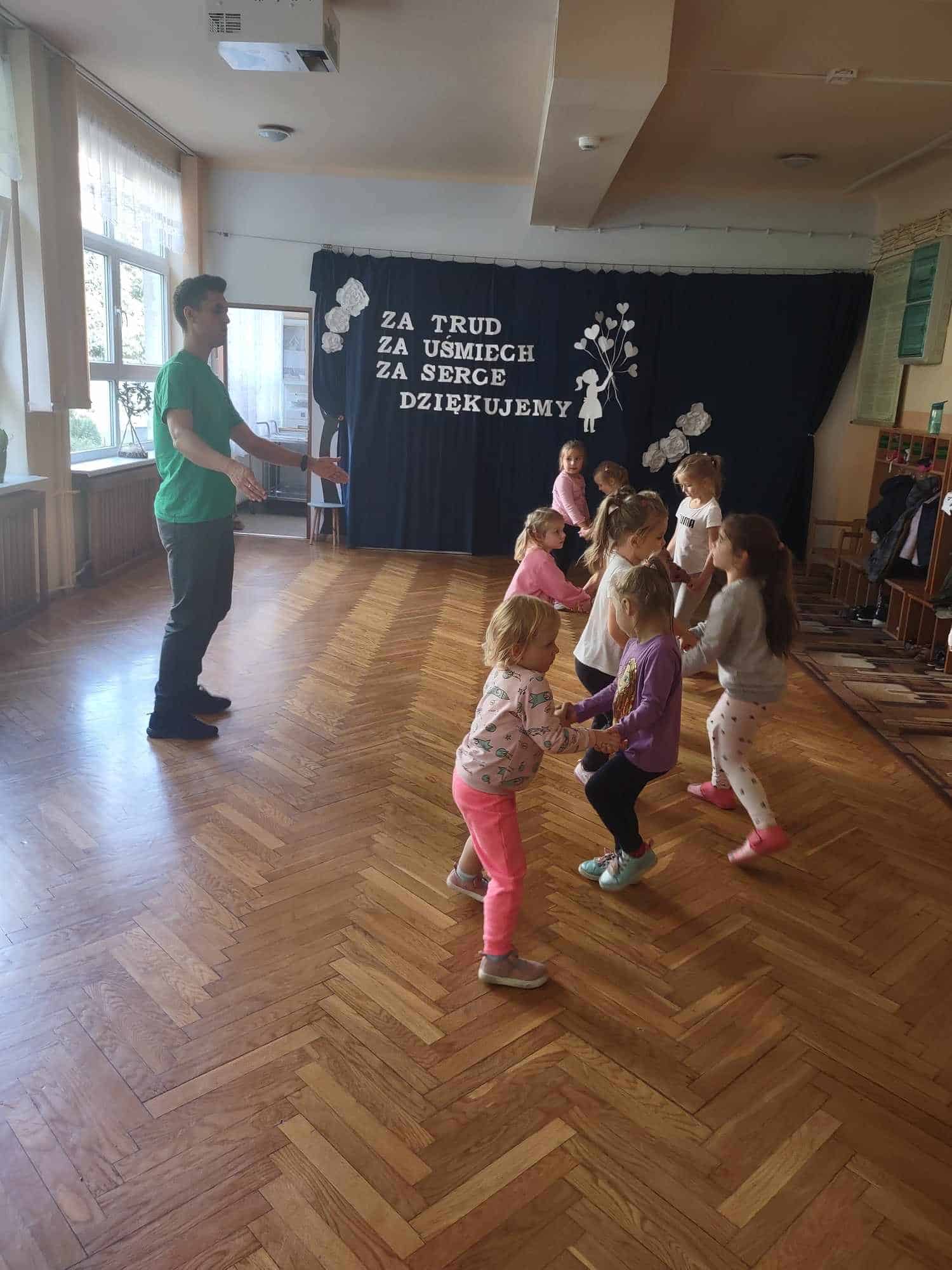 To już kolejny rok w naszym przedszkolu podczas którego dzieci mogą cieszyć się z zajęć tanecznych prowadzonych przez fantastycznego i uwielbianego przez wszystkich Pana Michała 🙂 Taniec dla dzieci to nieocenione dobro i wszechstronne korzyści dla jego rozwoju. Oprócz świetnej zabawy, zajęcia taneczne wspierają rozwój dziecka we wszystkich sferach: fizycznej, poznawczej, emocjonalnej, społecznej a nawet duchowej. Ponadto, angażując zmysły: słuch, wzrok, dotyk, ruch, stymuluje integrację sensoryczną. Dziecko nabywa umiejętności współdziałania w grupie, akceptacji samego siebie i innych, poszukiwania i pokonywania barier swoich możliwości. Co ważne, taniec rozwija pamięć, myślenie, spostrzegawczość, uwagę, orientację, wyobraźnię i inteligencję twórczą. Tańczące dzieci mogą pochwalić się lepszą motoryką, postawą ciała, a także lepszą niż ich rówieśnicy umiejętnością zachowania równowagi. Taniec pomaga wyrażać emocje, które trudno nam ubrać w słowa, a to sprawia, że nauka tańca staje się często terapią dla ducha 🙂 Dziękujemy Panie Michale za kolejny rok owocnej współpracy ☺️ A my kochani tańczmy…wszędzie…wszak taniec to ukryty język duszy 🤗 🤩
