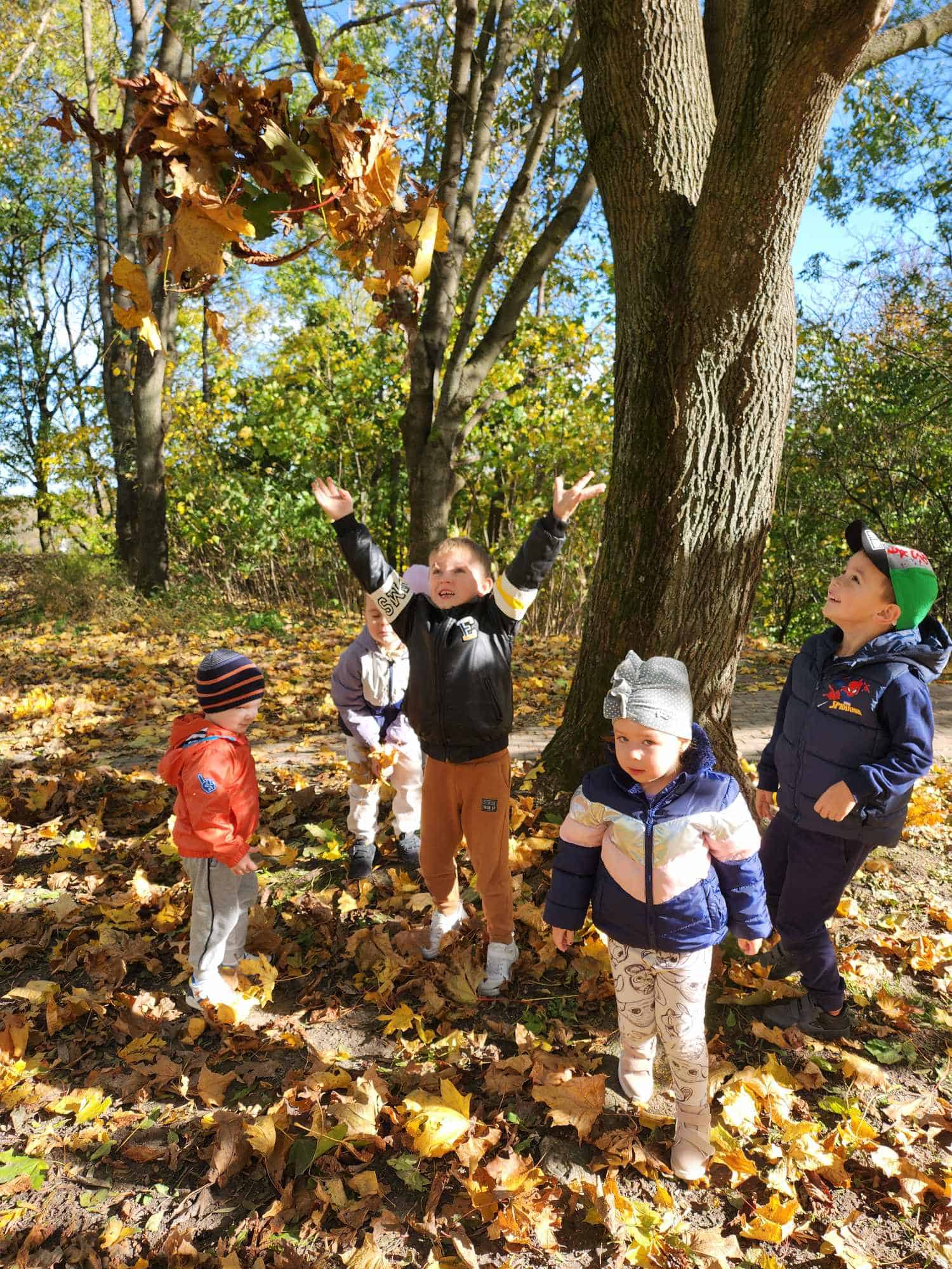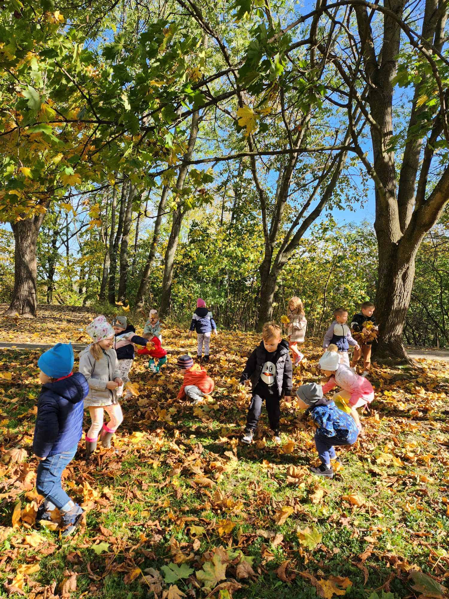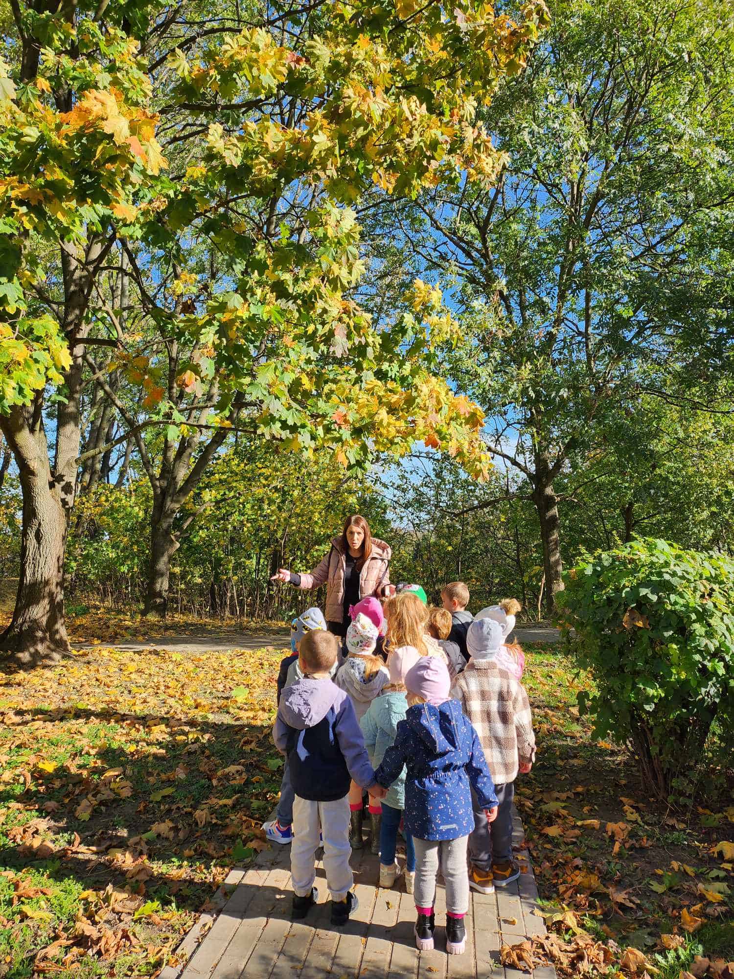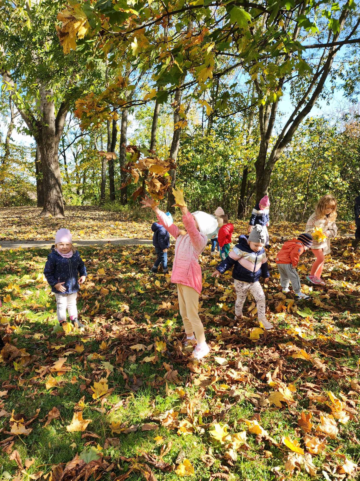Jesień to piękna pora roku, która zachwyca wyjątkowymi kolorami. Krajobrazy mienią się odcieniami żółtego, czerwonego, pomarańczowego i brązowego koloru. Jesienna pogoda jest zmienna, raz jest zimno, wietrznie i deszczowo, a raz ciepło i słonecznie. Gdy tylko pogoda dopisuje spędzamy czas w naszym ogrodzie lub spacerujemy w pobliżu przedszkola. Mamy to szczęście, że przedszkole znajduje się w spokojnej okolicy, gdzie można spacerować obserwując przyrodę. Dla przedszkolaków to świetna okazja nie tylko by się dotlenić i aktywnie spędzić czas, ale także, aby czegoś się nauczyć. Młodsze dzieci przy okazji zbierania liści mogą utrwalać kolory, a starsze poznawać gatunki drzew.