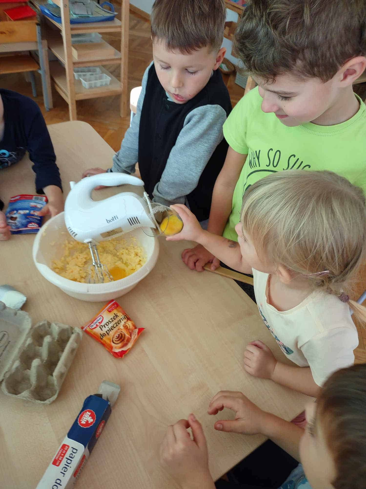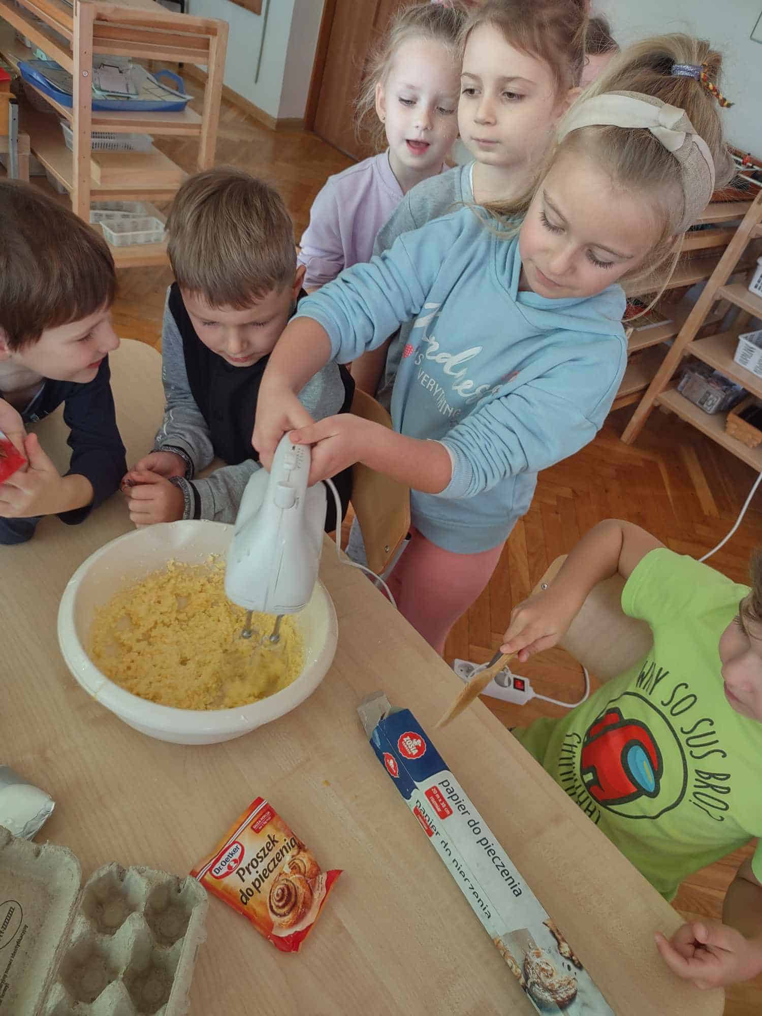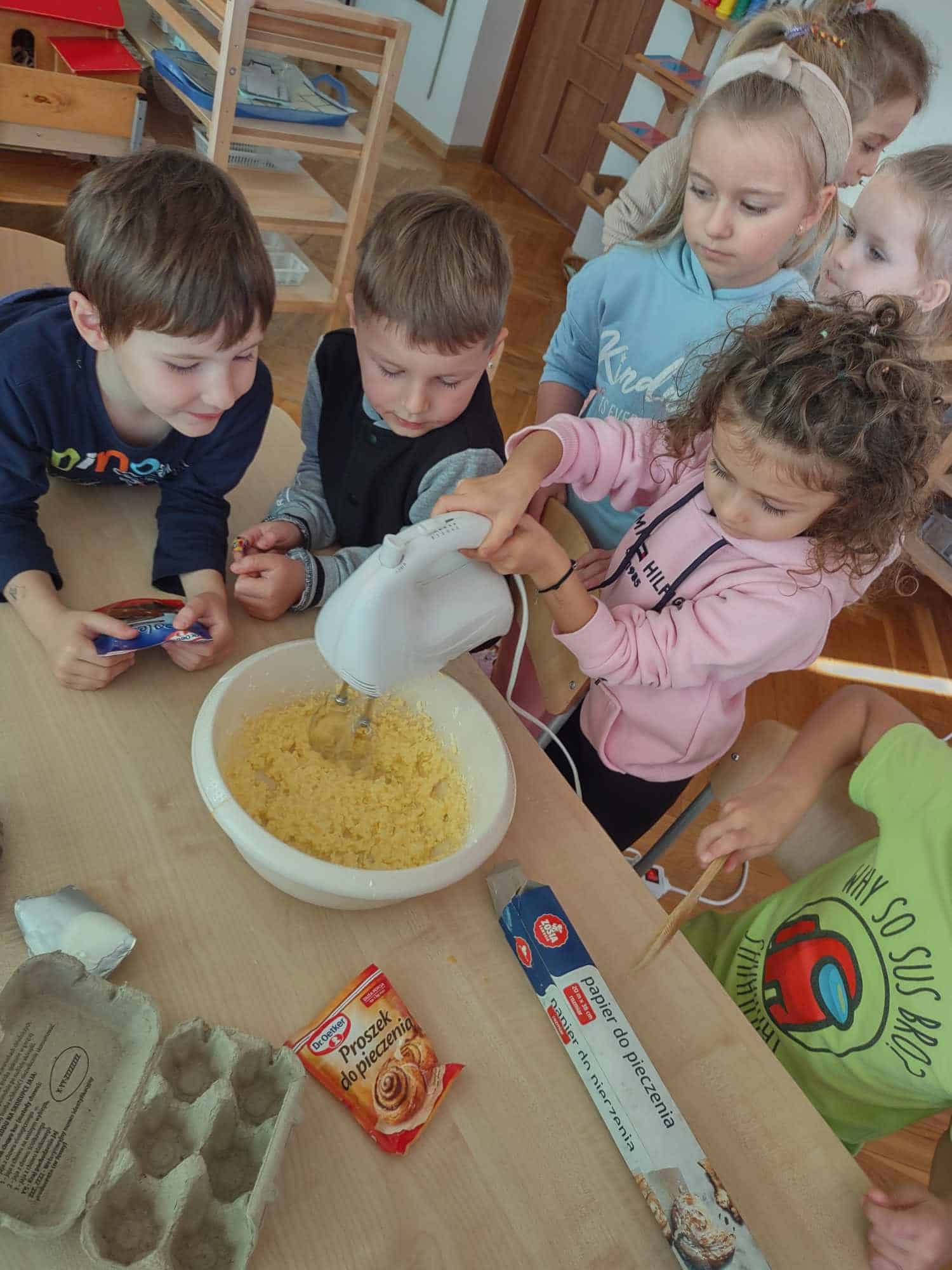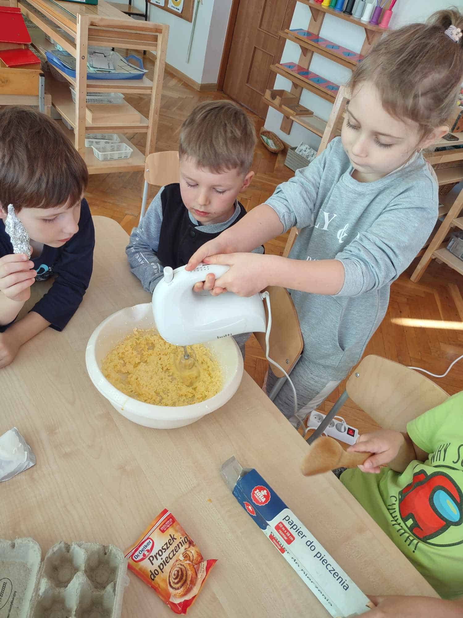 - Pieczenie i ugniatanie ciasta rozwija umiejętności manualne dzieci.