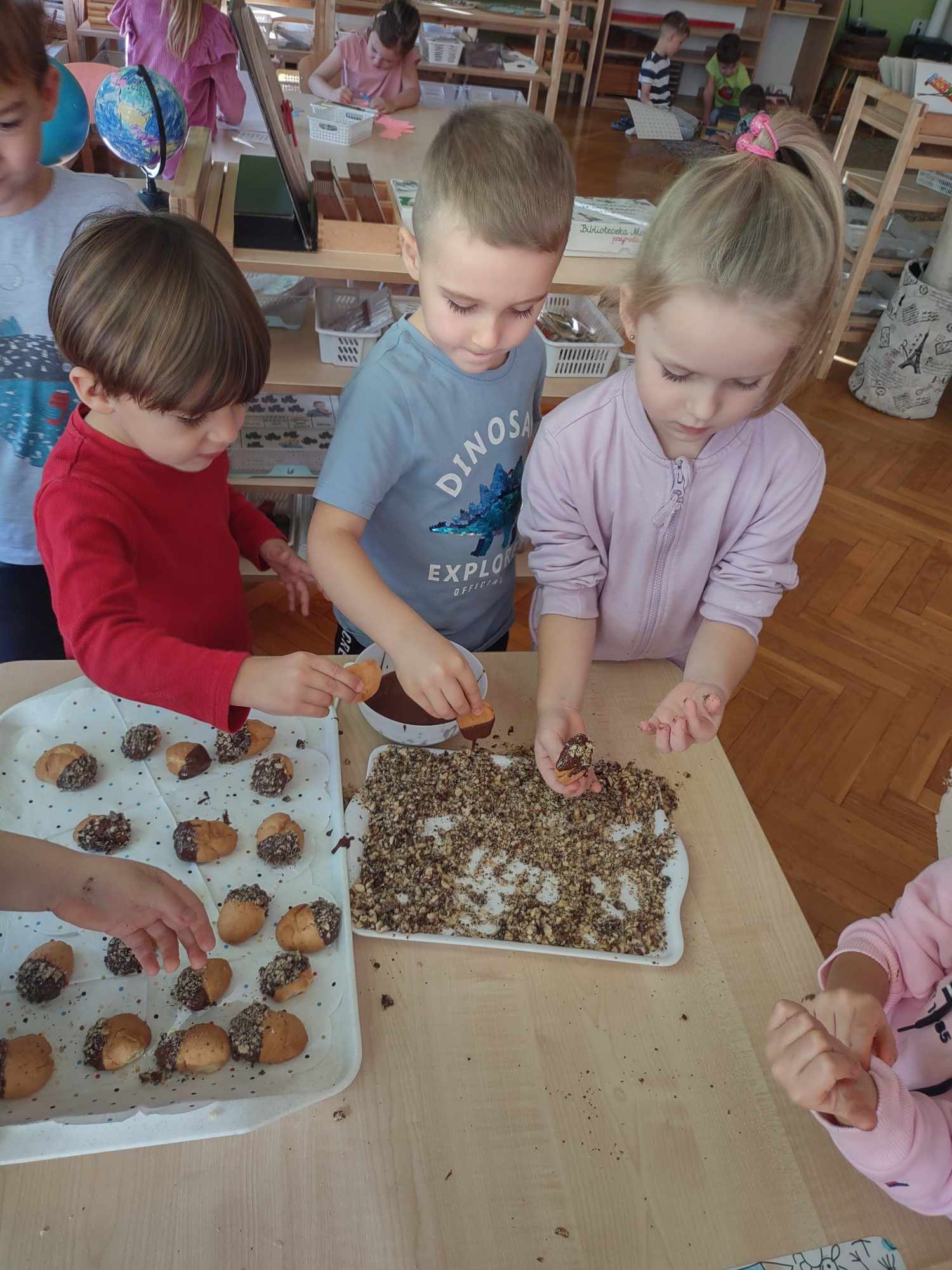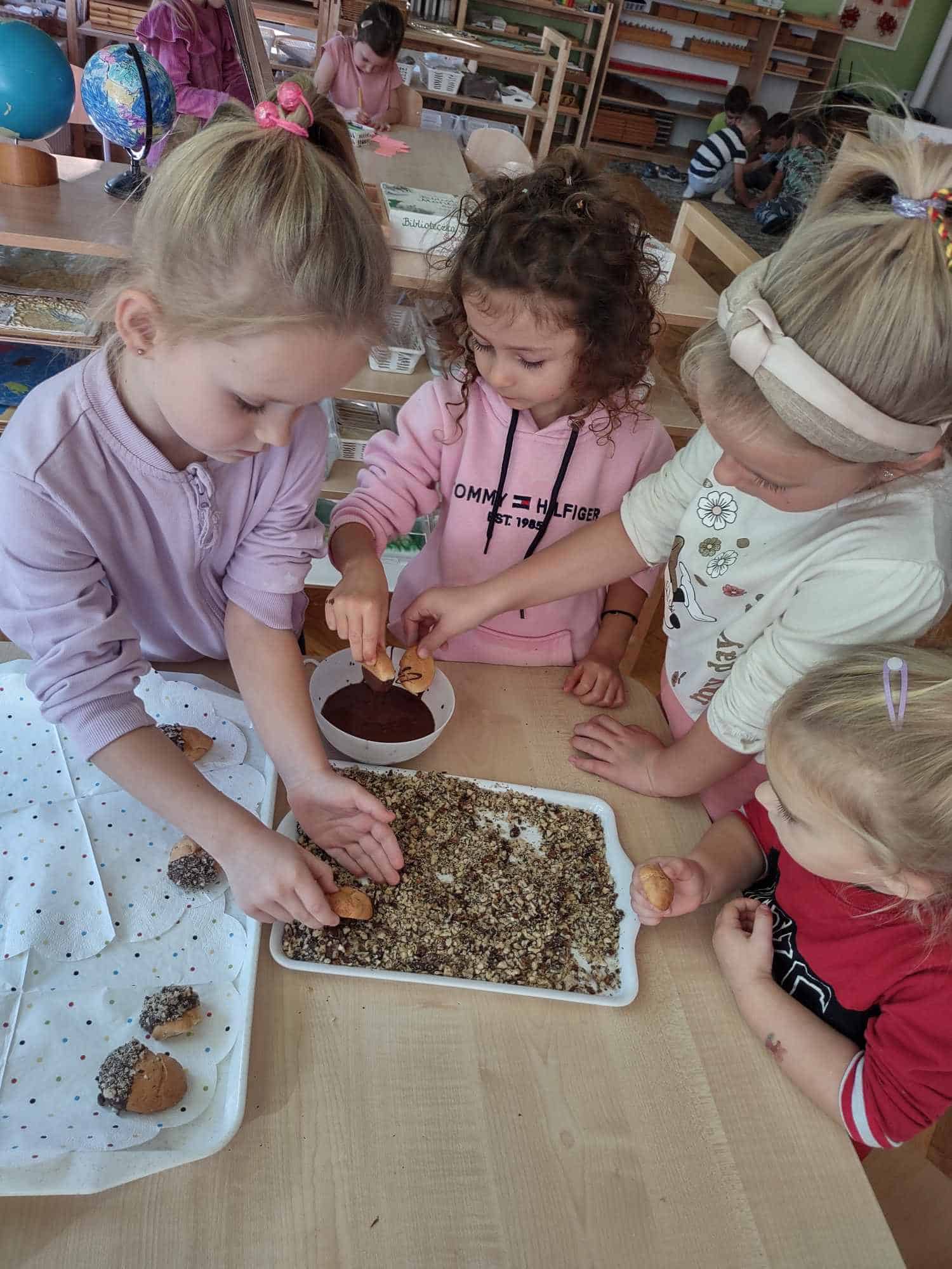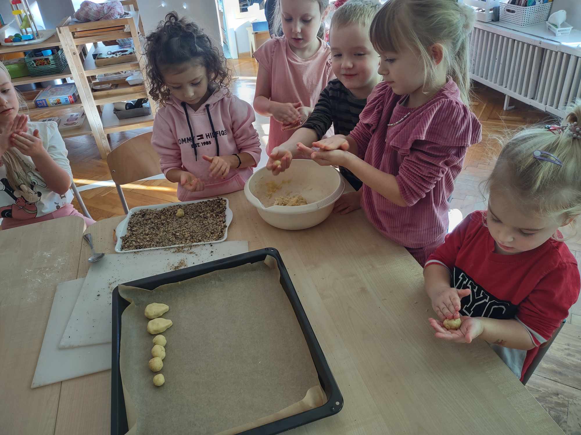 - Ugniatanie i formowanie ciasta wspiera rozwój motoryki precyzyjnej i równoważy napięcia mięśniowe.