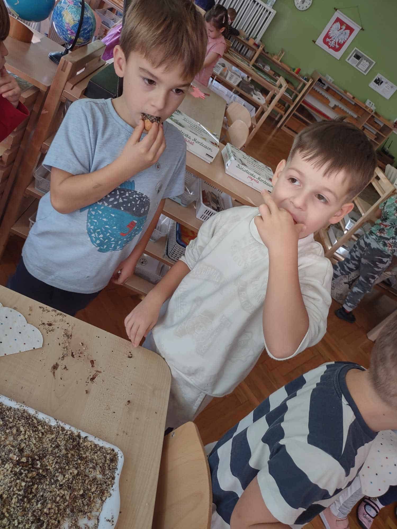 Oto przed Państwem niebywałe talenty kulinarne z Grupy Zielonej, które dzisiaj tworzyły wyborne, przepyszne ciasteczka jesienne o wdzięcznej nazwie ,,Jeżyki” 🦔 🦔 Kolejna edycja Masterchefa należy do nas 😄👨🍳