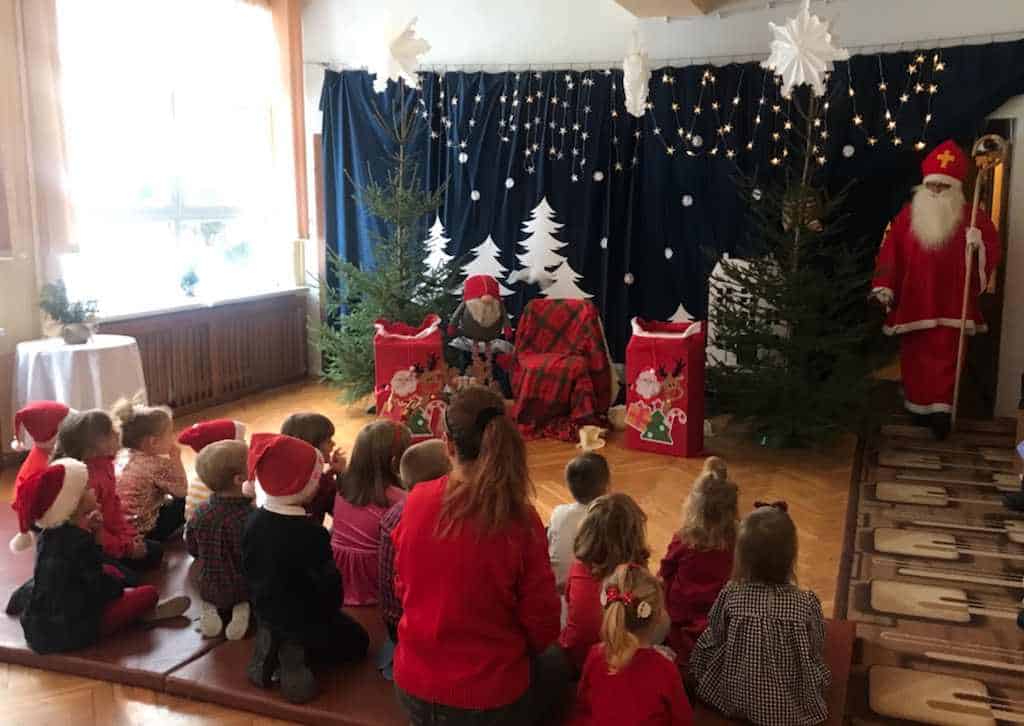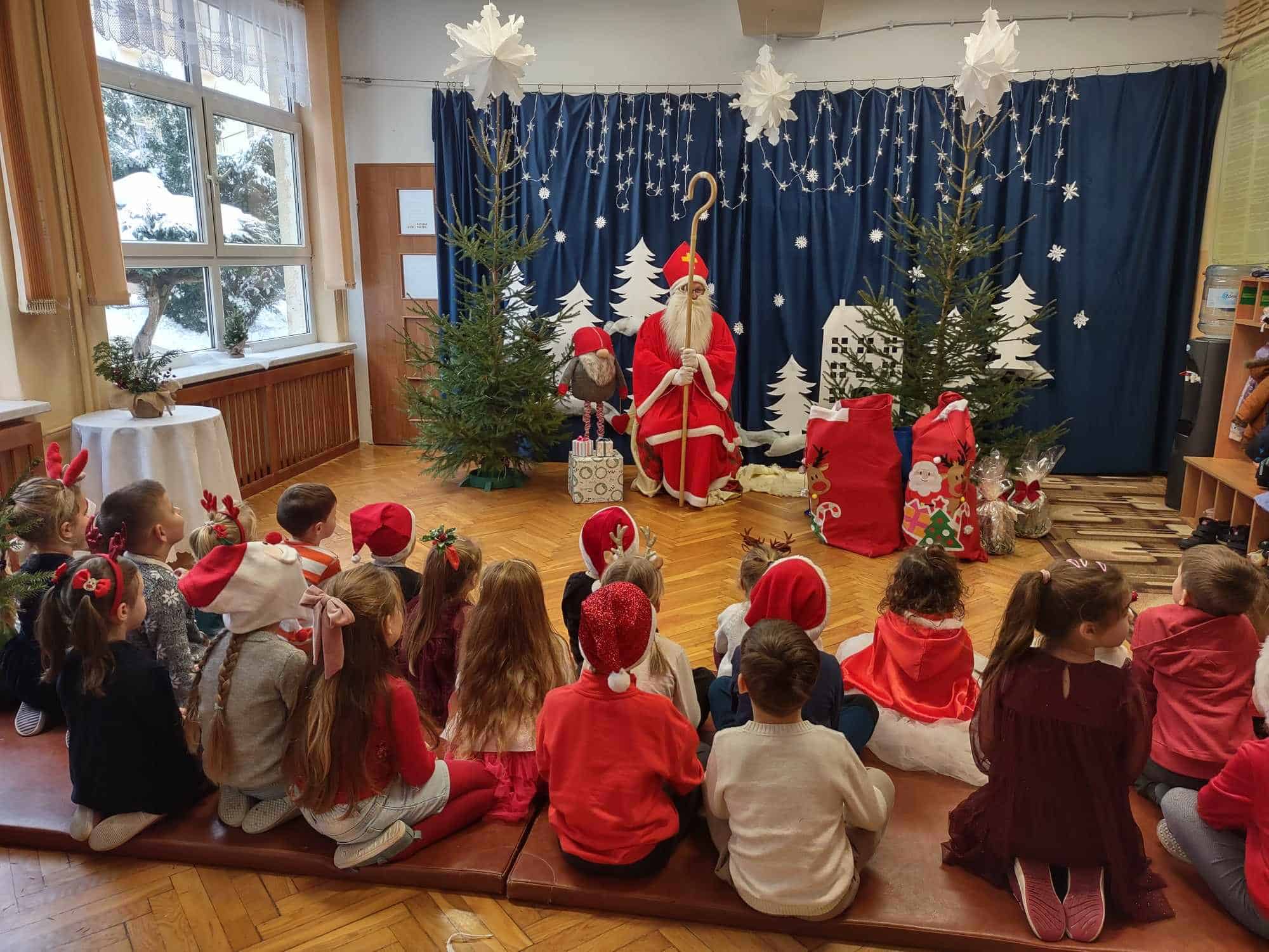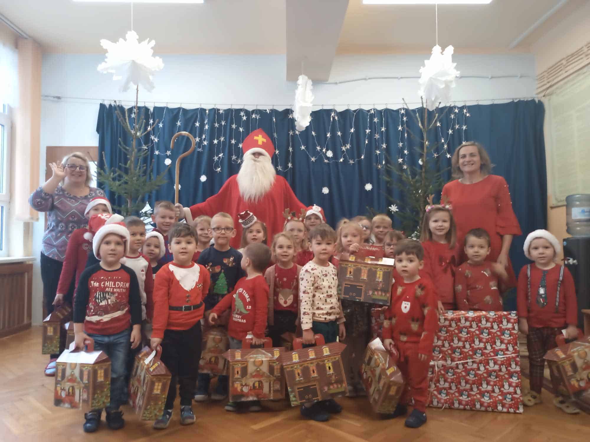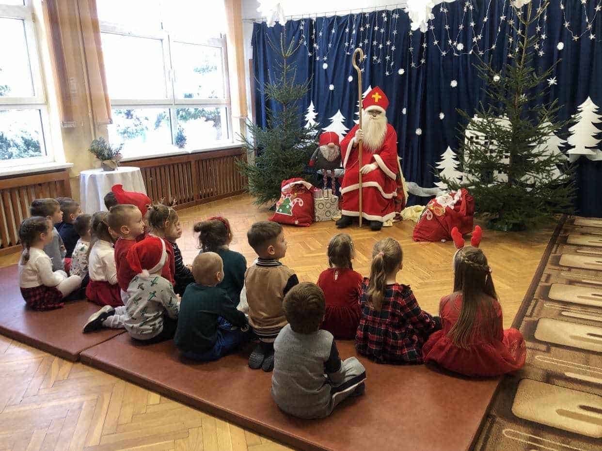 Wizyta Św. Mikołaja to jeden z najbardziej oczekiwanych przez dzieci dni w roku. Gdy nadszedł ten dzień – 6 grudnia – z niecierpliwością czekaliśmy na Gościa z Dalekiej Północy. Aż wreszcie ukazał się On – nasz ukochany Św. Mikołaj. Radość dzieci była ogromna, uśmiechy nie znikały z ich twarzy. Dzieci zaśpiewały Mikołajowi piosenki, powiedziały wiersze, które sprawiły mu dużo radości.
