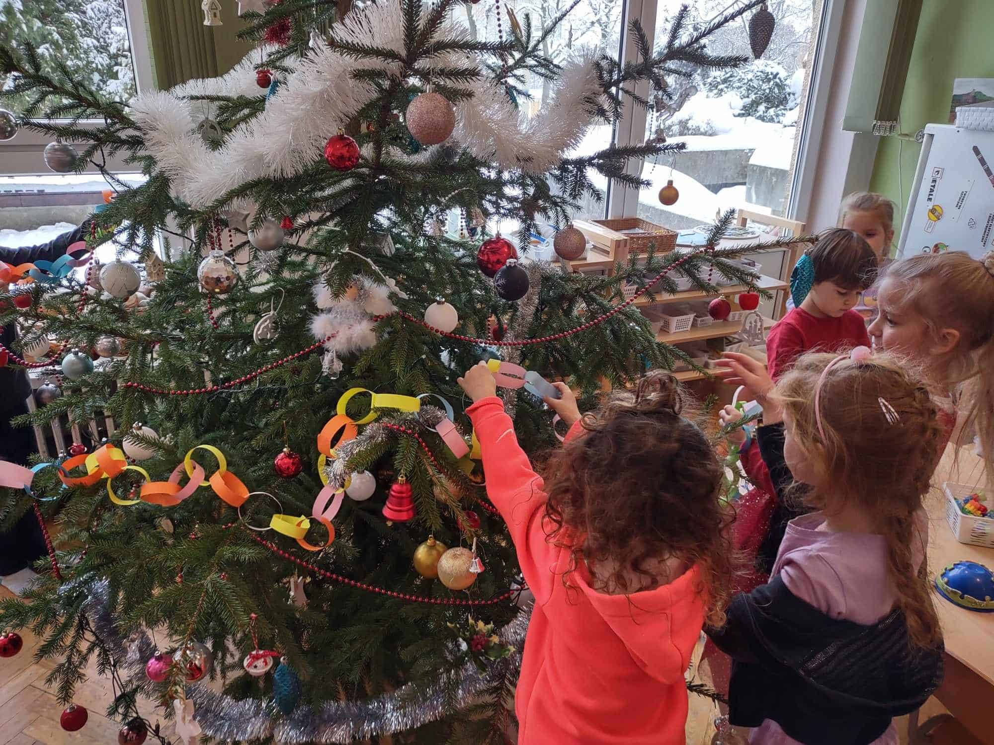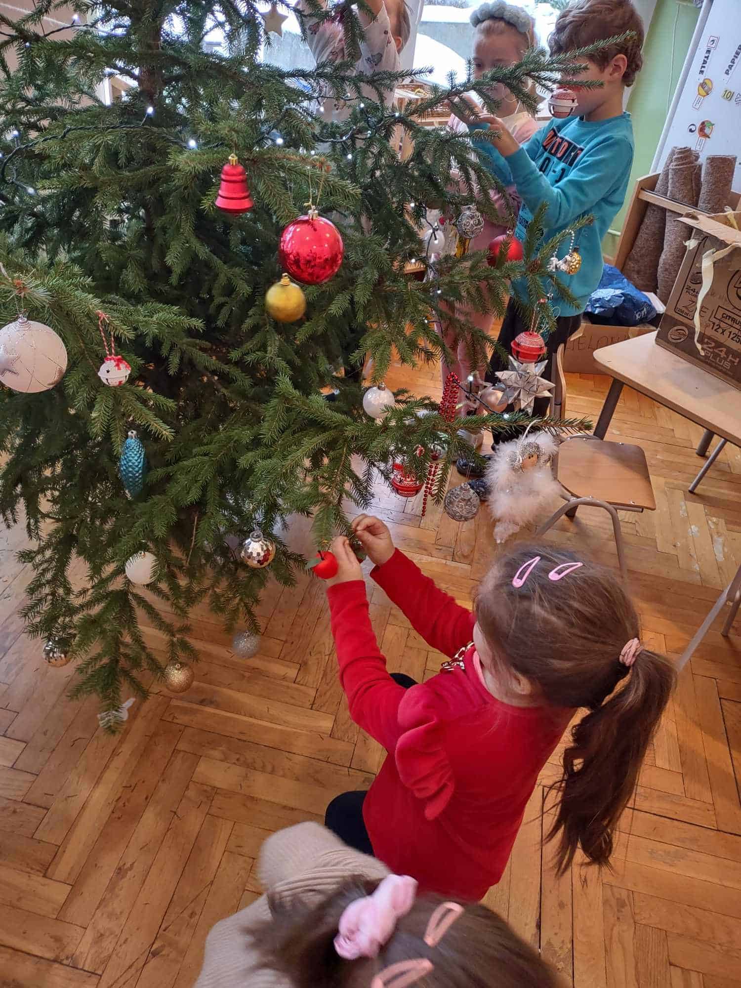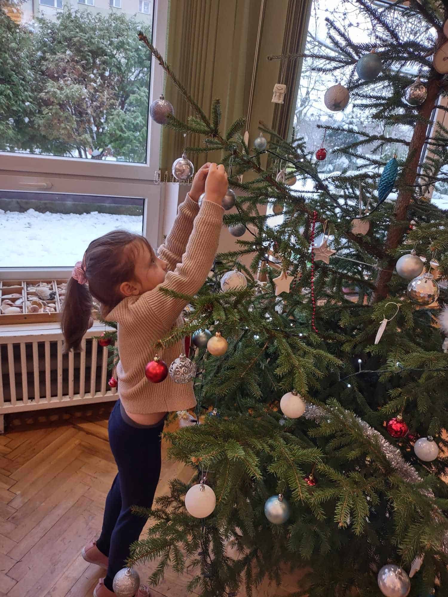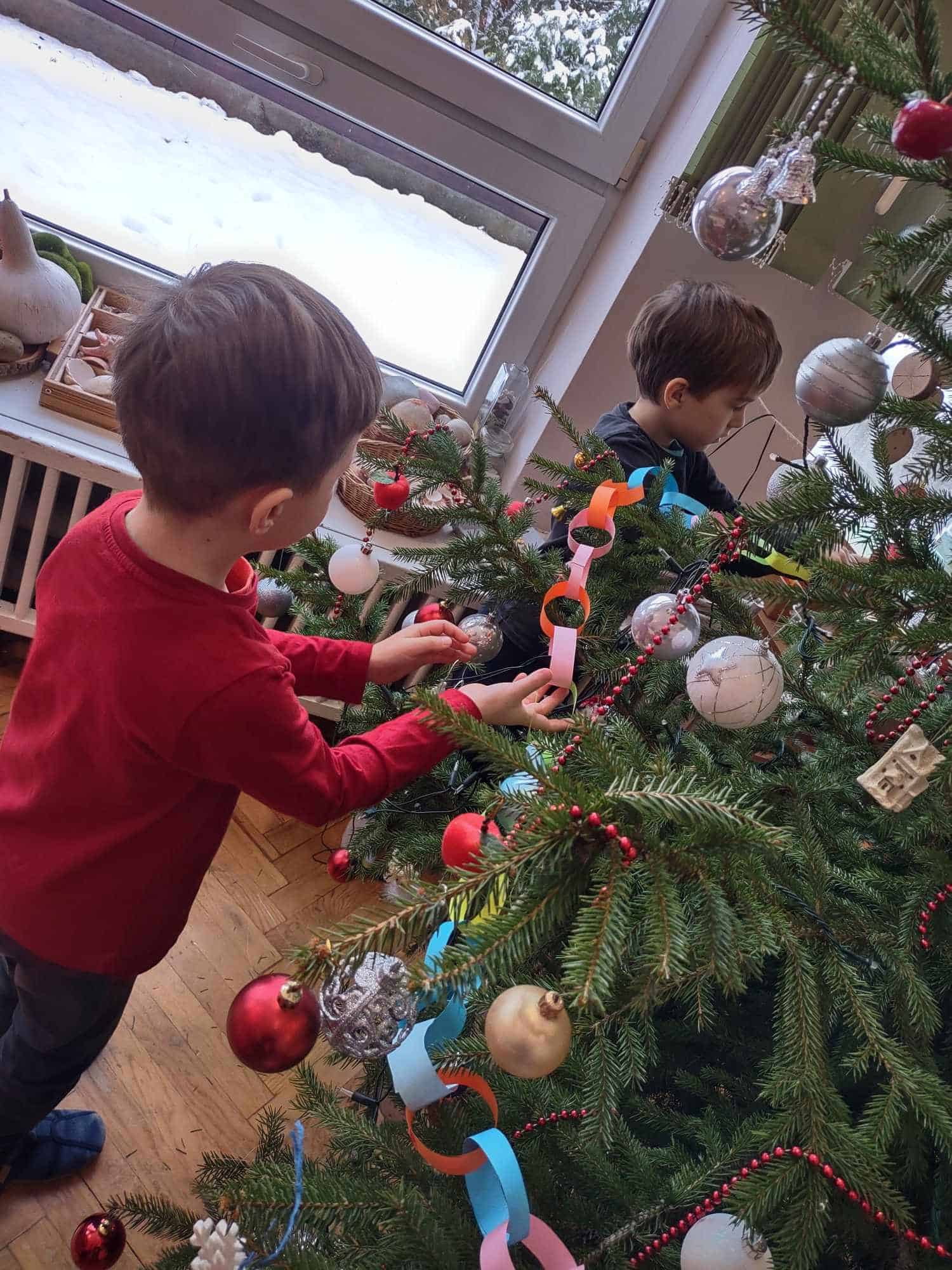 Nasza choinka wygląda wyjątkowo… przyozdobiona w własnoręcznie robione przez dzieci łańcuchy i inne, miłe dla oka ozdoby robi na wszystkich duże wrażenie 🤗 Zatem oczekiwanie na najpiękniejsze i najmilsze święta w roku uważamy za otwarte….😊