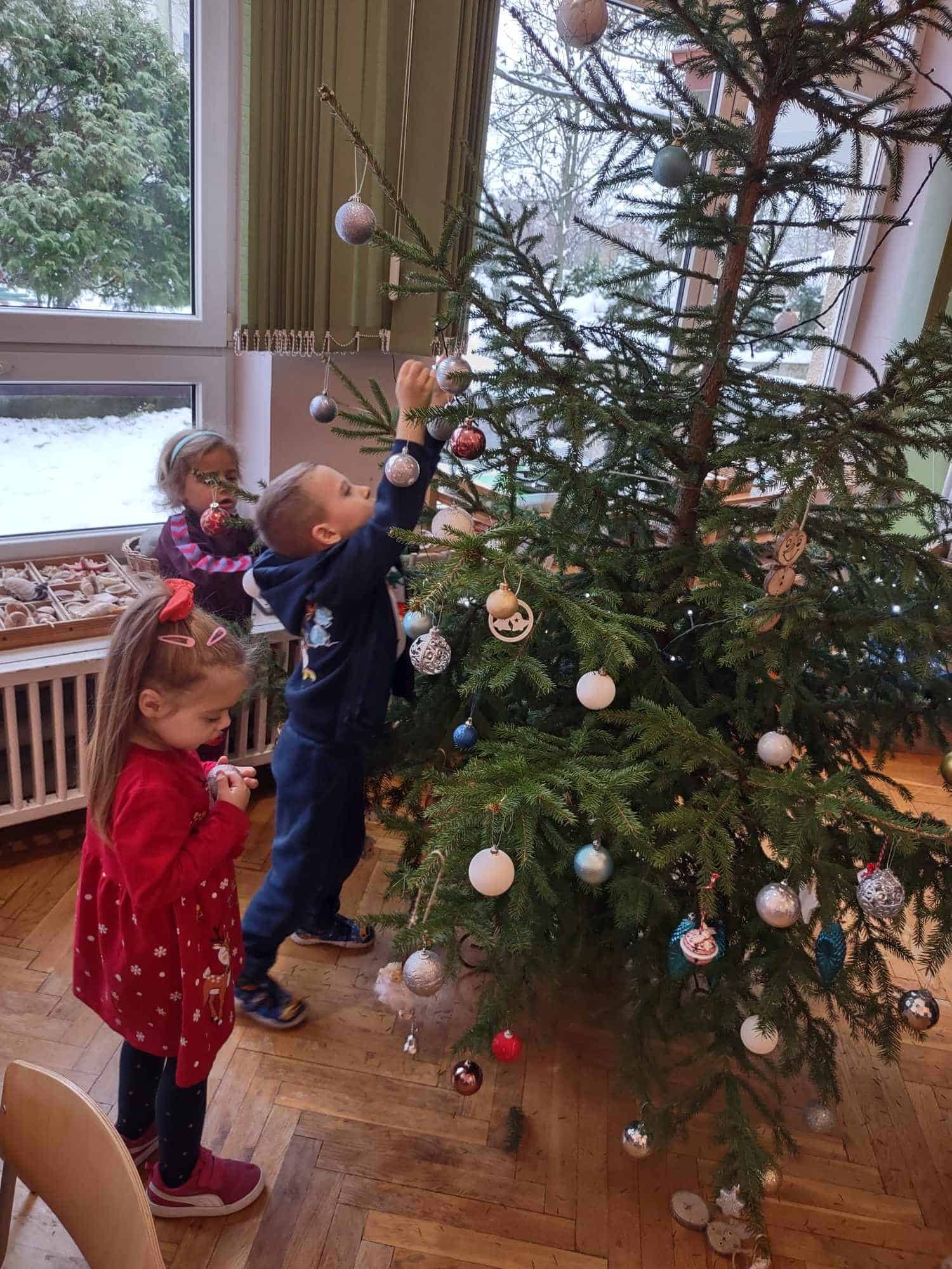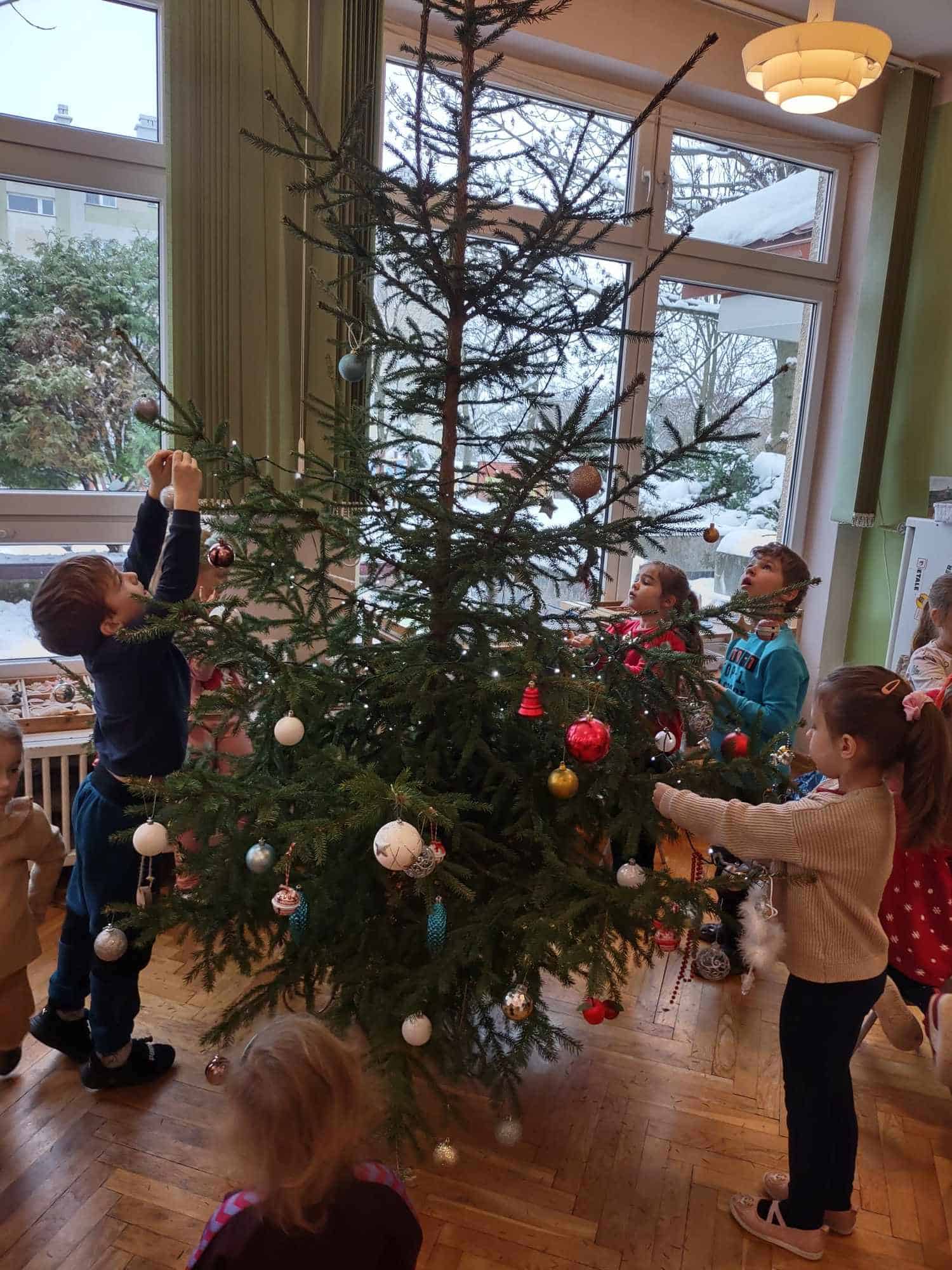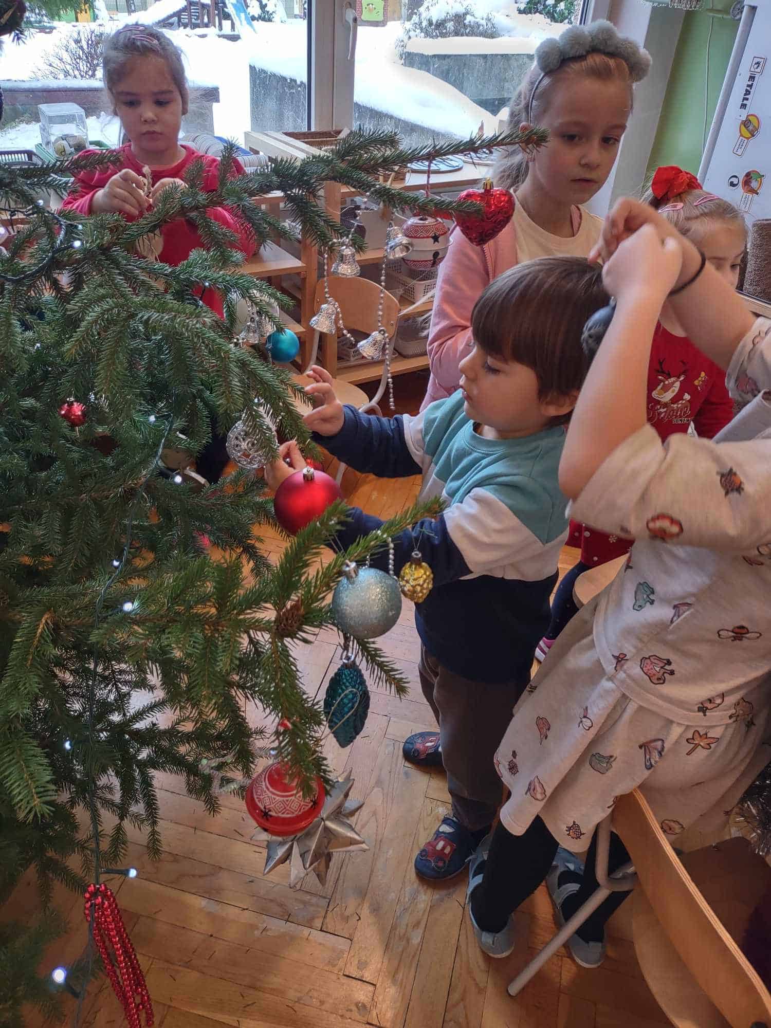 Nasza choinka wygląda wyjątkowo… przyozdobiona w własnoręcznie robione przez dzieci łańcuchy i inne, miłe dla oka ozdoby robi na wszystkich duże wrażenie 🤗 Zatem oczekiwanie na najpiękniejsze i najmilsze święta w roku uważamy za otwarte….😊