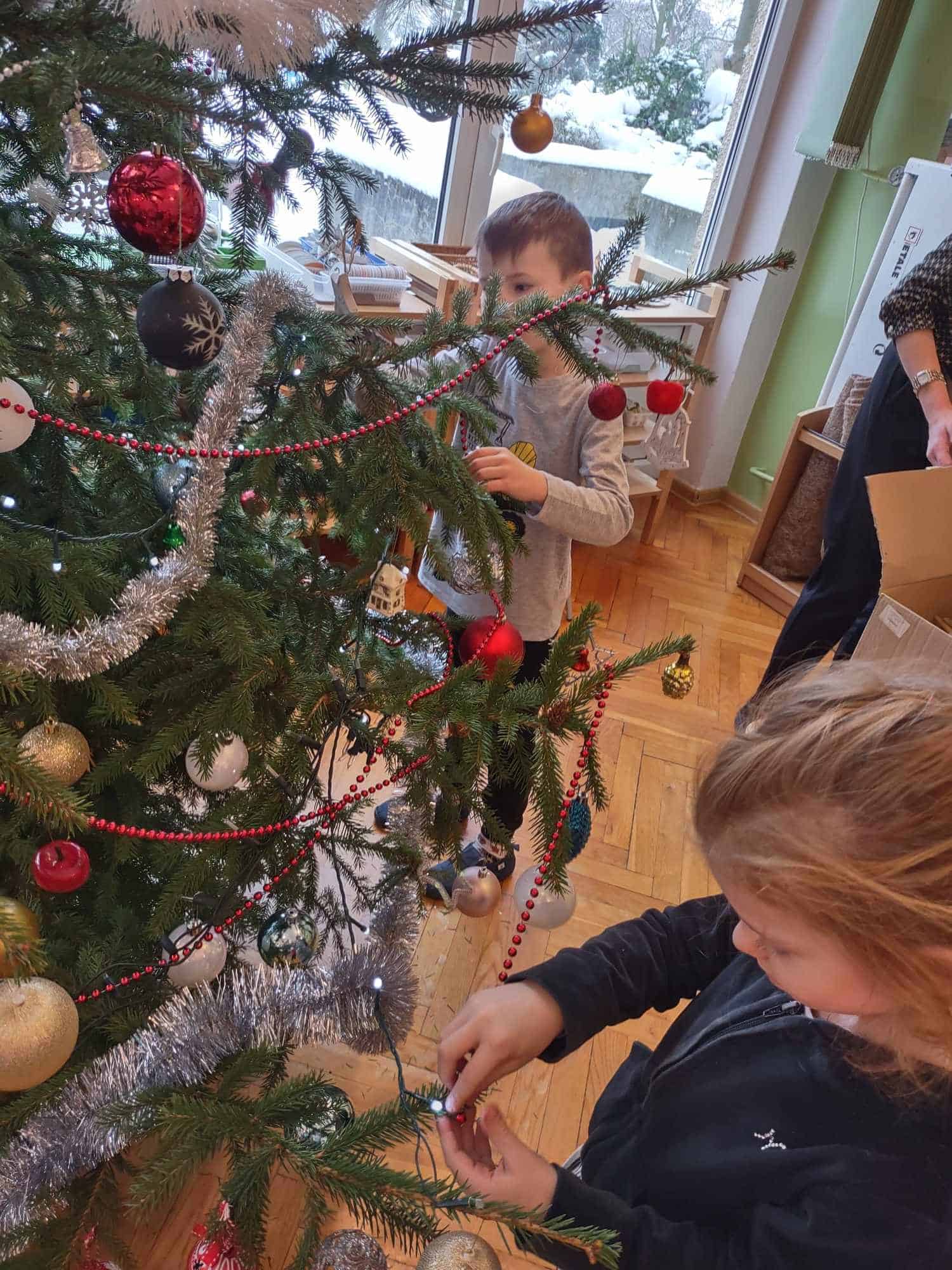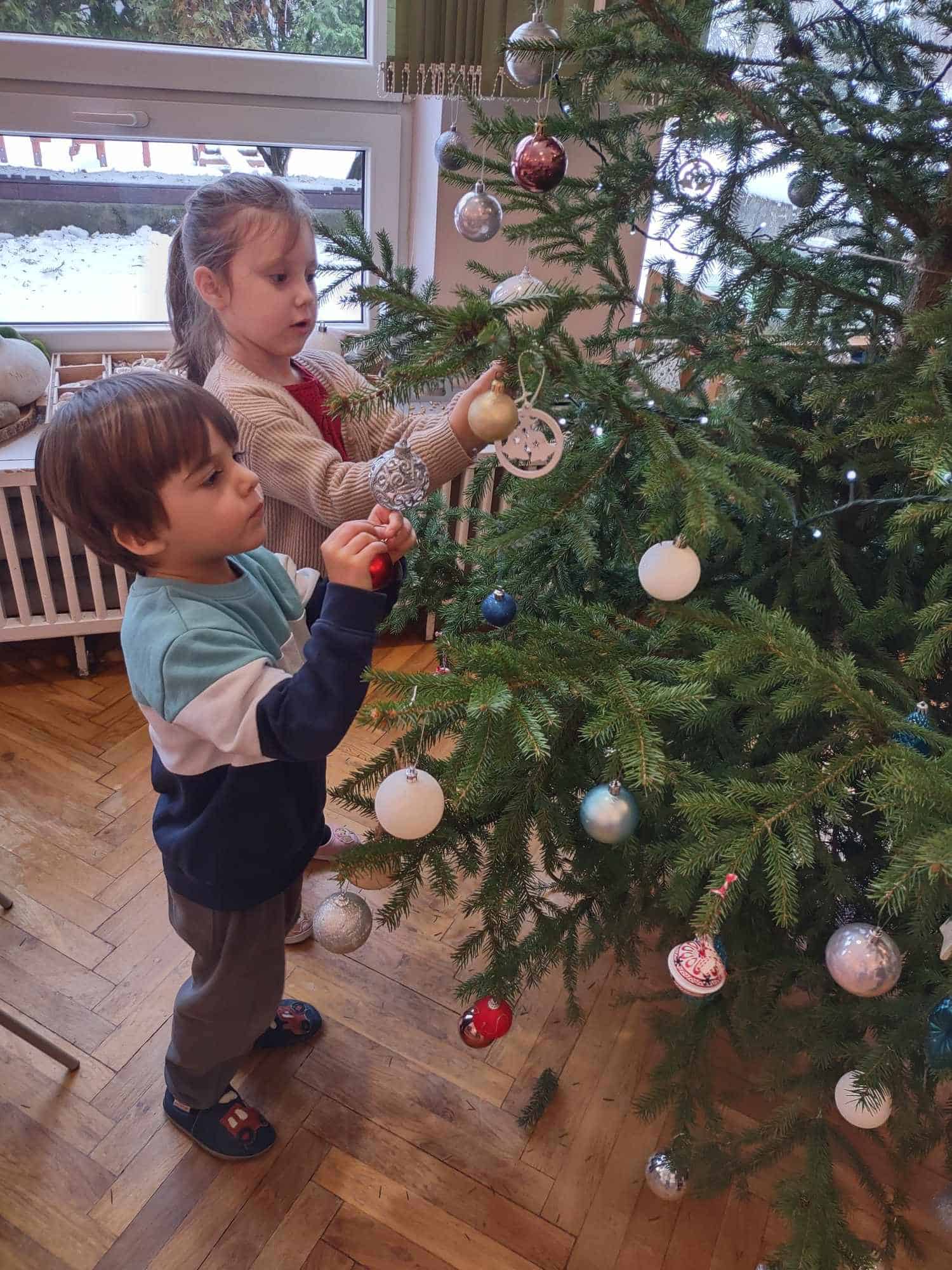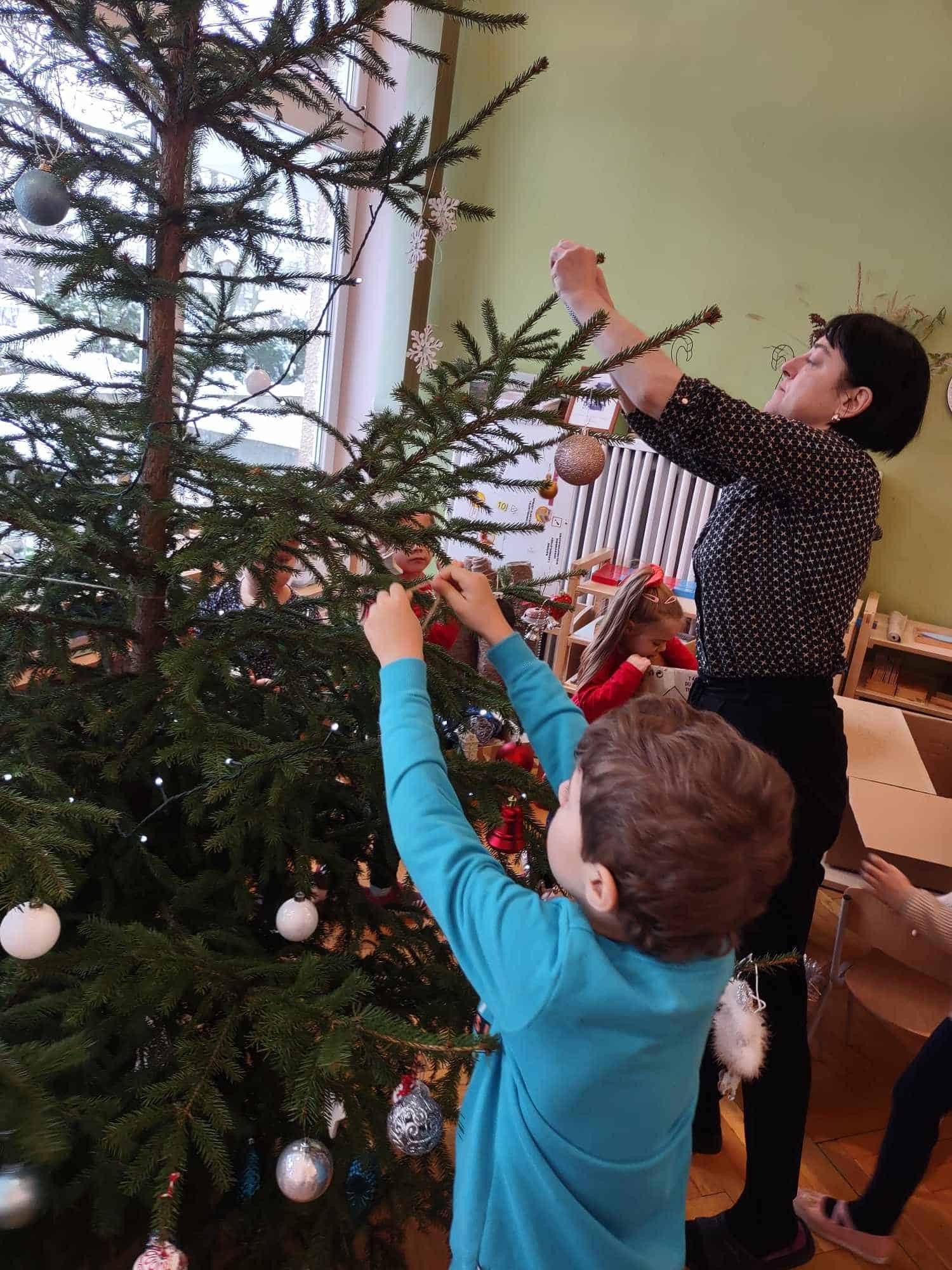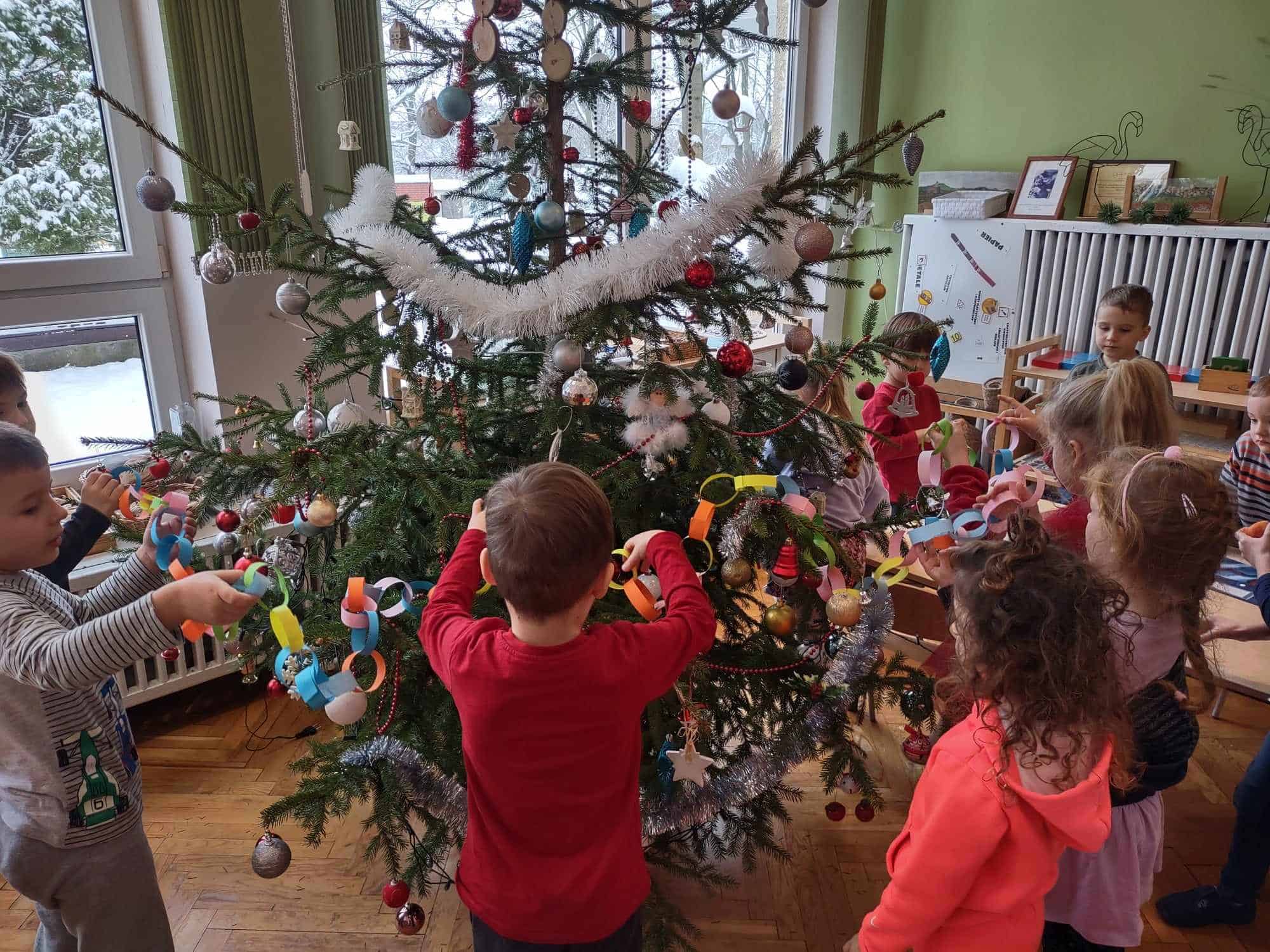 Nasza choinka wygląda wyjątkowo… przyozdobiona w własnoręcznie robione przez dzieci łańcuchy i inne, miłe dla oka ozdoby robi na wszystkich duże wrażenie 🤗 Zatem oczekiwanie na najpiękniejsze i najmilsze święta w roku uważamy za otwarte….😊