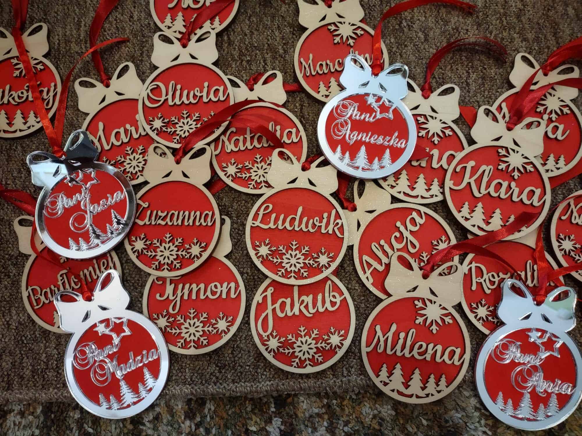 Od kilku dni w naszej sali króluje wystrojona choinka. Już kolejny rok z rzędu piękne, zielone drzewko podarował nam Pan Rafał – tatuś naszej Alicji, który nie tylko naszą grupę wyposażył w ten wyjątkowy, bożonarodzeniowy symbol, ale również nasz przedszkolny hol zdobią choinki dostarczone przez Pana Rafała właśnie 😊 Jak się okazało to nie był jedyny prezent dla Grupy Zielonej od Rodziców naszej Ali 😊 Kolejną niespodziankę dla nas wszystkich sprawiła Pani Andżelika – mamusia naszej Alicji, która całej grupie podarowała przepiękne, drewniane, laserowo wycinane bombki choinkowe z wygrawerowanymi imionami dzieci i pań. Wszyscy byliśmy nimi zachwyceni 😍