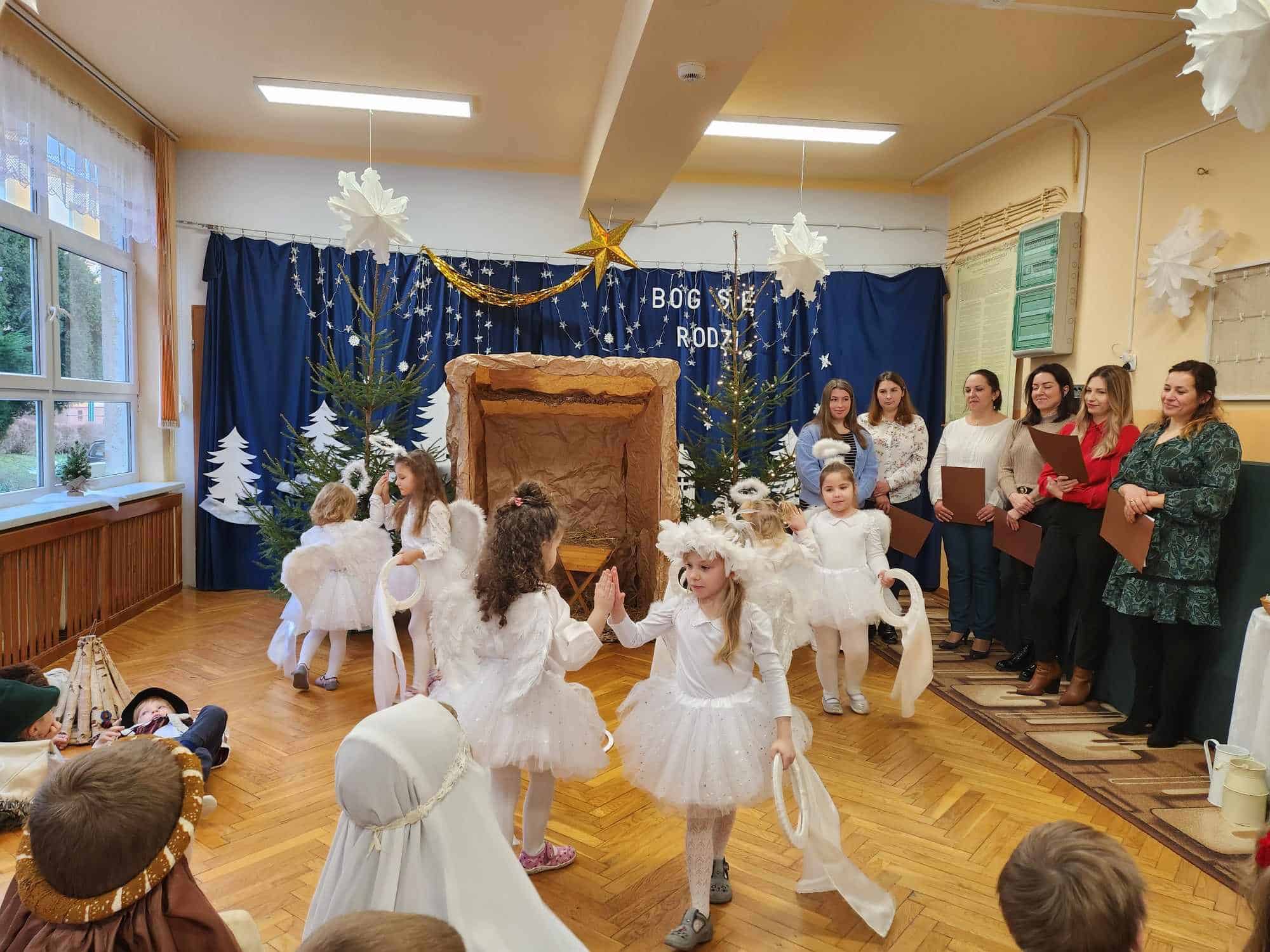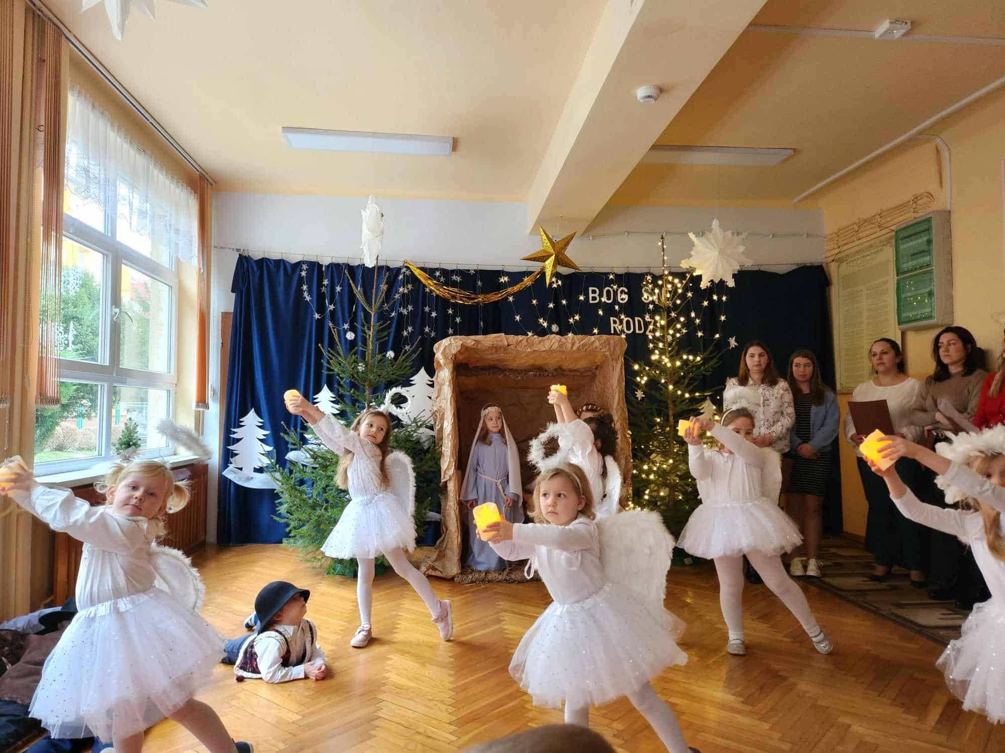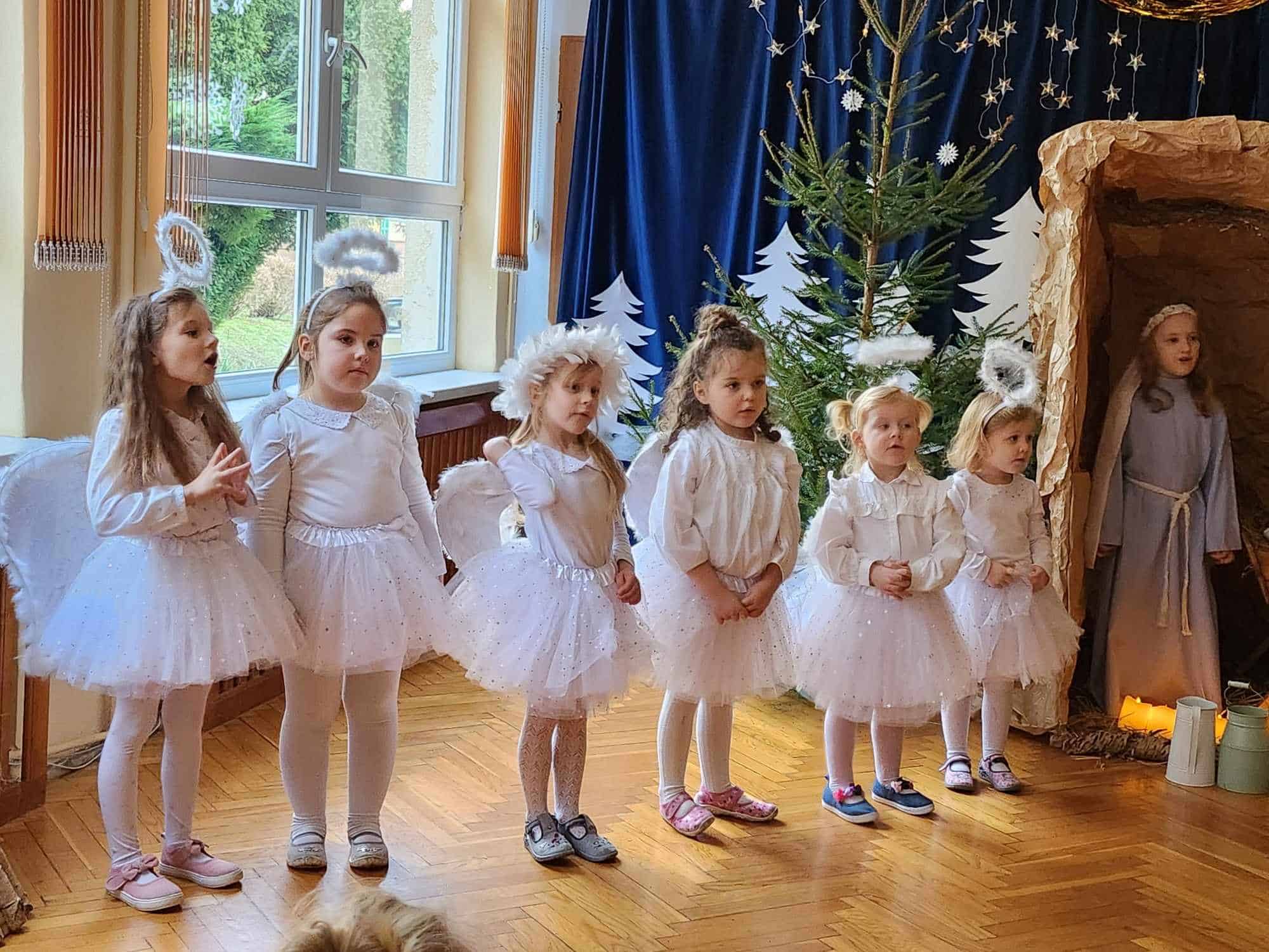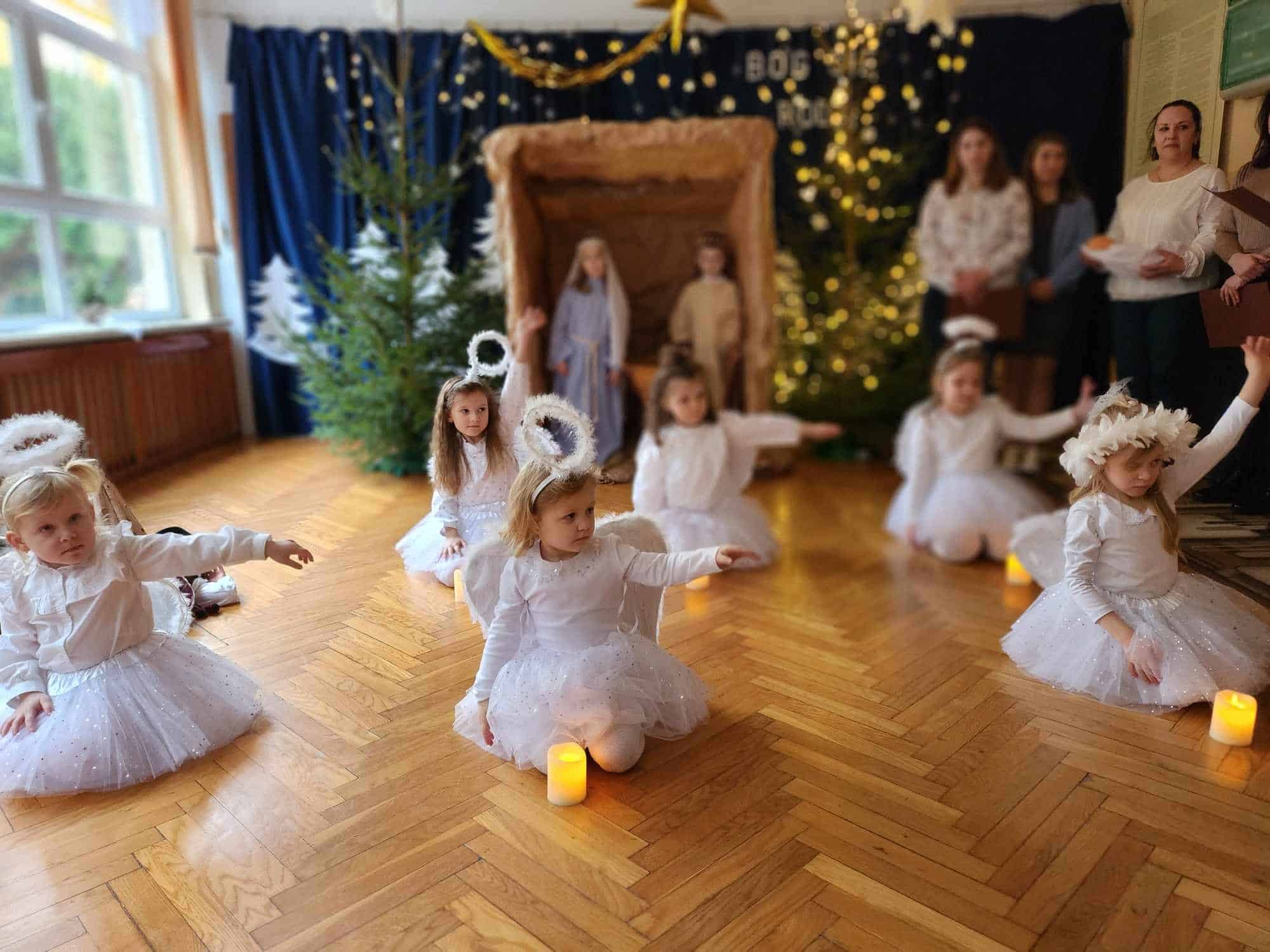Przedszkolaki z wielkim przejęciem odtwarzały swoje role. Taniec aniołków wywołał zachwyt i wzruszenie, łza kręciła się w oku niejednego widza.