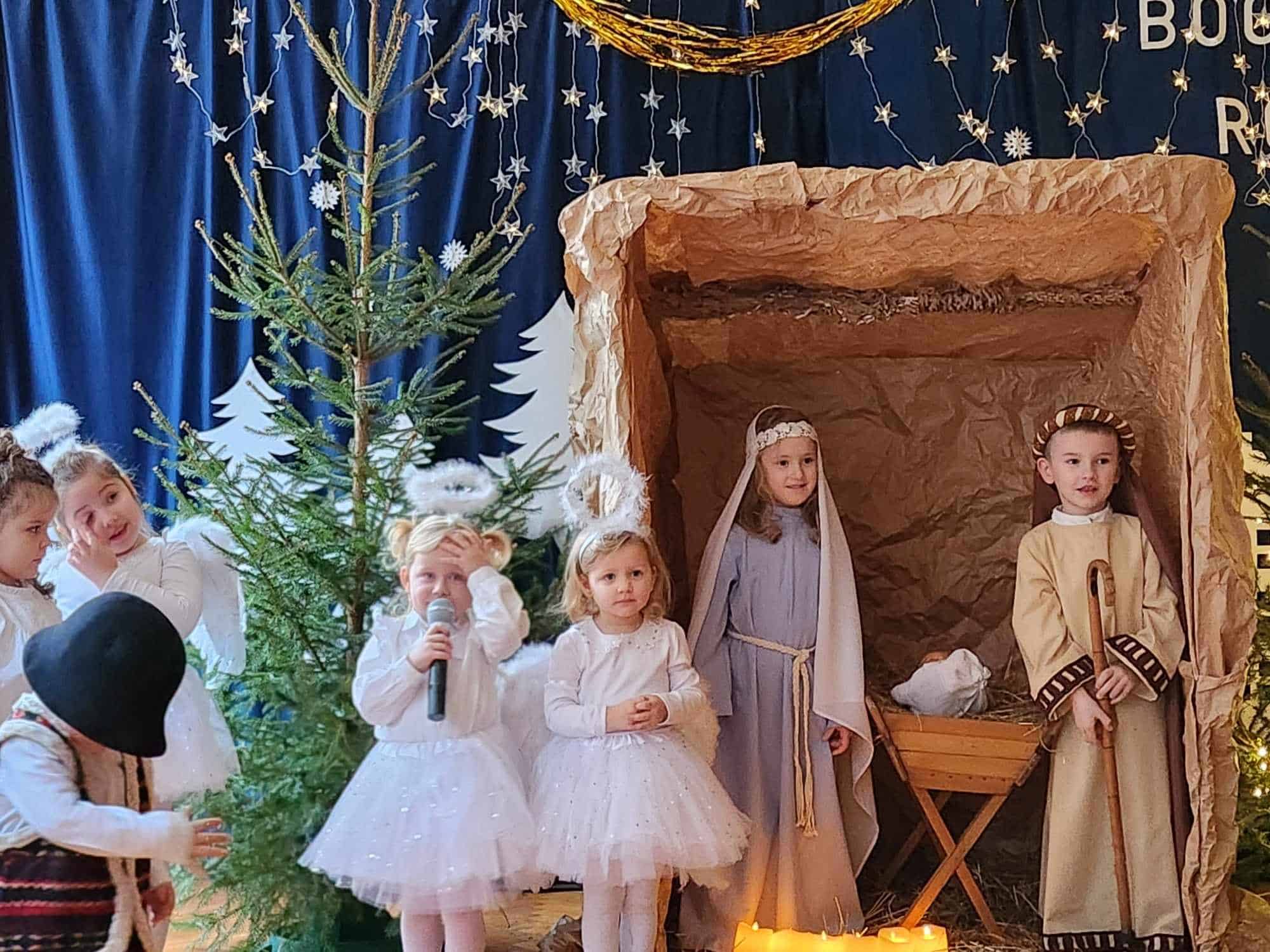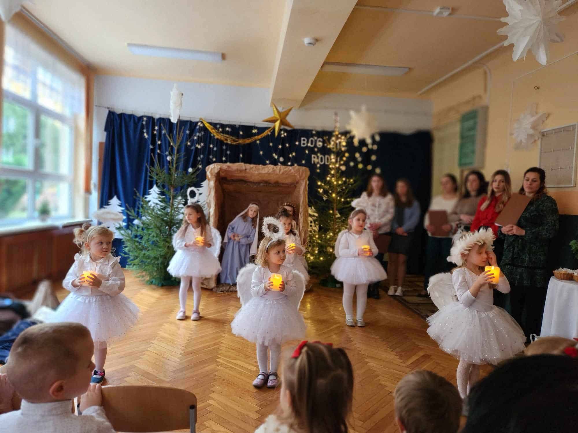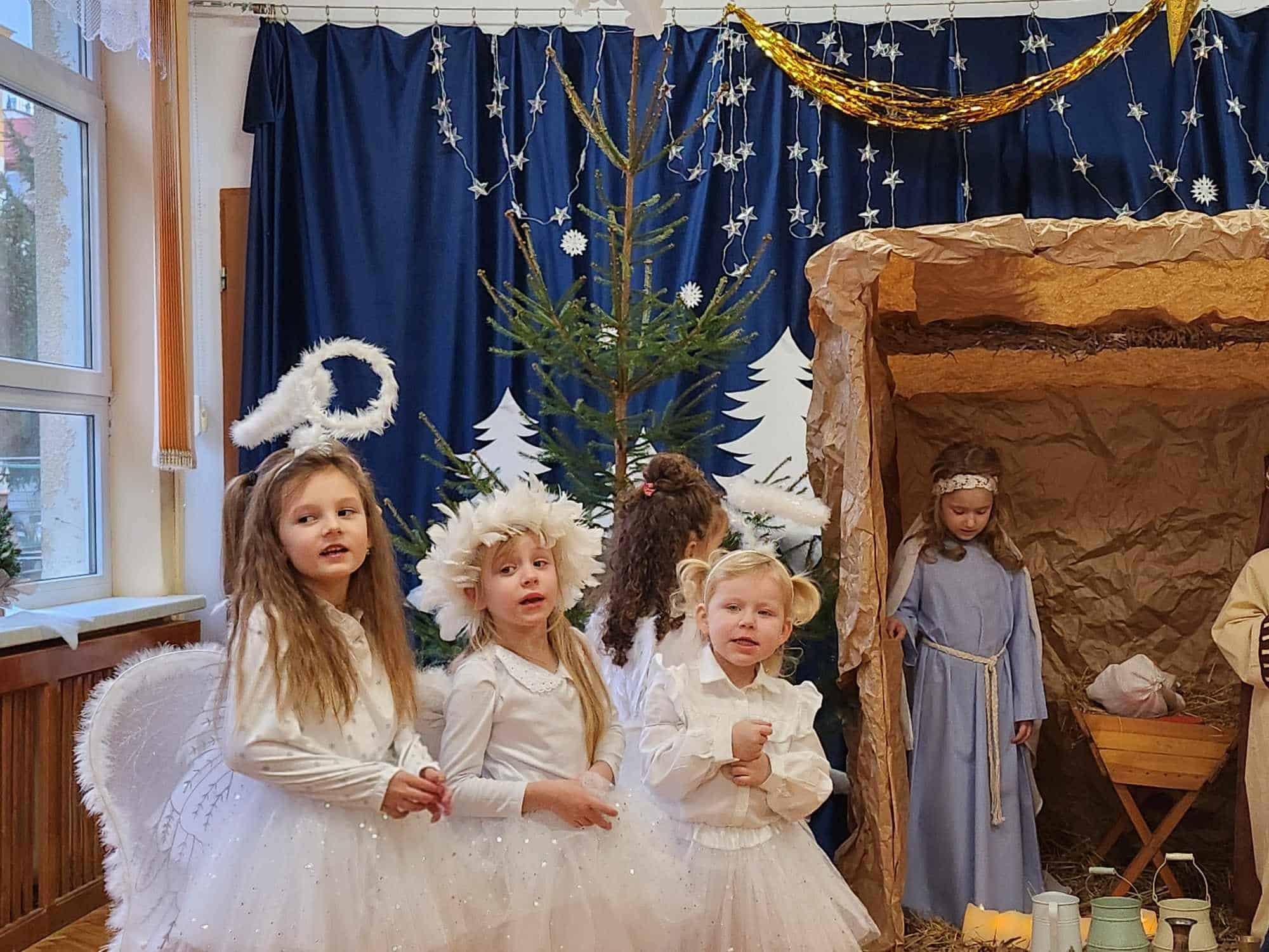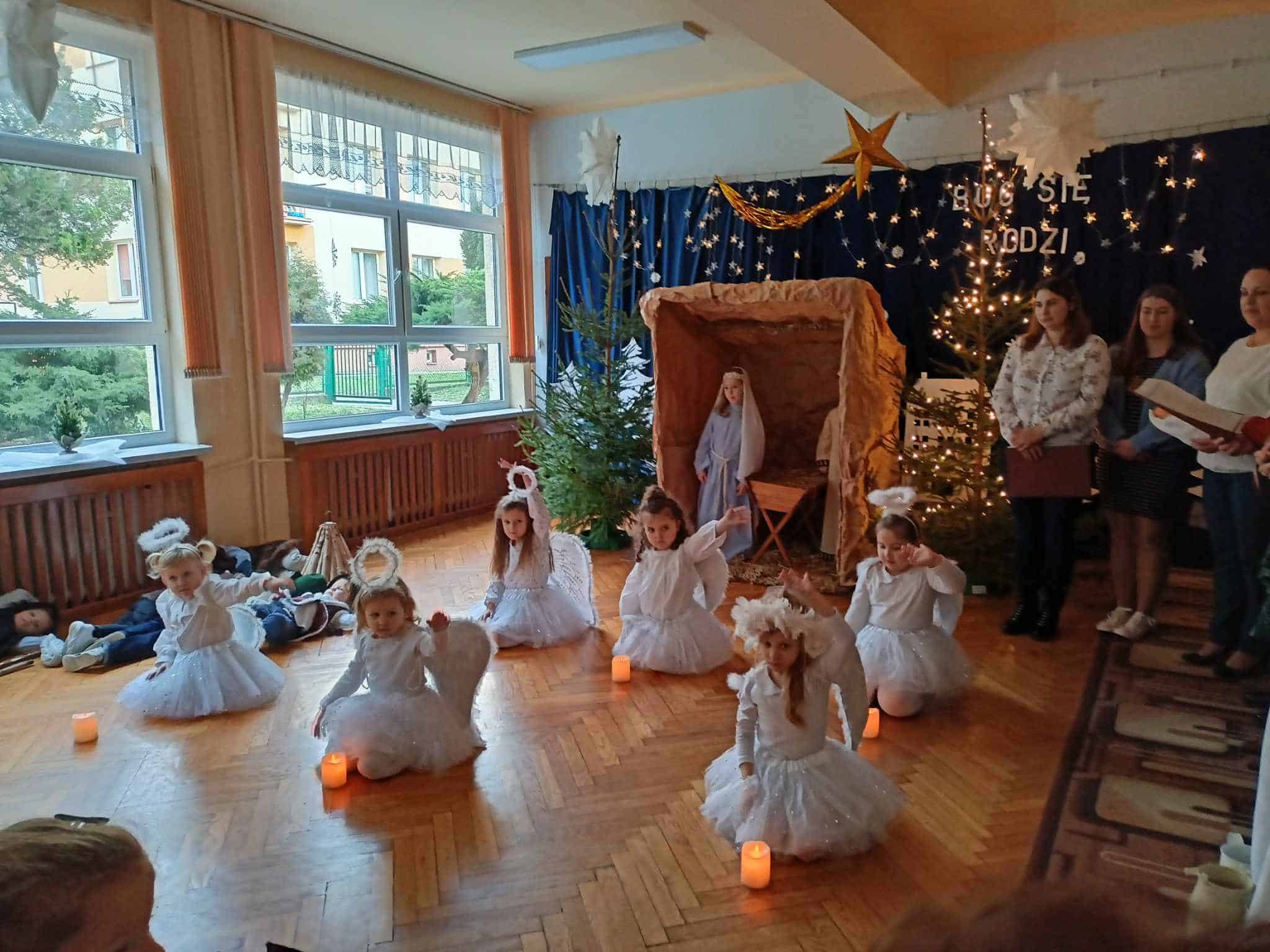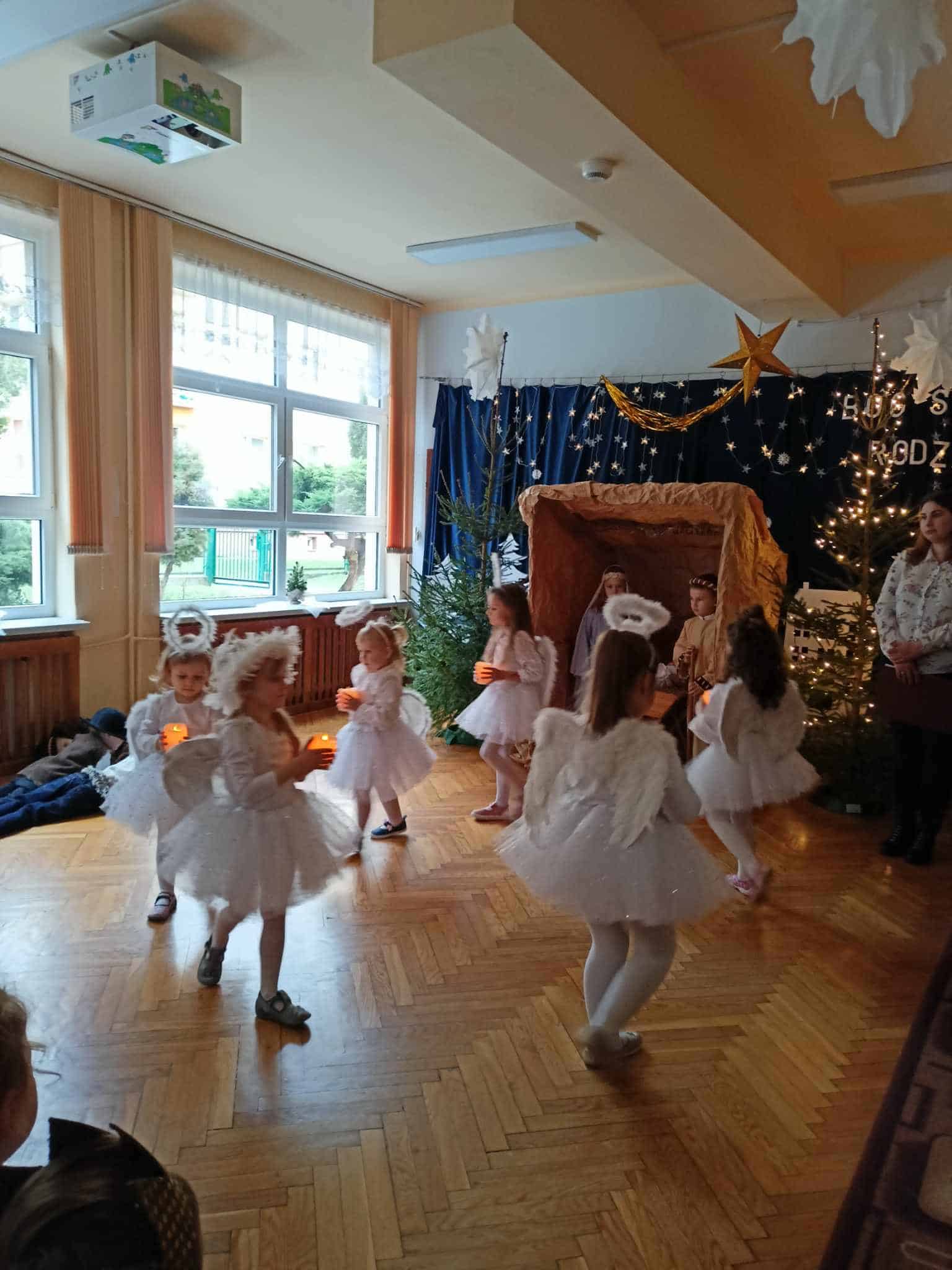 Przedszkolaki z wielkim przejęciem odtwarzały swoje role. Taniec aniołków wywołał zachwyt i wzruszenie, łza kręciła się w oku niejednego widza.