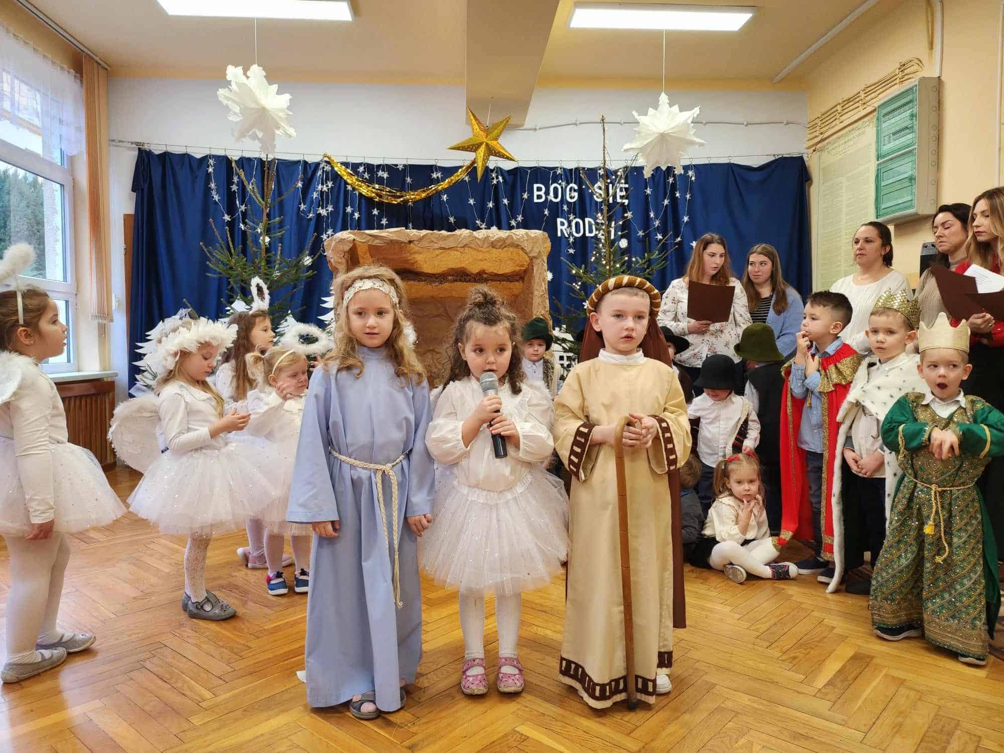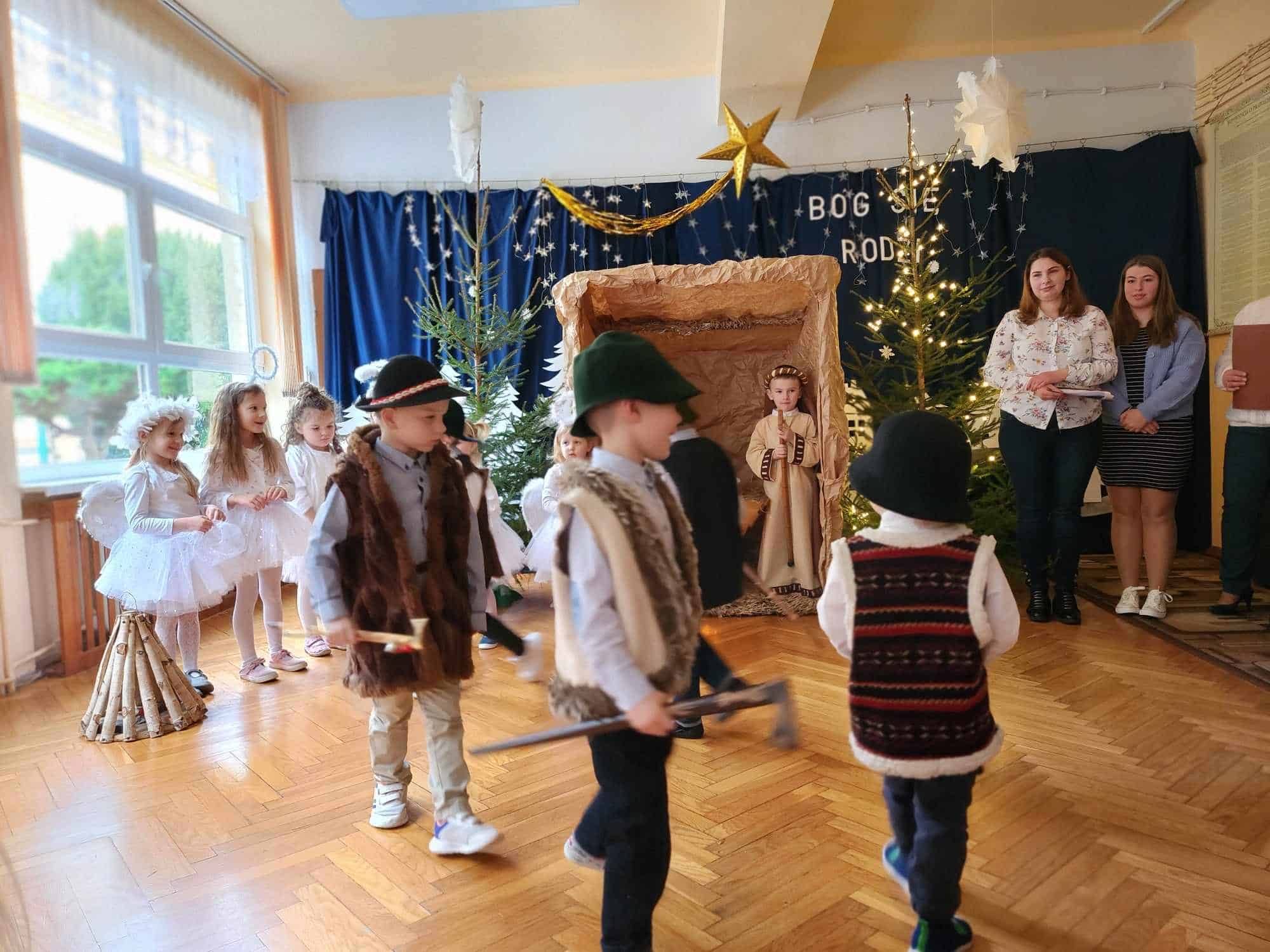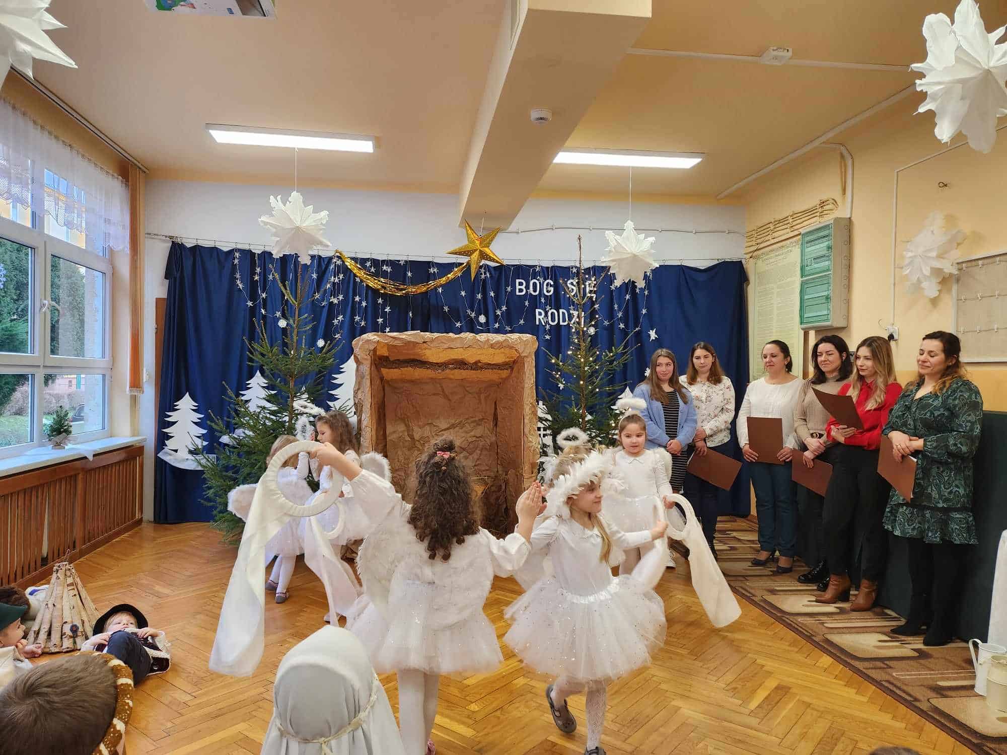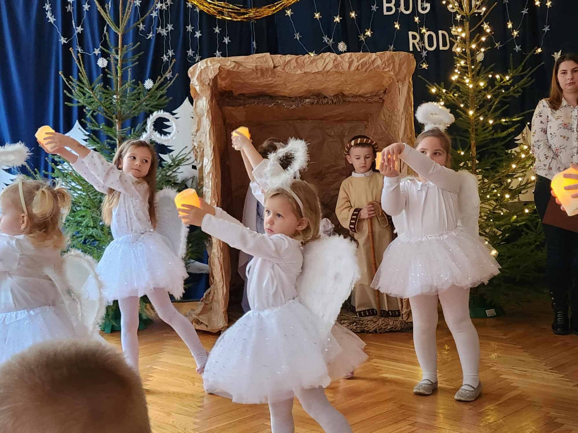 Przedszkolaki z wielkim przejęciem odtwarzały swoje role. Taniec aniołków wywołał zachwyt i wzruszenie, łza kręciła się w oku niejednego widza.