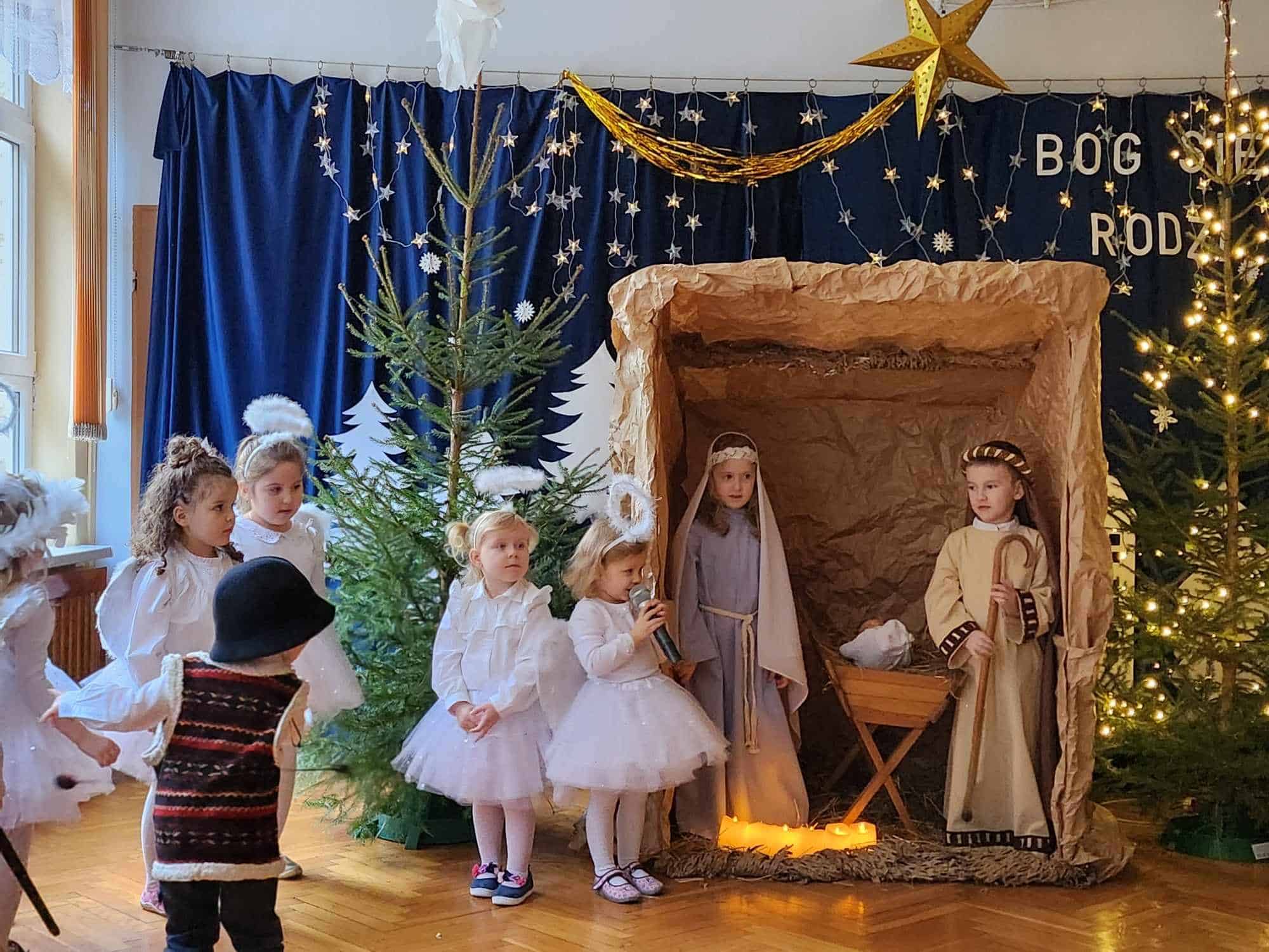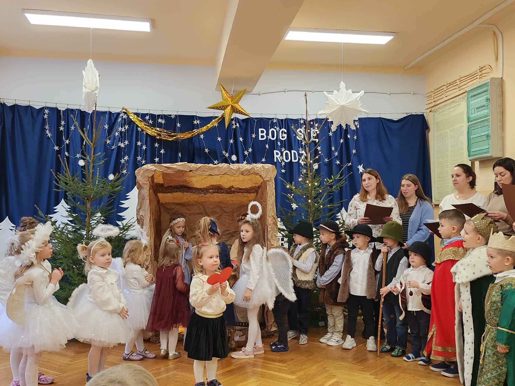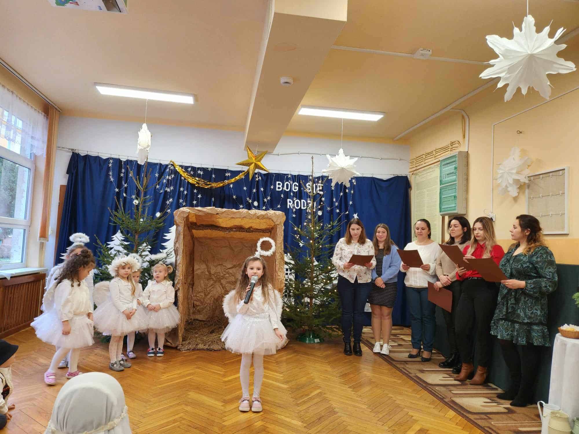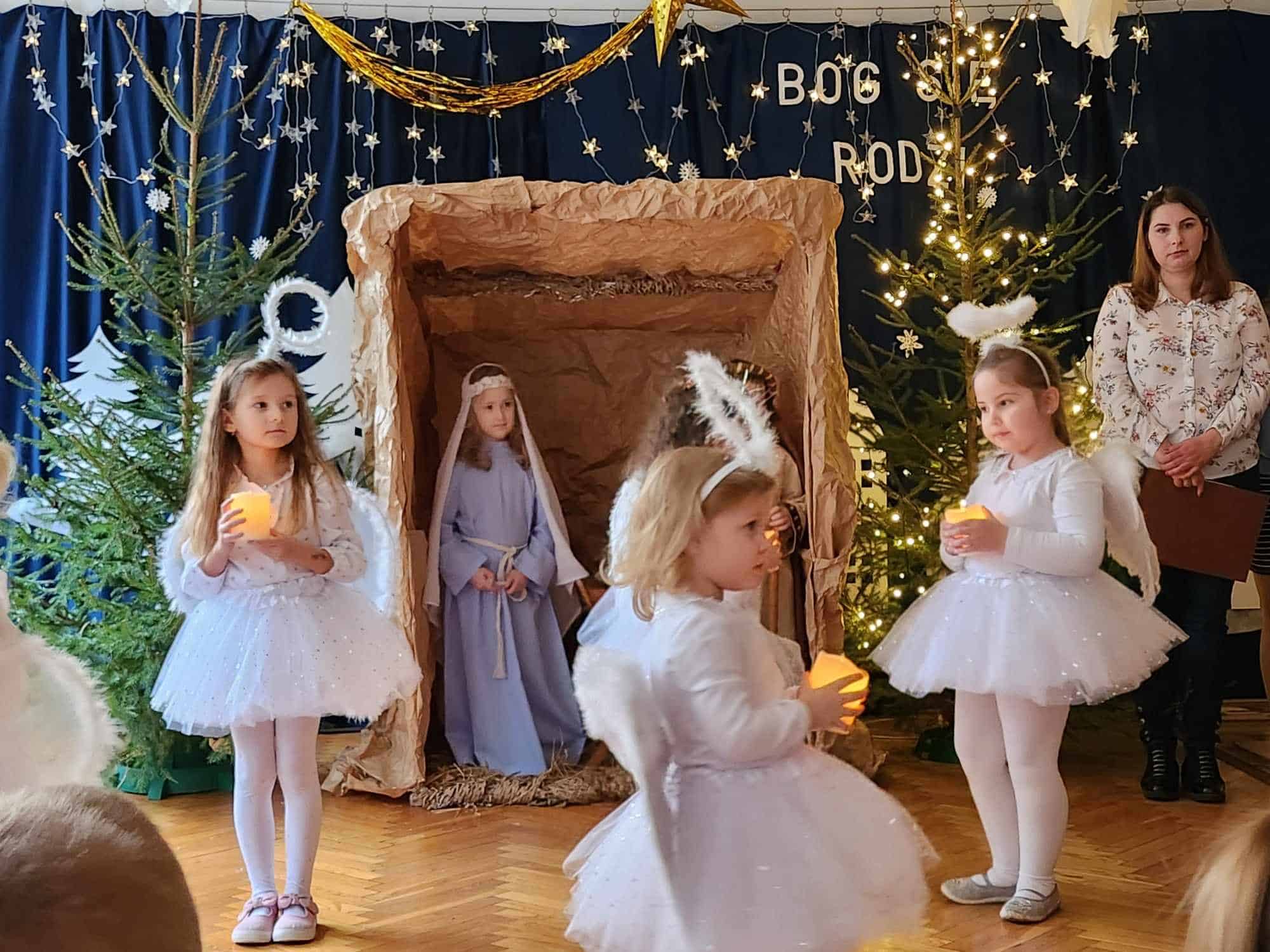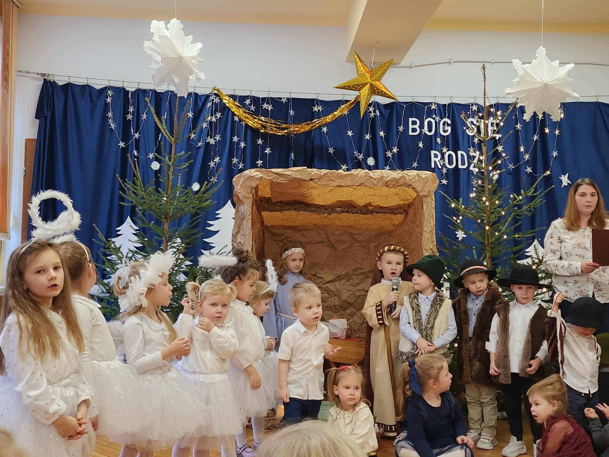 Przedszkolaki z wielkim przejęciem odtwarzały swoje role. Taniec aniołków wywołał zachwyt i wzruszenie, łza kręciła się w oku niejednego widza.