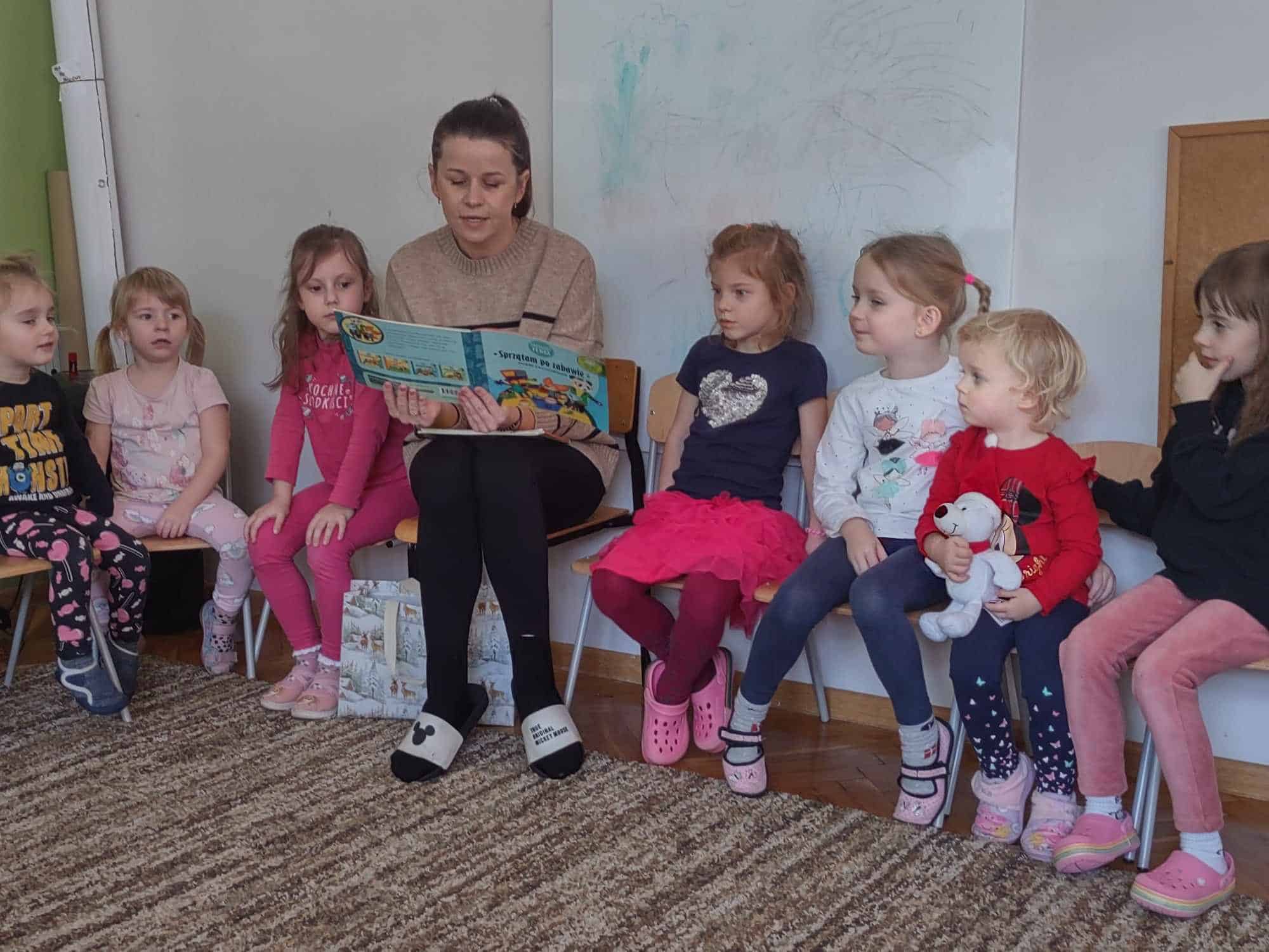 W środę gościliśmy w przedszkolu Panią Kasię, mamusię naszej Oli, która przyszła do nas wraz z Hanią, swoją drugą córeczką i zarazem siostrzyczką Oli. Hania niebawem dołączy do naszej grupy i zostanie prawowitym przedszkolakiem, zatem już powoli stawia pierwsze kroki w grupie 🙂 Pani Kasia, w ramach akcji propagowania głośnego czytania dzieciom, zaprezentowała przedszkolakom fantastyczną serię książeczek terapeutycznych „Przygody Fenka. Dobre zachowania”, odnoszących się do różnego rodzaju emocji i zasad, z którymi mierzą się na co dzień nasze przedszkolaki. Dzieci były bardzo zainteresowane i żywo reagowały na treści. Dla wytrwałych i cierpliwych, na zakończenie naszego literackiego spotkania, czekała wszystkich słodka niespodzianka. Pani Kasia wraz z Hania i Olą poczęstowały dzieci słodkościami i obiecały jeszcze niebawem nas odwiedzić ☺️ Zatem czekamy z niecierpliwością🤗