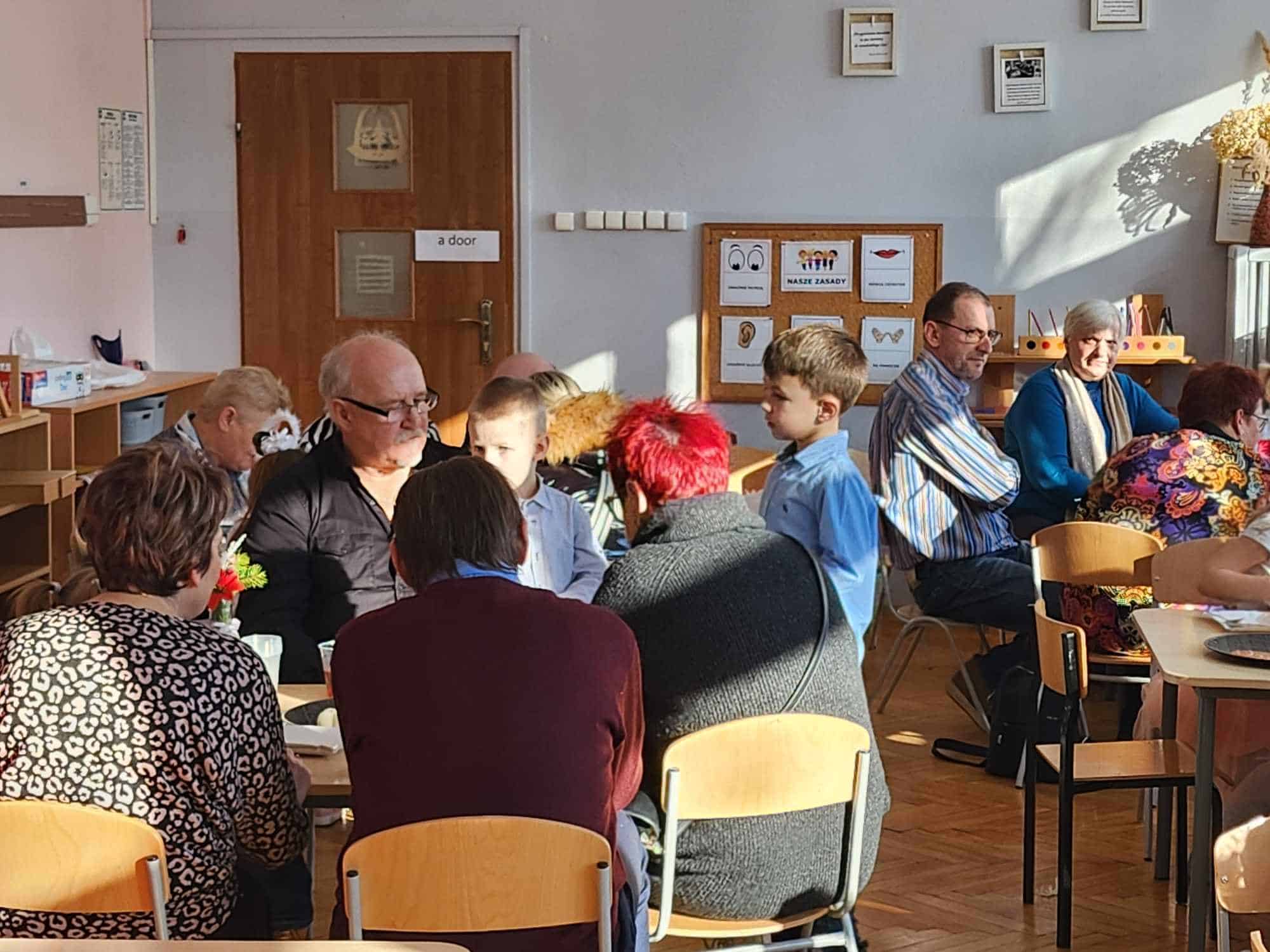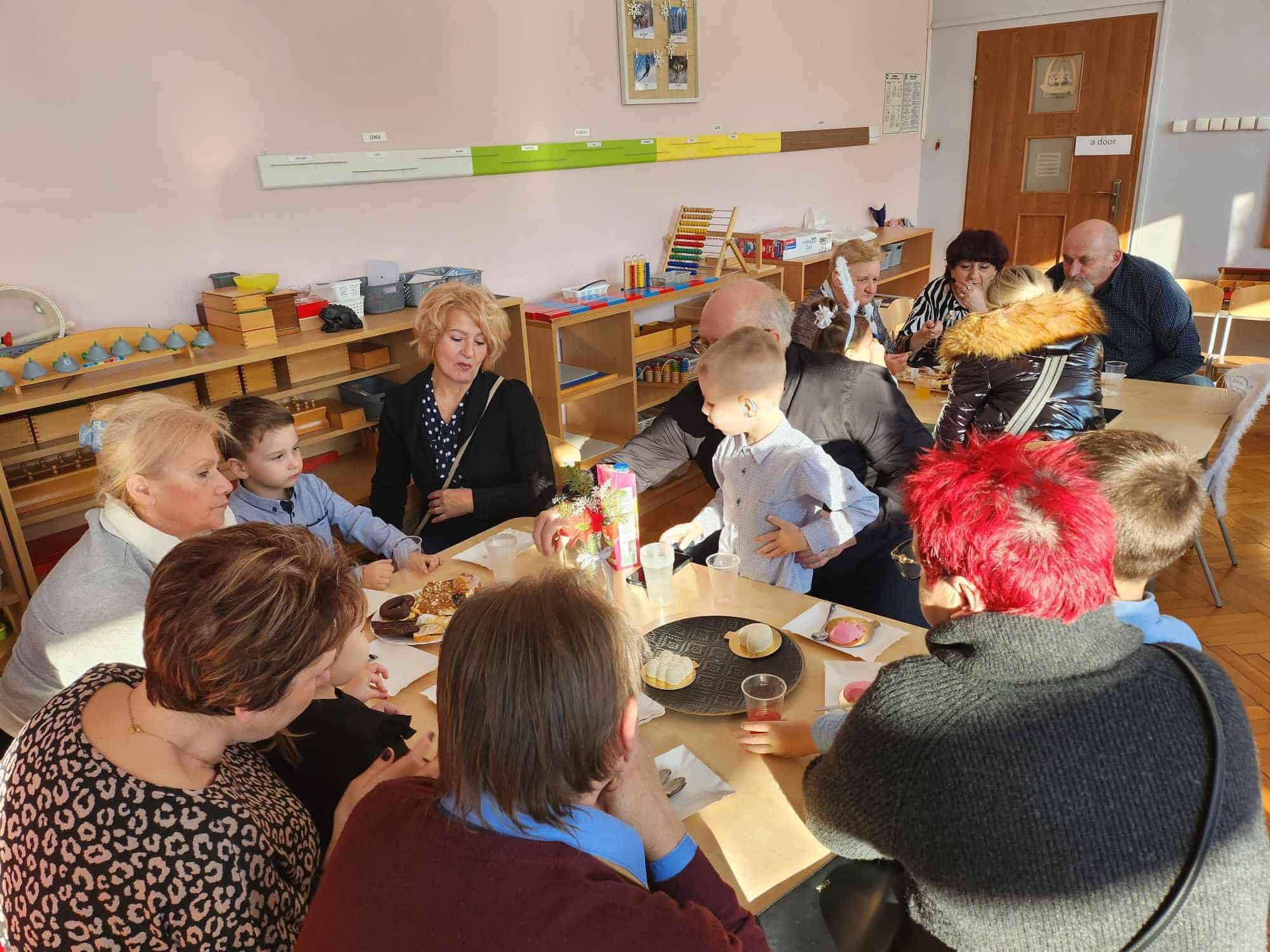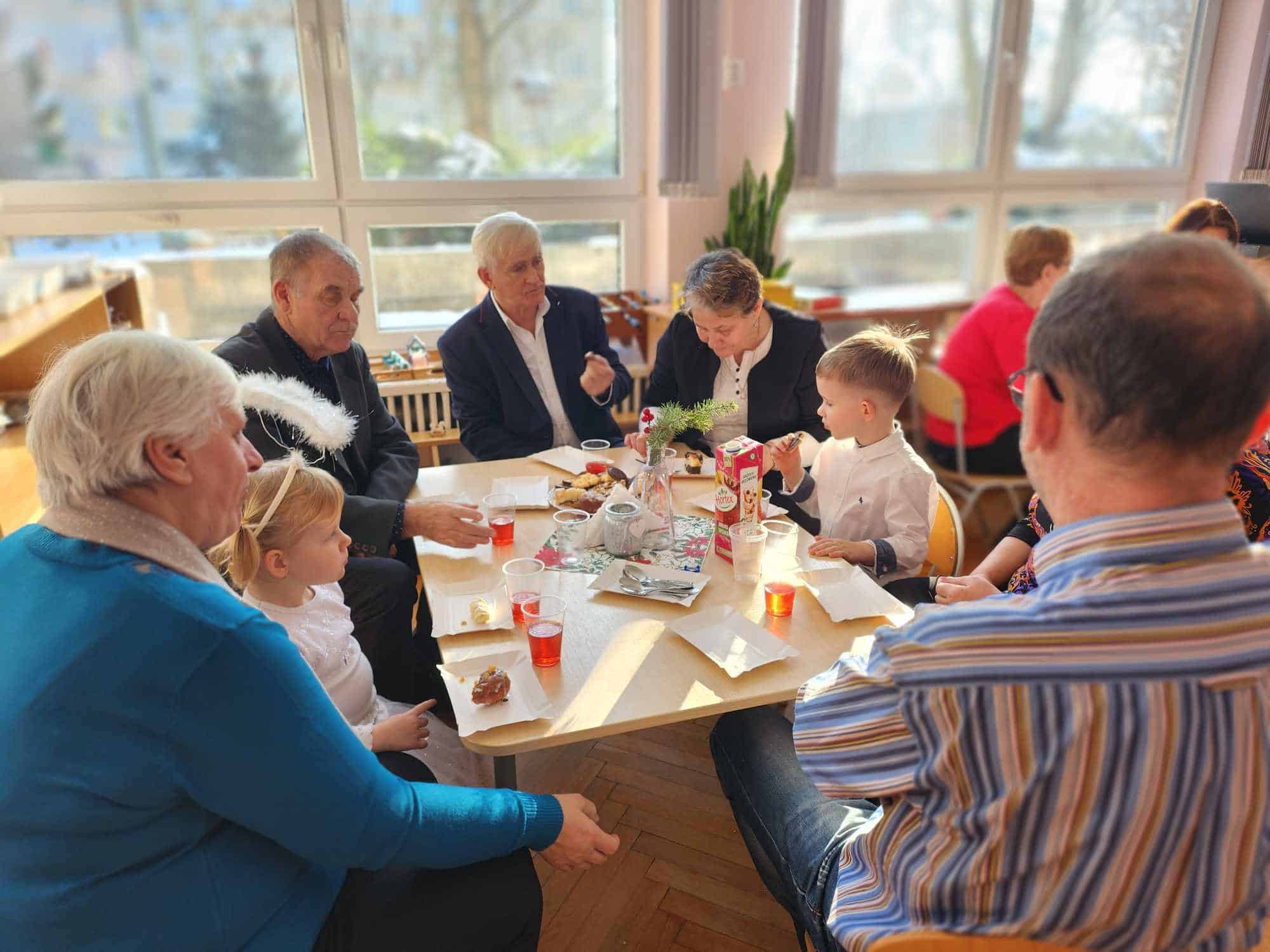 26 stycznia obchodziliśmy w naszej grupie święto naszych kochanych Babć i Dziadziusiów. Z tej okazji dzieci wspólnie z Paniami przygotowały i zaprezentowały na holu przedszkolnym inscenizację w zimowej scenerii pt.,, Niezapomniany bałwanek” , następnie przedszkolaki obdarowały zaproszonych gości wykonanymi prezentami po czym zaprosiły babcie i dziadków i wspólnie udaliśmy się na słodki poczęstunek przygotowany przez rodziców w naszej sami , aby w szczególny sposób okazać swoim bliskim szacunek i po raz kolejny podziękować za miłość, czas, poświęcenie jakimi darzą swoje wnuki. Był to czas radosny pełen wzruszeń i okazywanej sobie wzajemnie wdzięczności. Wszystkim przybyłym Gościom serdecznie dziękujemy za poświęcony czas wspólnego świętowania a wszystkim Rodzicom za zaangażowanie i pomoc w przygotowaniu poczęstunku.