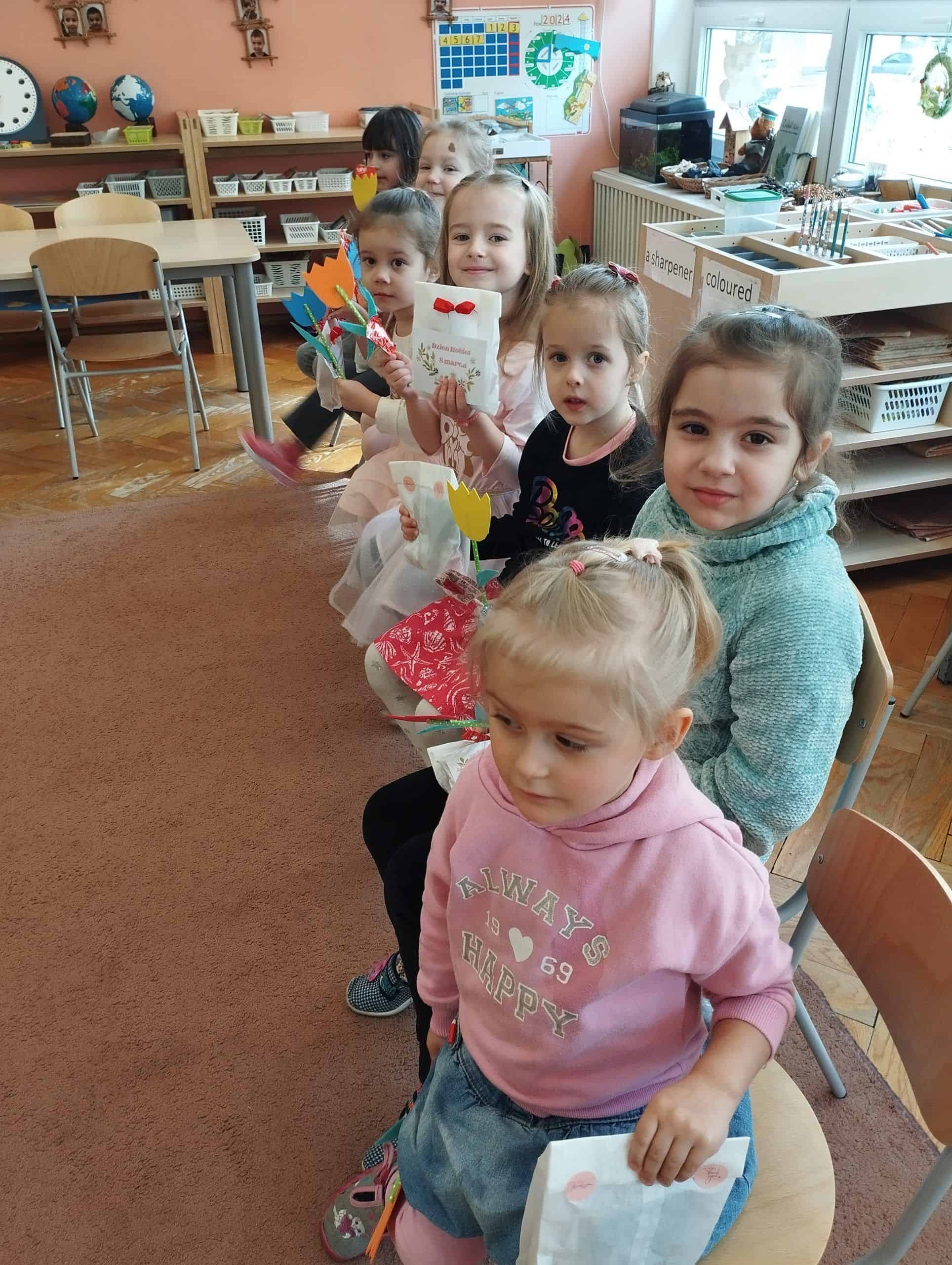 To był szczególny dzień zarówno dla tych dużych jak i małych kobiet. Dzień wcześniej wszyscy chłopcy z naszej grupy w tajemnicy przed dziewczynkami zaprojektowali i wykonali upominki –  kwiatki z pianki plastycznej. W Dniu Kobiet chłopcy bardzo się starali, aby ten dzień uczynić wyjątkowo miłym. Była to też okazja do rozmów o zawodach wykonywanych przez kobiety i roli jaką pełnią w każdej rodzinie. Przy okazji utrwaliliśmy wiedzę o dobrym manierach, o tym jak być serdecznym, uprzejmym wobec dziewczynek i kobiet. Ogromną przyjemność sprawili chłopcy wręczając dziewczynkom i nauczycielkom drobne upominki i składając im serdeczne życzenia. Bardzo dziękujemy  mamusi Karolinki za przygotowanie upominków dla dziewczynek i nauczycieli.