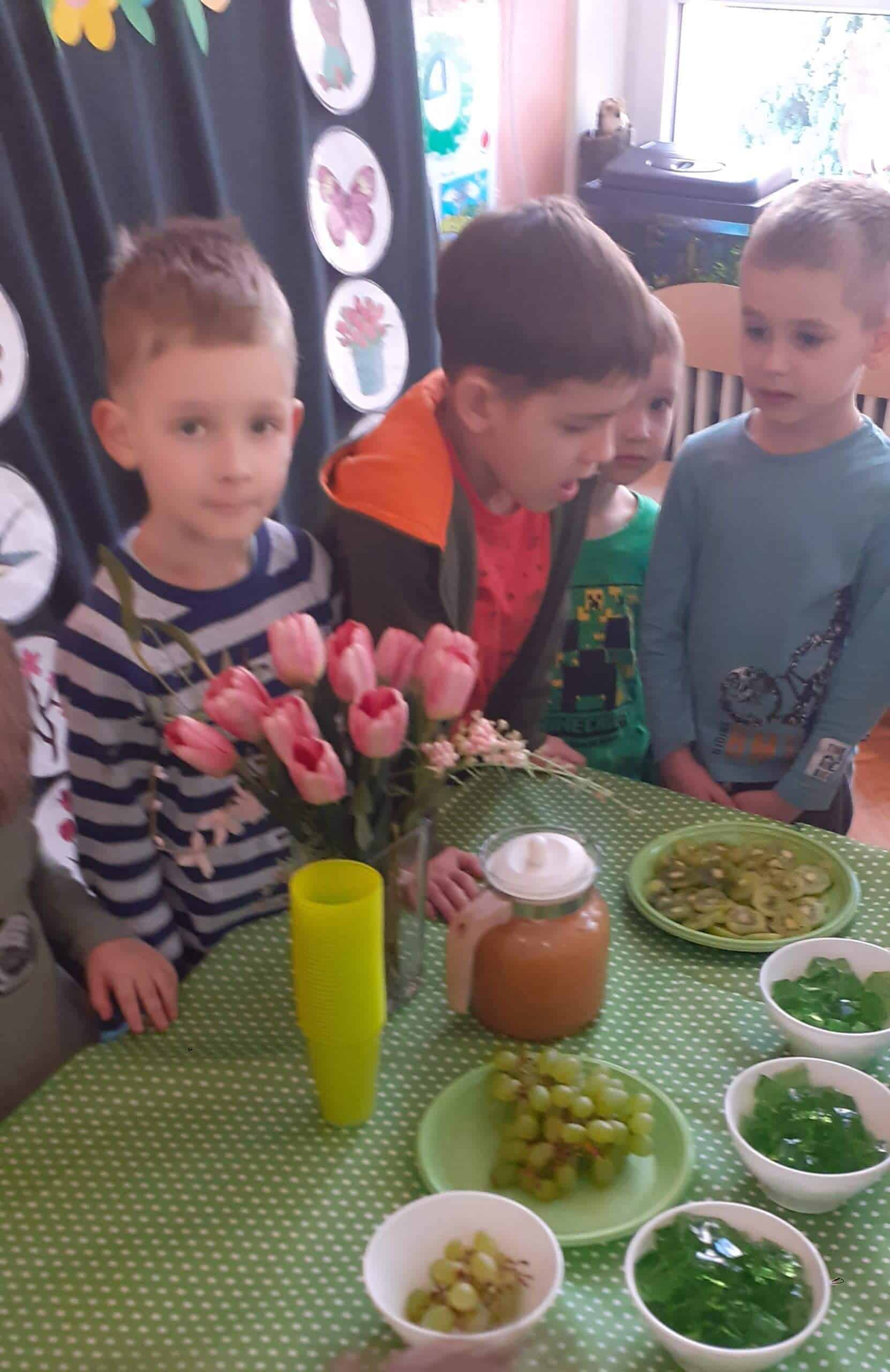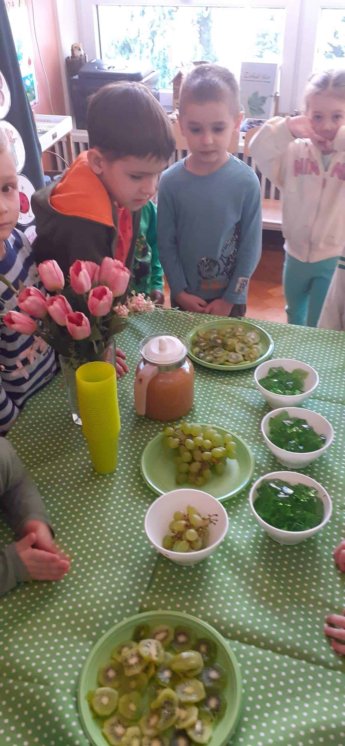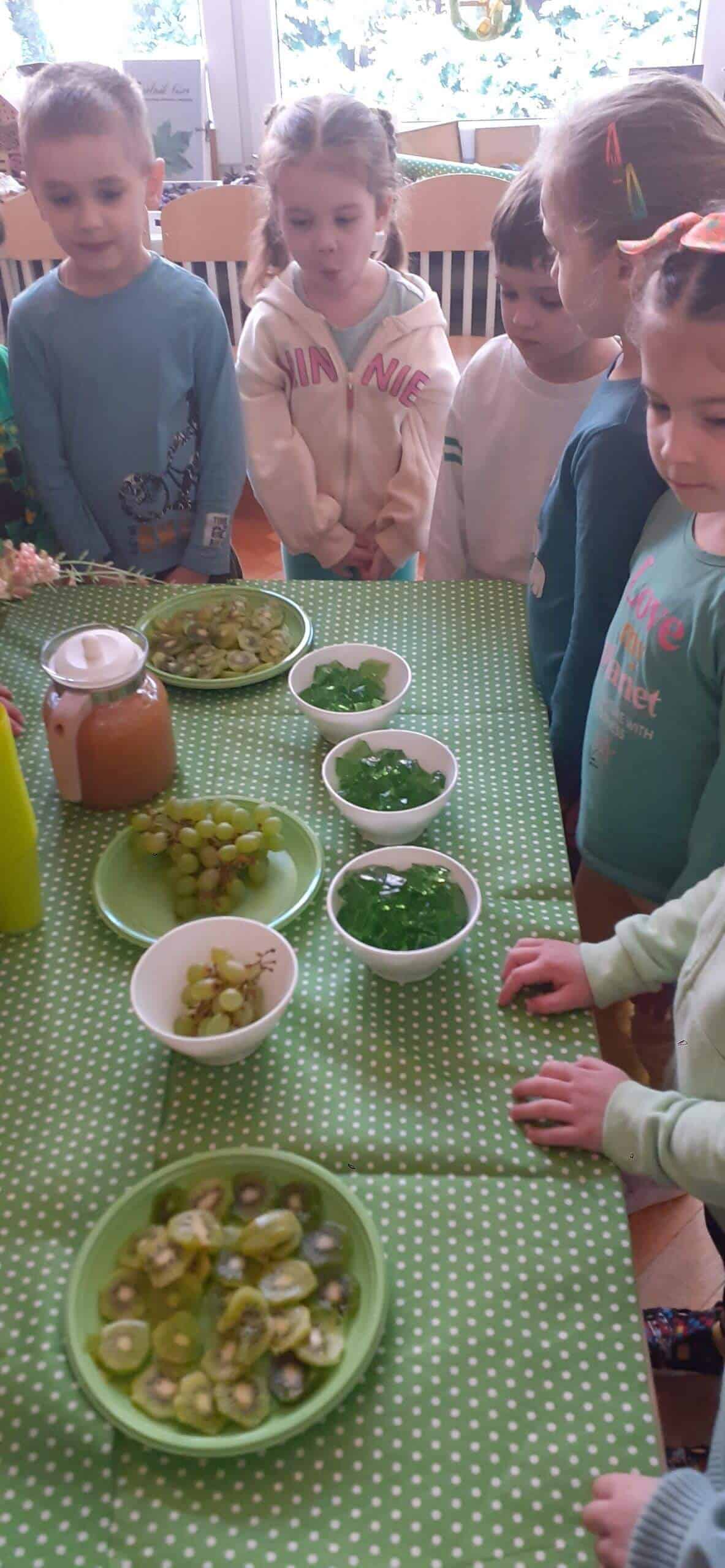 Jednym bardzo ważnym aspektem jest kształtowanie wśród dzieci w przedszkolu prawidłowych nawyków żywieniowych , dlatego też dzieci z grupy Żółtej uczestniczyły w lekcji dotyczącej zdrowego odżywiania. Tak atrakcyjne zajęcie przeprowadziła dla dzieci mamusia Rozalki, Dietetyk Centrum Opieki Medycznej w Jarosławiu. Serdecznie dziękujemy Pani Marcie za poświęcony czas ,przekazanie dzieciom cennych informacji oraz przygotowany dla wszystkich pyszny i zdrowy koktajl owocowy.