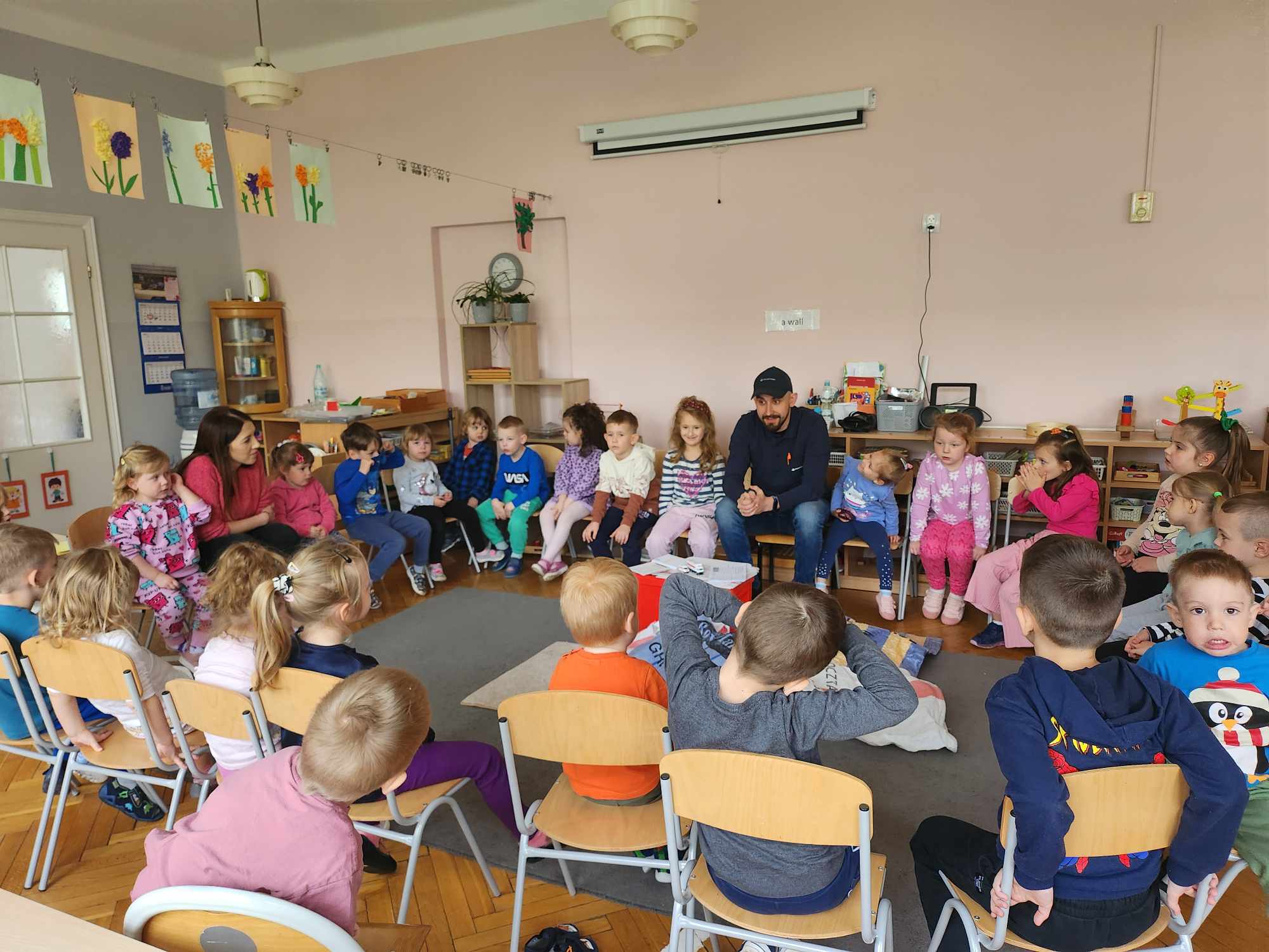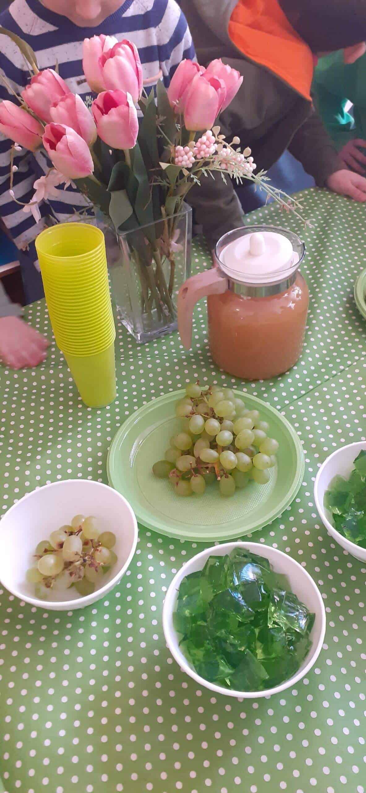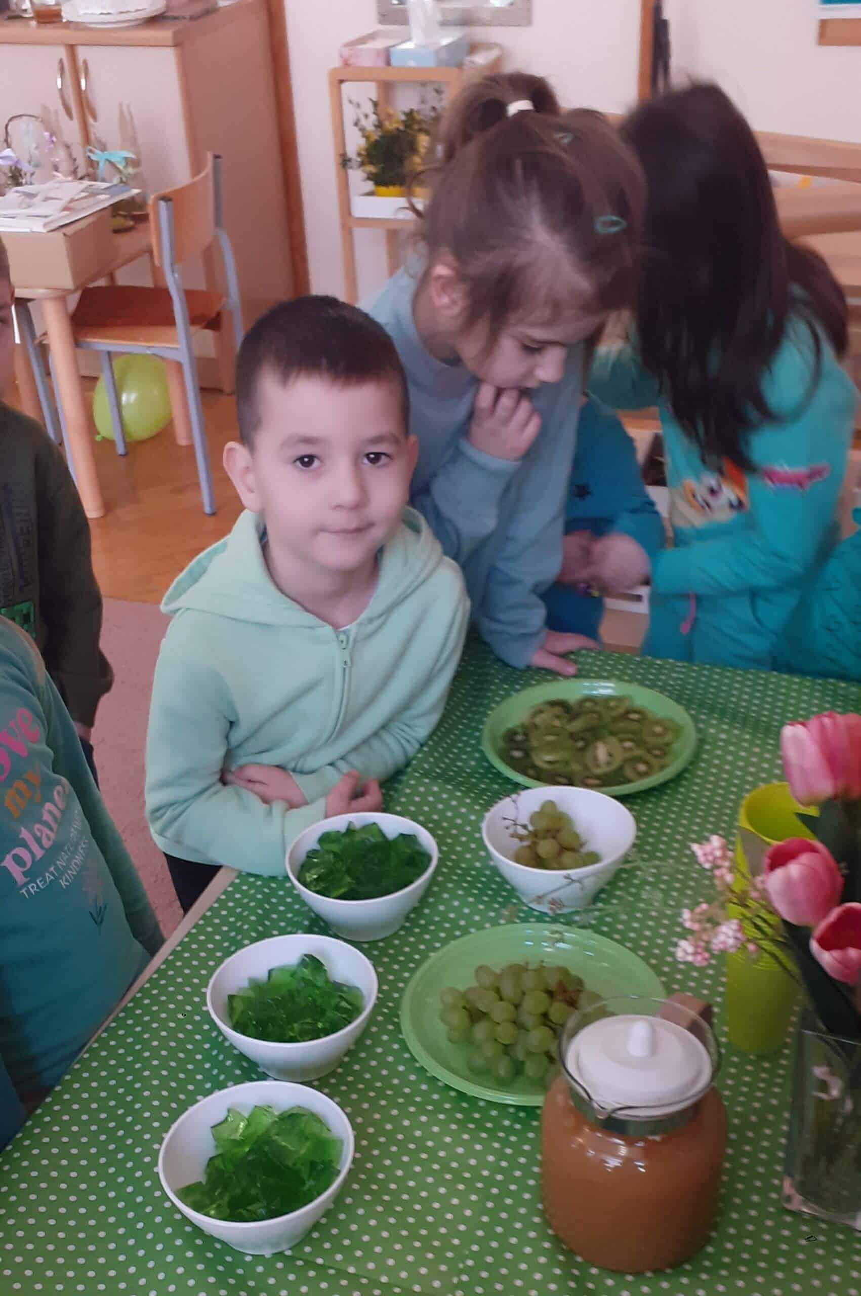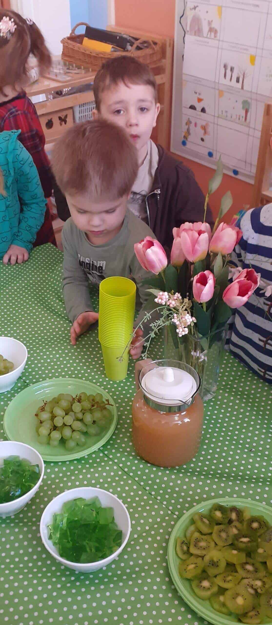 Jednym bardzo ważnym aspektem jest kształtowanie wśród dzieci w przedszkolu prawidłowych nawyków żywieniowych , dlatego też dzieci z grupy Żółtej uczestniczyły w lekcji dotyczącej zdrowego odżywiania. Tak atrakcyjne zajęcie przeprowadziła dla dzieci mamusia Rozalki, Dietetyk Centrum Opieki Medycznej w Jarosławiu. Serdecznie dziękujemy Pani Marcie za poświęcony czas ,przekazanie dzieciom cennych informacji oraz przygotowany dla wszystkich pyszny i zdrowy koktajl owocowy.
