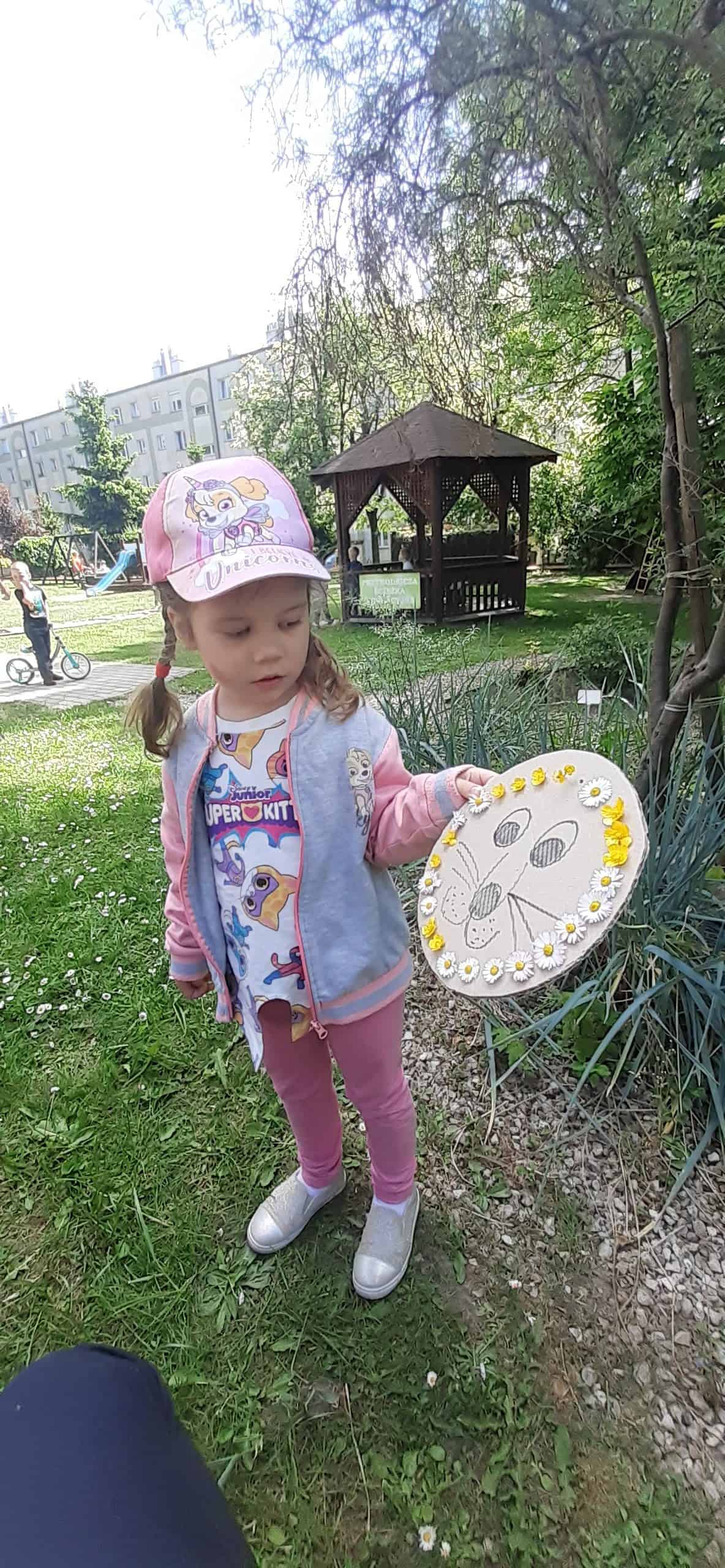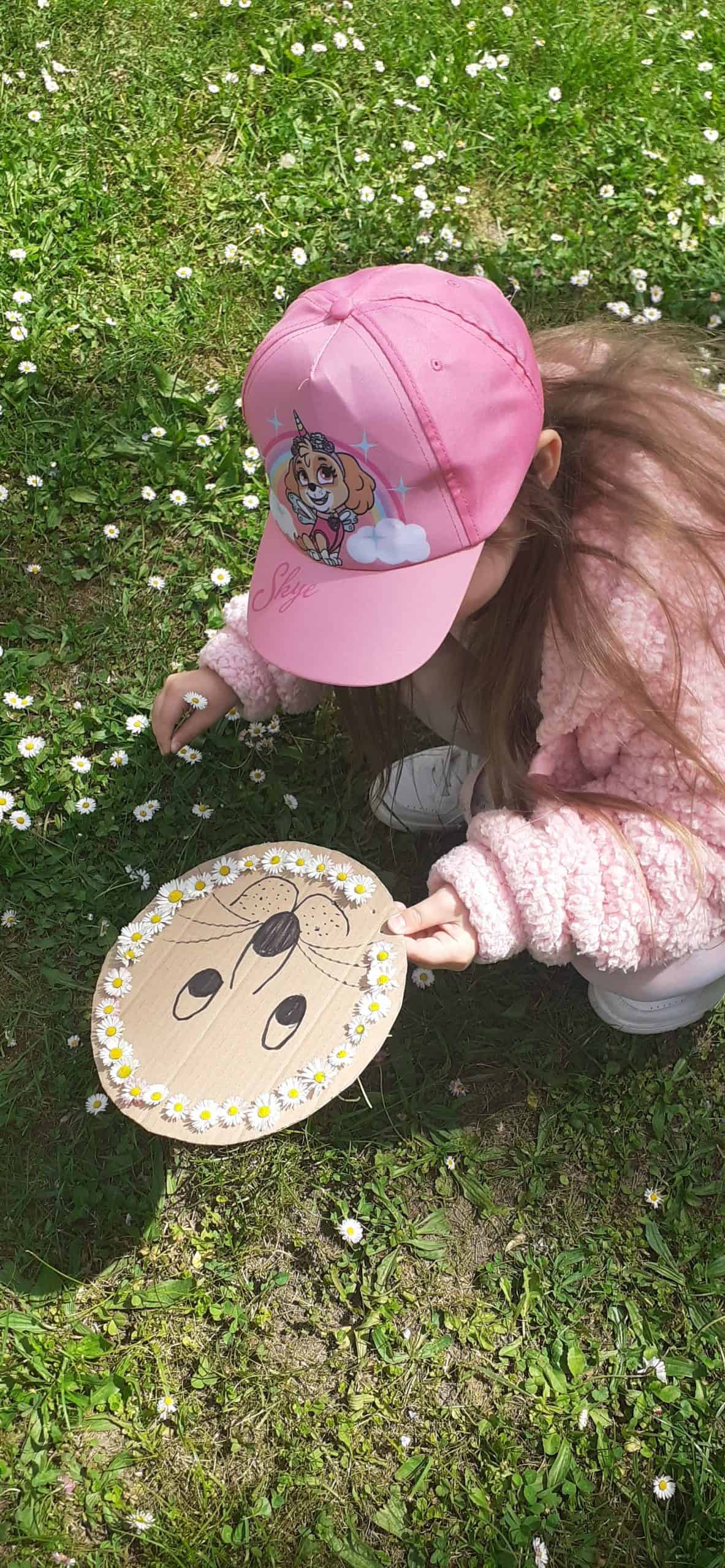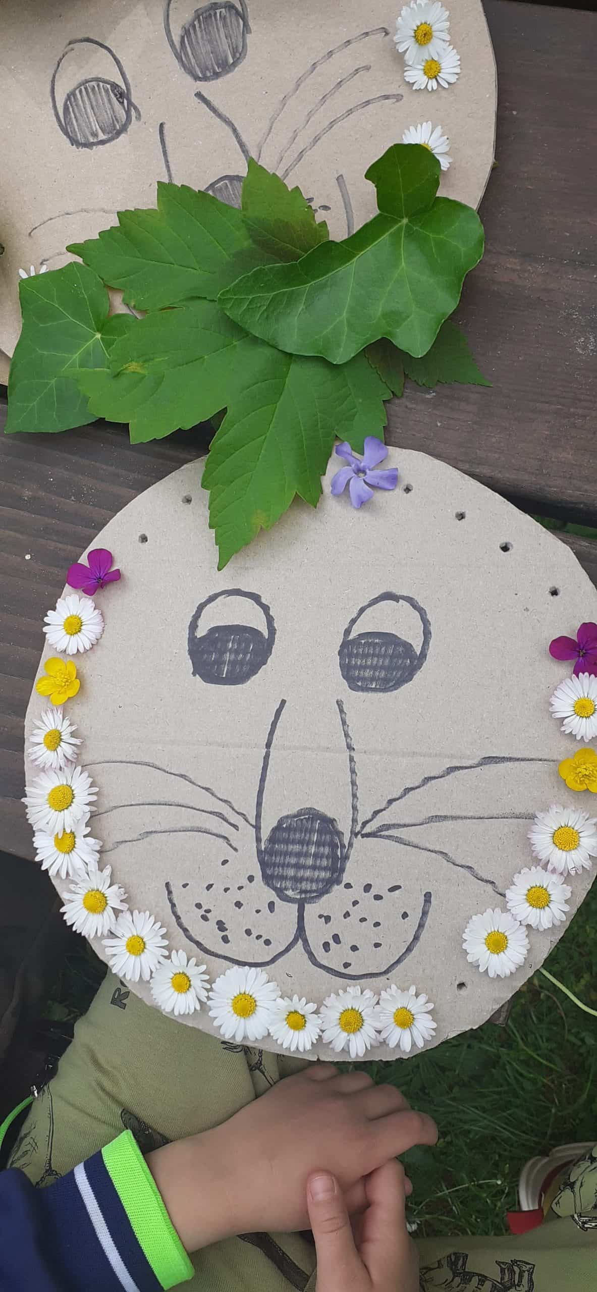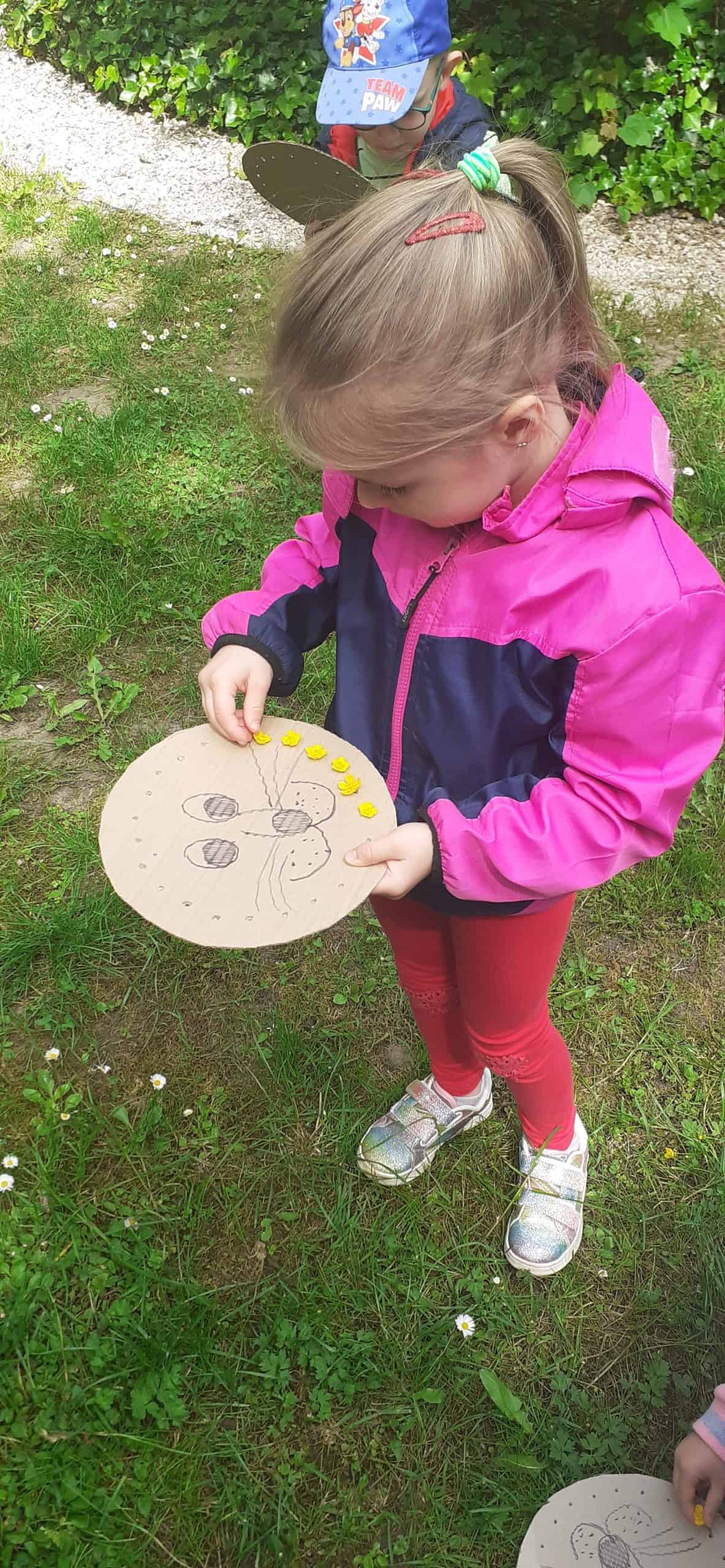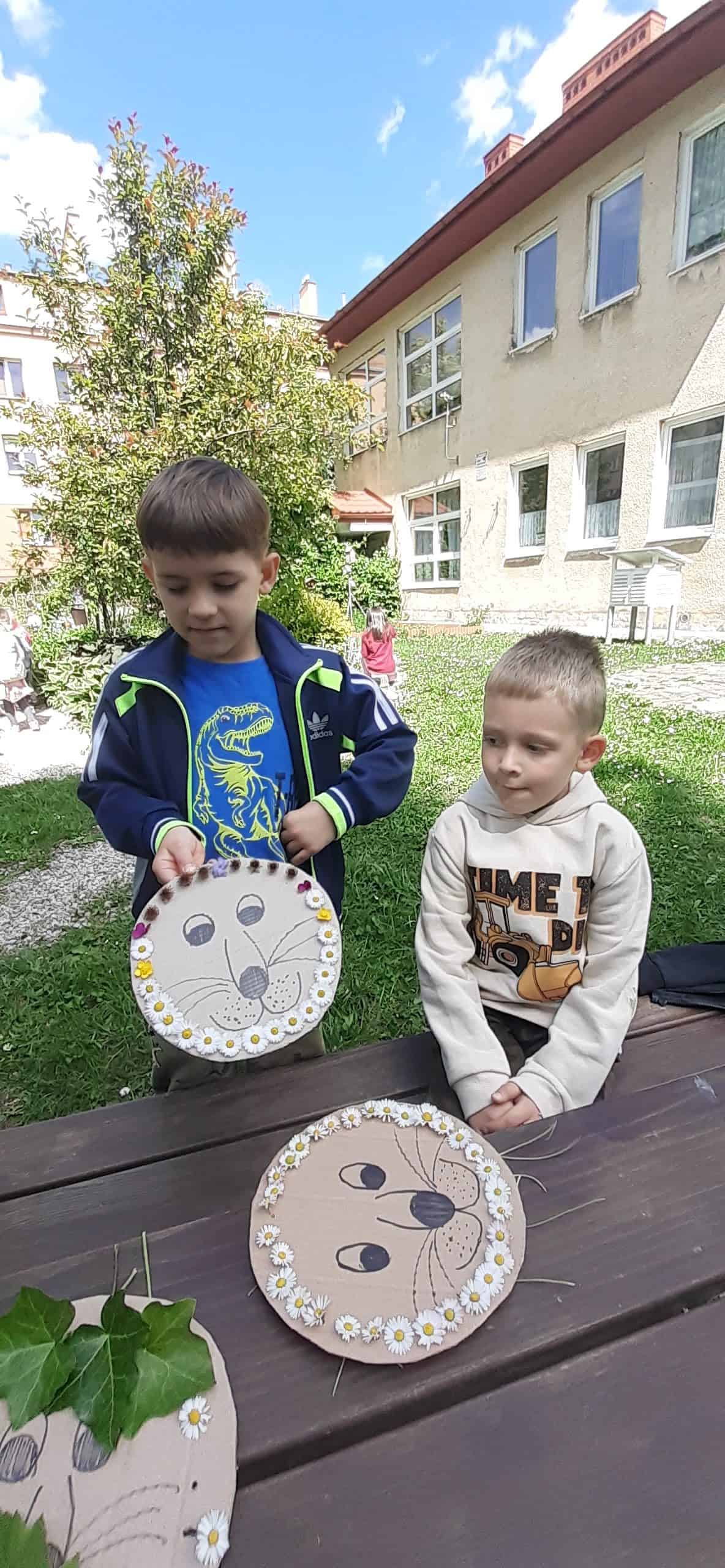 Wiosna w rozkwicie, wszystko dookoła zielenieje i kwitnie. Dzieci wszystkimi zmysłami doświadczają kolorów i zapachów wiosny. Z ochotą odnajdują ciekawe egzemplarze roślin, nazywają je, poznają ich kolorystykę i budowę. Przyrodnicza ścieżka edukacyjna w tym zakresie dostarcza dzieciom mnóstwo możliwości. Tym razem dzieci otrzymały podziurkowaną tekturkę, na której narysowana było głowa lwa. Zadanie dzieci polegało wypełnieniu otworków różnorodnymi roślinami tak, aby powstała oryginalna głowa lwa. Był to proces przekształcania wyobraźni w rzeczywistość, dzieci okazały się bardzo kreatywne, rozwijały swoją wyobraźnię. Wszelkie twórcze działania sprzyjają dziecku w rozwoju jego potencjału, dzieci mają wtedy możliwość wyrażania swojej indywidualności.