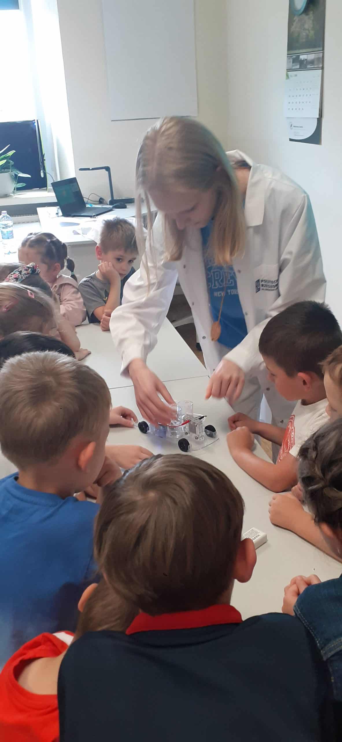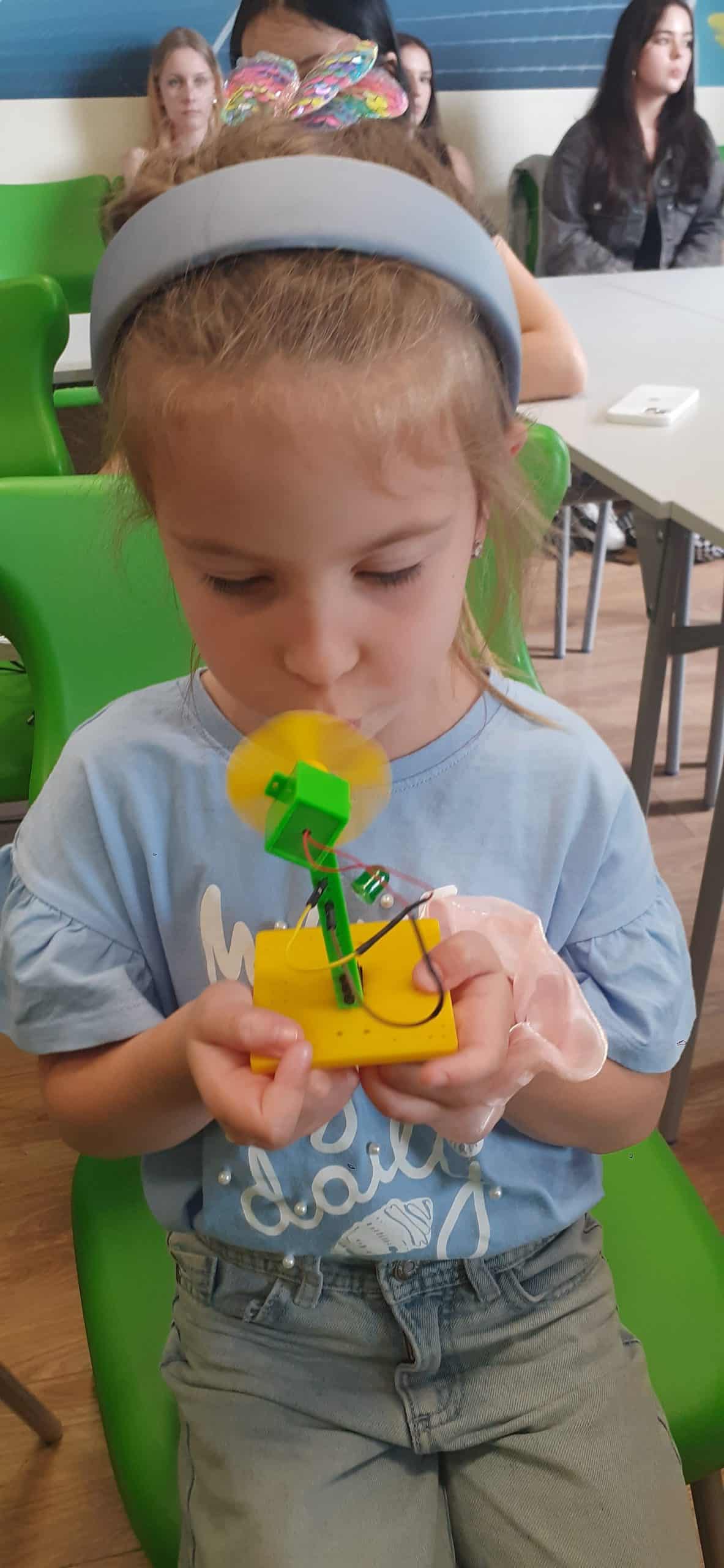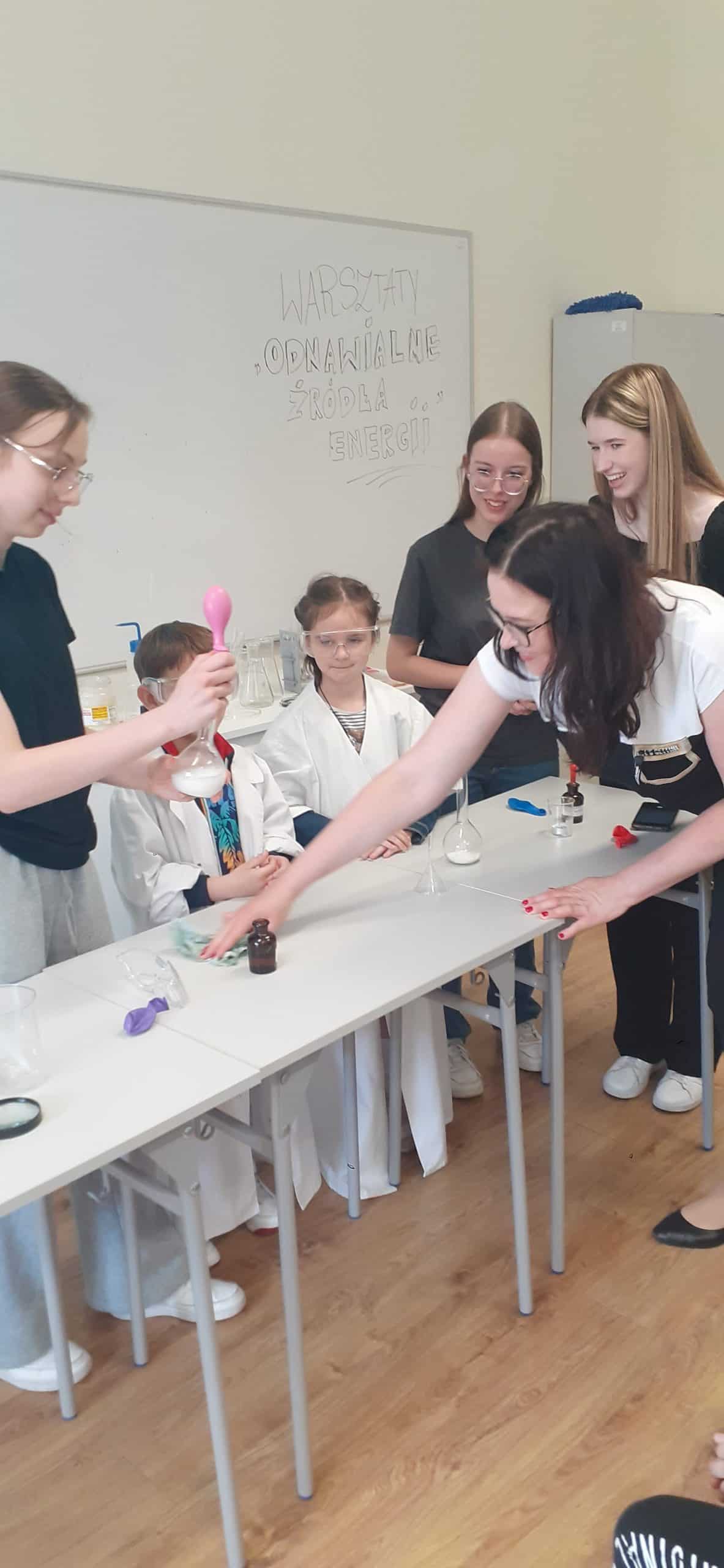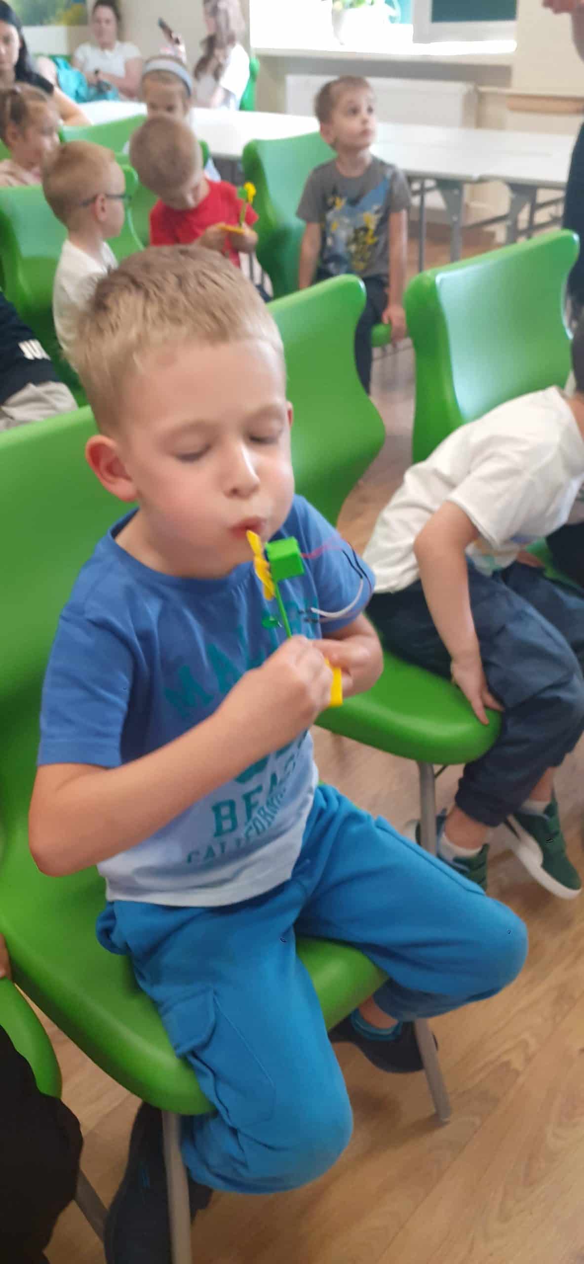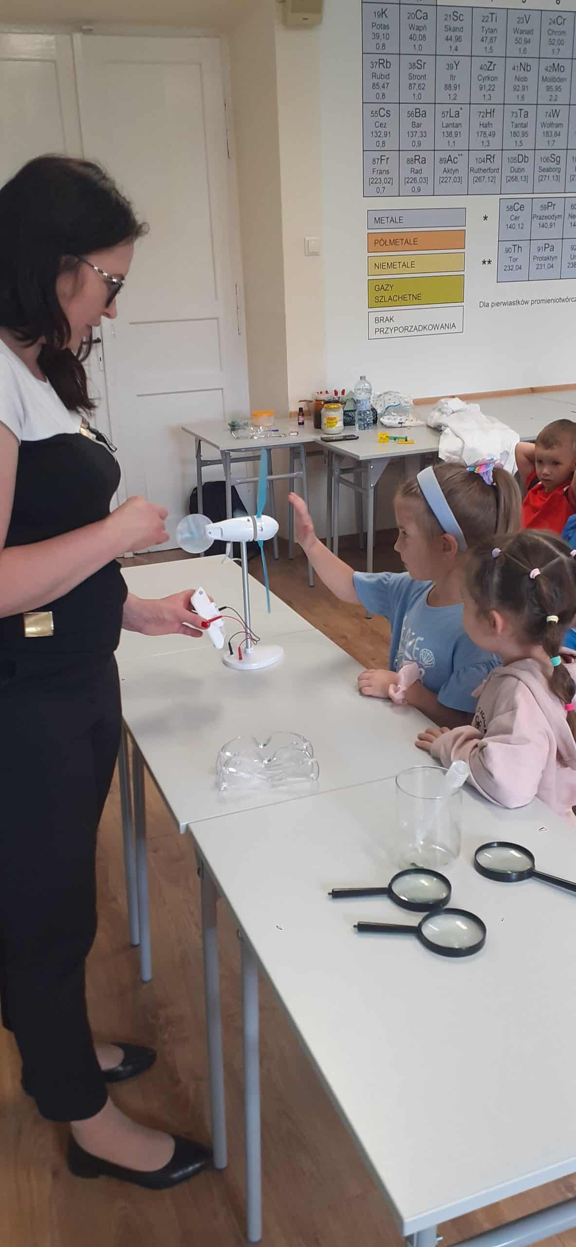 To była już druga nasza wizyta w liceum Ogólnokształcącym im. Mikołaja Kopernika. Ty razem za sprawą mamusi Jasia Pani Iwony wzięliśmy udział w warsztatach energii odnawialnej. Temat brzmi jak dla studentów, ale nic bardziej mylnego, za pomocą odpowiednich środków dydaktycznych przedszkolakom można przybliżyć ten temat. Dzieci w toku rożnych doświadczeń i eksperymentów mogły doświadczyć w jaki sposób powstaje energia i jak można ją zgromadzić i wyzwolić. Nabyły wiedzę dotycząca energii wiatru, słońca, fal i pływów morskich oraz energii geotermalnej, czyli z głębi Ziemi. Poznały ogniwa fotowoltaiczne, a w prostych eksperymentach poznały sposób ich działania. To były wyjątkowo fascynujące warsztaty.