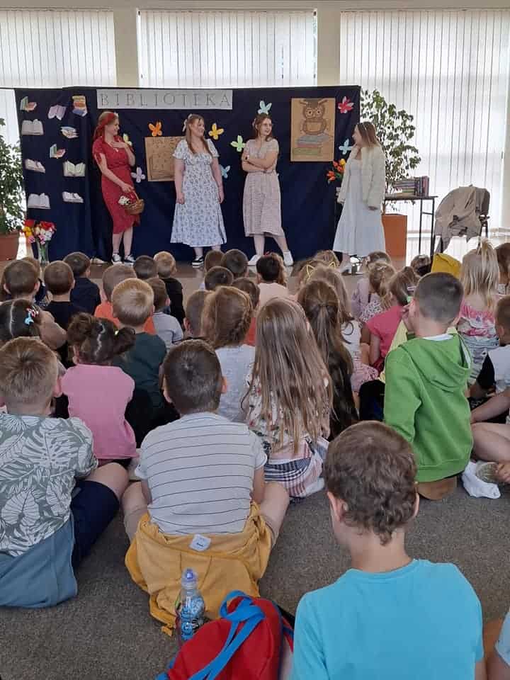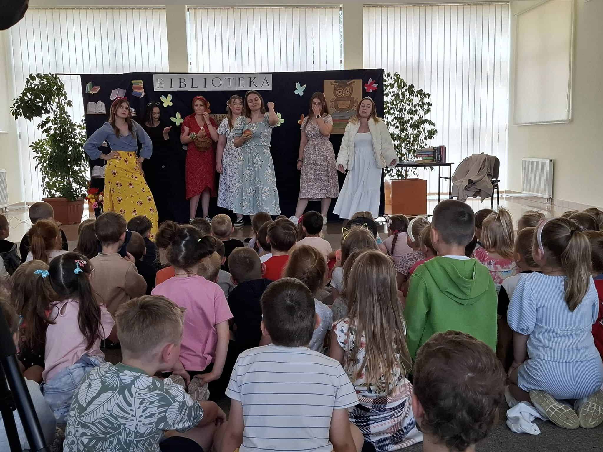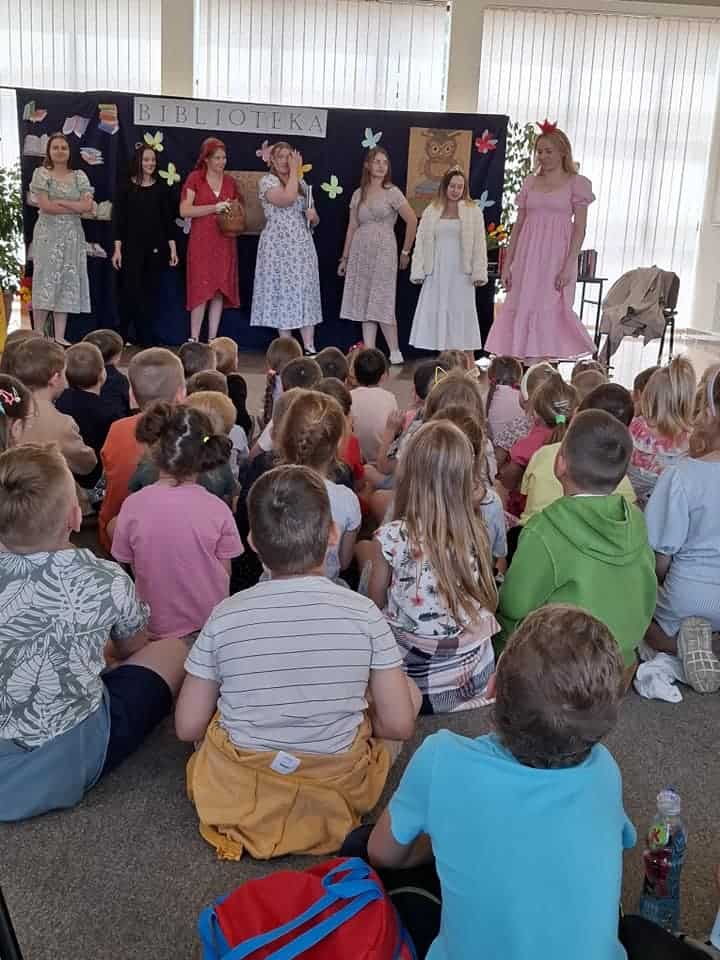 W środę, 12 czerwca, starszaki z naszego przedszkola wybrały się do Biblioteki PANS w Jarosławiu, gdzie w jej głównym holu, studentki IV roku Pedagogiki Przedszkolnej i Wczesnoszkolnej zaprezentowały dzieciom wyjątkowy spektakl teatralny ,,Przygoda w bibliotece”. Była to urocza opowieść o tym, dlaczego warto czytać i co się dzieje z postaciami bajkowymi, kiedy nie czytamy.