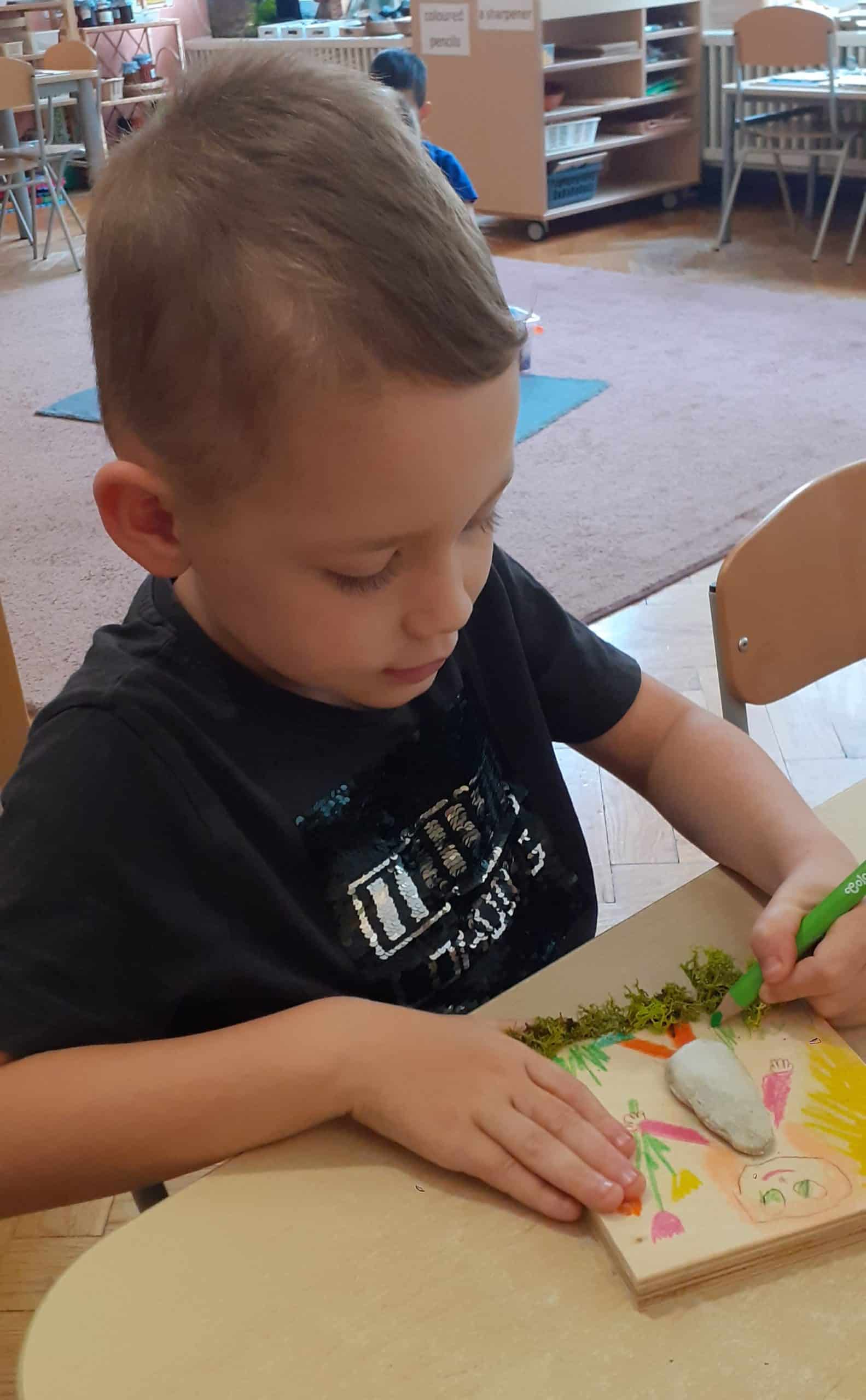 W grupie Pomarańczowej w ramach innowacji pedagogicznej systematycznie prowadzone były zróżnicowane aktywności odnoszące się do odkrywania podstaw ekonomii, historii powstania pieniądza, przedsiębiorczości i przede wszystkim oszczędzania. Dzieci realizowały różne aktywności mające na celu promowanie postaw przedsiębiorczych. Organizowano zabawy tematyczne i kąciki tematyczne -bank , poczta, sklep, wdrażano do oszczędności wody, papieru, segregowano odpady. Kształtowano nawyki racjonalnego gospodarowania pieniędzmi, ważne było rozumienie, że ilość pieniędzy jest ograniczona . W toku zabaw dzieci zdobywały wiedzę dotyczącą reklamy, promocji, poznały odpowiednie zawody, słownictwo stosowane w sytuacji kupna i sprzedaży. Same organizowały sklep, segregowały produkty do sprzedaży, wykonywały napisy globalne towarów, ustalały cenę, liczyły zgromadzone środki. Dzieci poznały polskie monety i banknoty, rozmawiały o sposobach oszczędzania i przechowywania pieniędzy. Ostatnią aktywnością było wykonanie rękodzieła dziecięcego – obrazki rysowane na drewnie, organizacja sklepu, wycena towaru oraz przeprowadzenie sprzedaży. Był to świadomy i czynny udział dzieci w planowaniu, kontrolowaniu i budowaniu określonego budżetu. Sprzedaż rękodzieła dziecięcego okazała się sukcesem, rodzice wykazali się hojnością podczas kupna obrazków. Teraz dzieci będą planować na jaki cel przeznaczą zgromadzone środki. Brawo!
