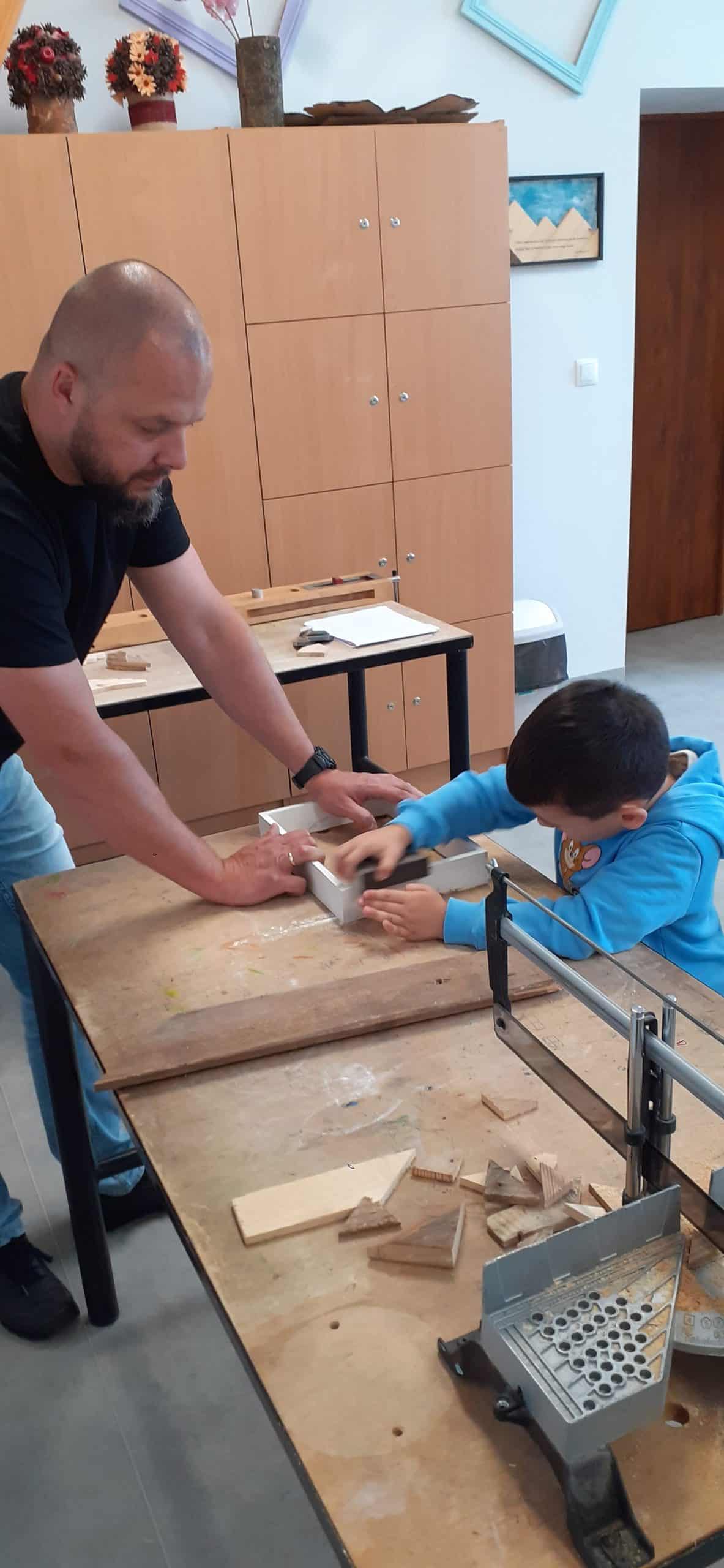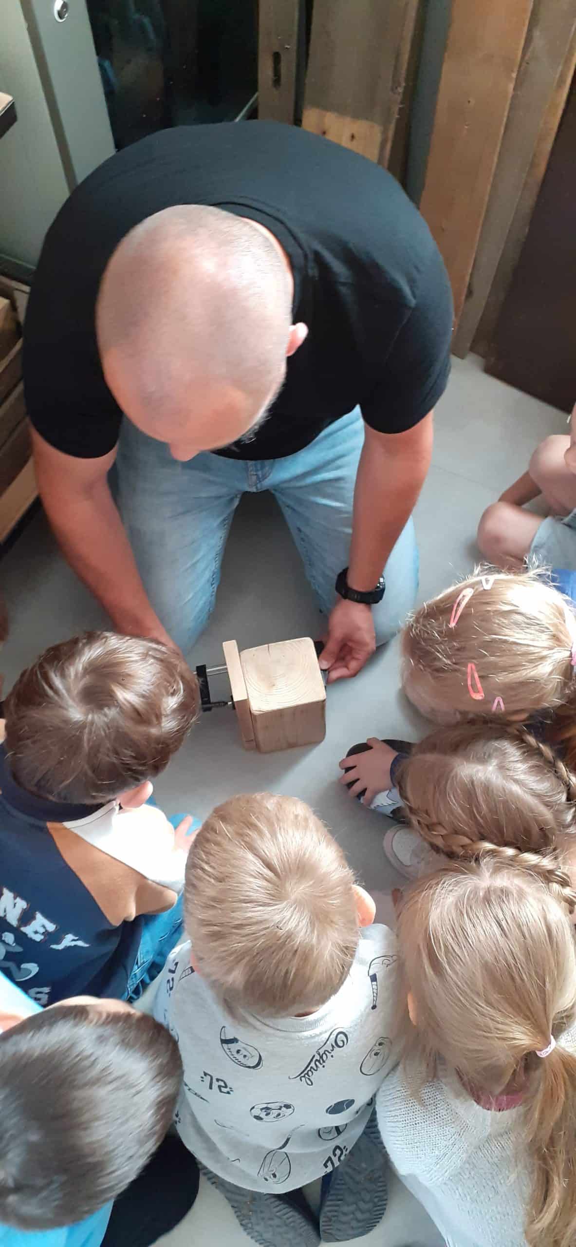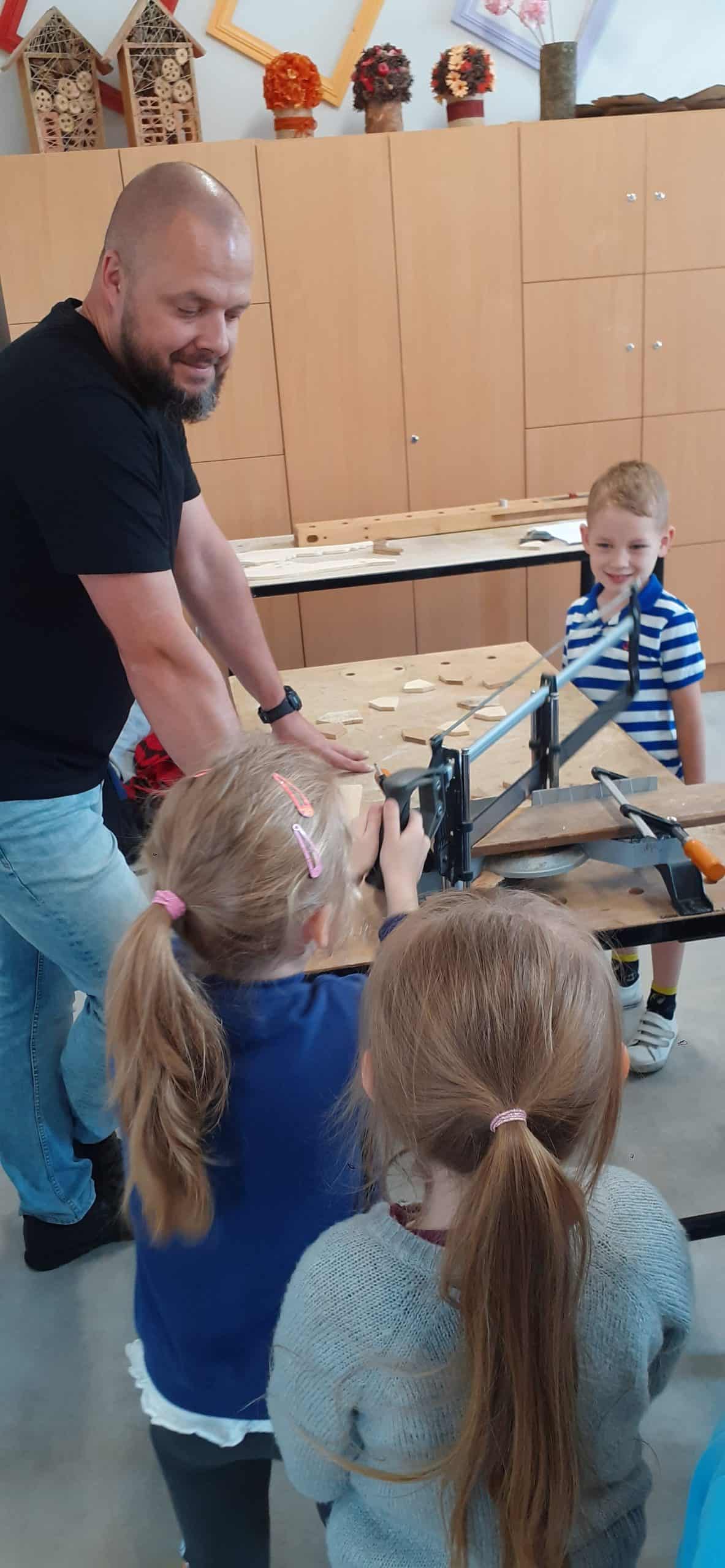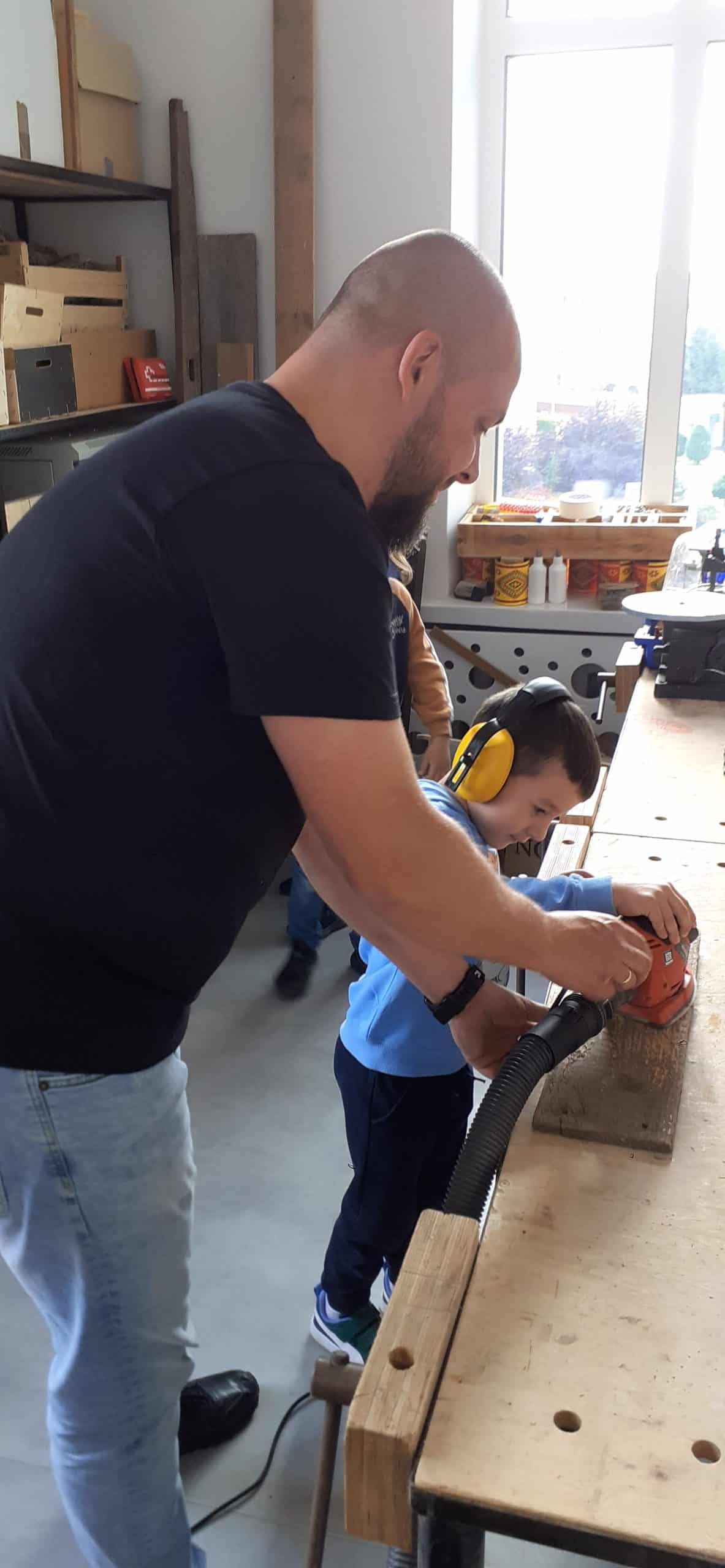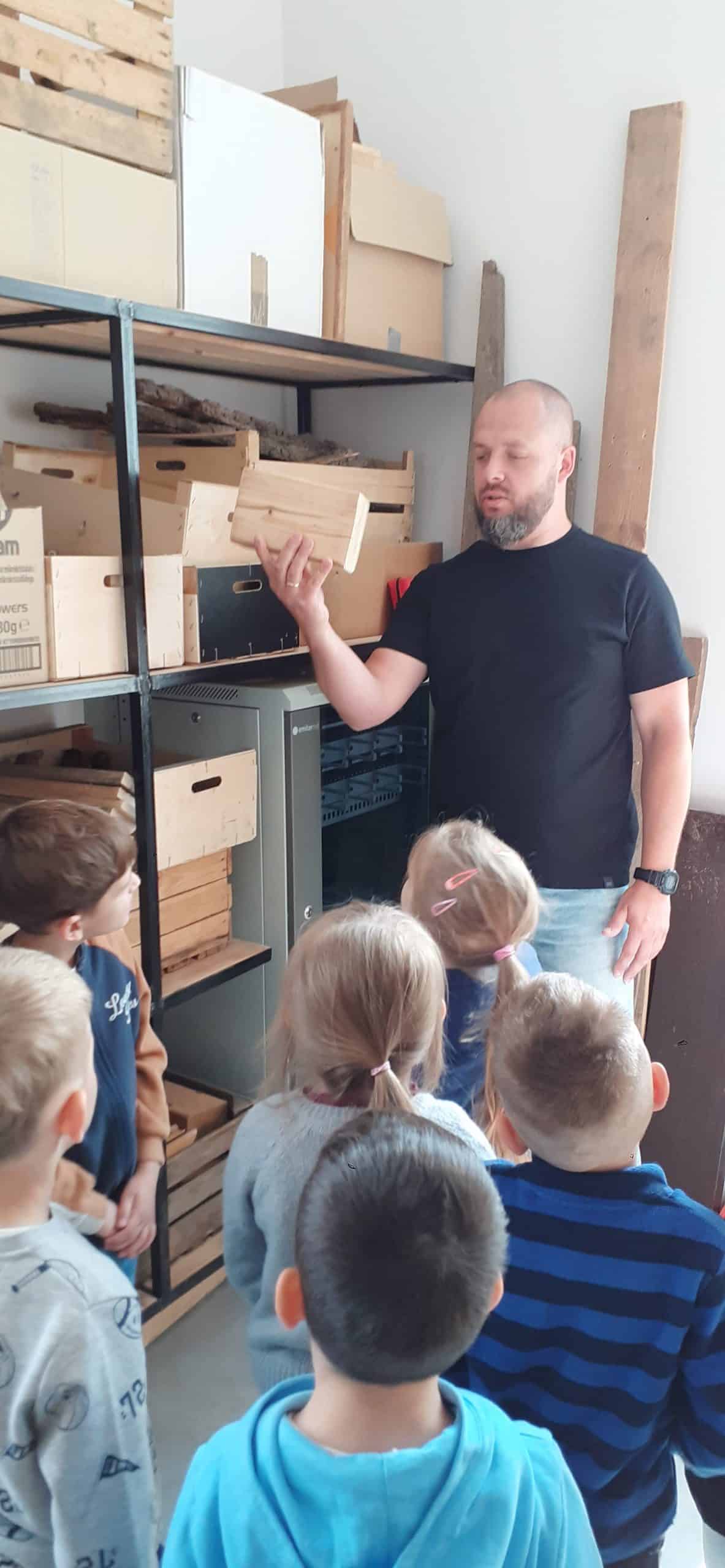 Drewutnia to pracownia stolarska znajdująca się w Ośrodku Szkolno – Wychowawczym. Dzieci miały okazję poznać właściwości drewna i sposoby jego wykorzystania, zwiedzały pracownię, poznały narzędzia stolarskie i pod czujnym okiem Pana Roberta – nauczyciela tego Ośrodka doświadczały jak pracuje się z drewnem z wykorzystaniem rożnych narzędzi. Dzieci podziwiały zawieszone na ścianach pracowni rękodzieła wykonane przez uczniów, to przykład tego, że można dać drugie życie drewnu. Serdecznie dziękujemy Panu Robertowi za możliwość aktywnych działań Przedszkolaków w Drewutni, to kolejne ciekawe doświadczenie dla dzieci.