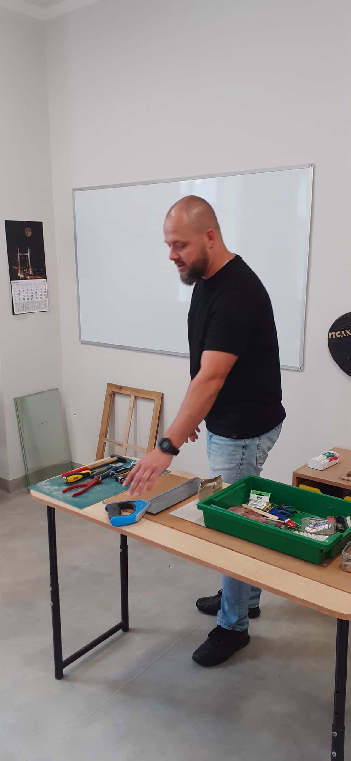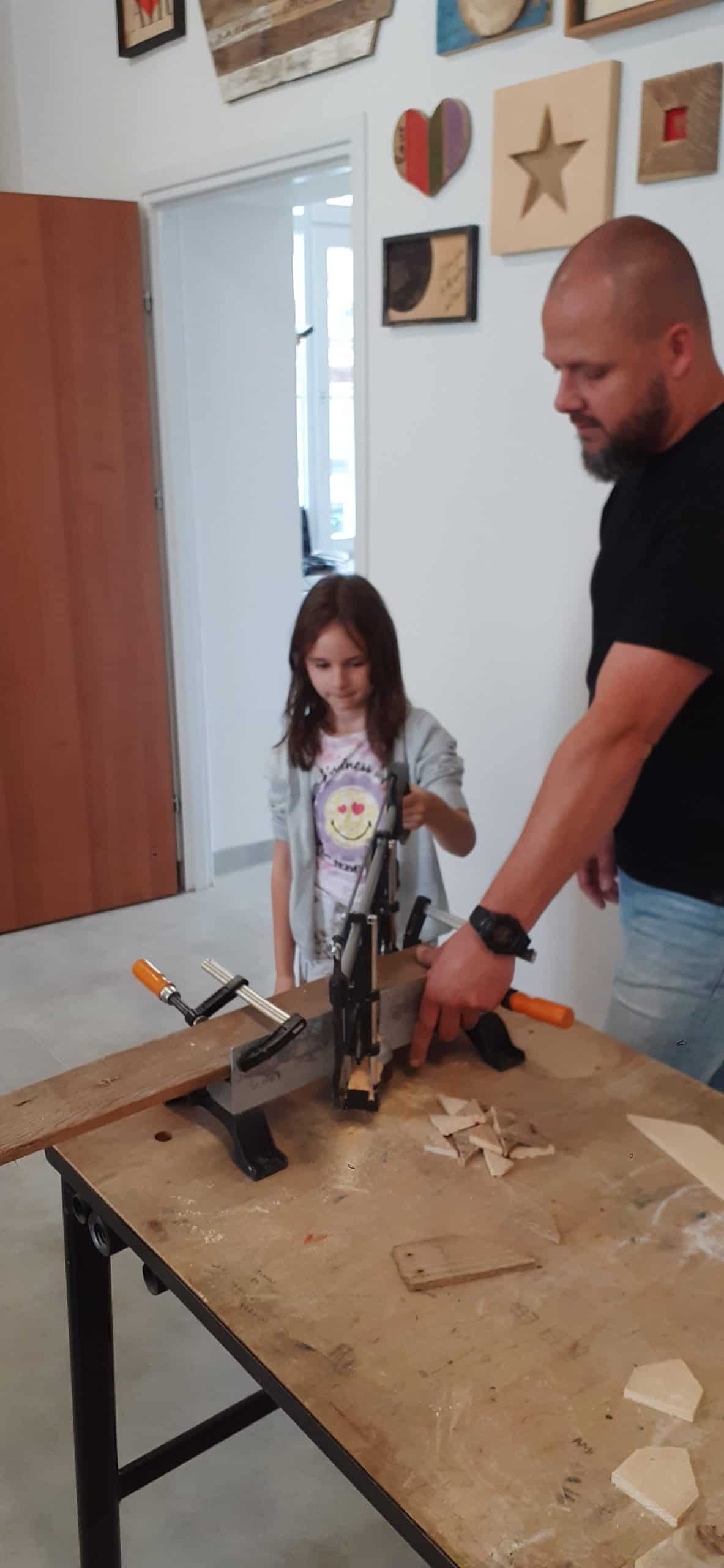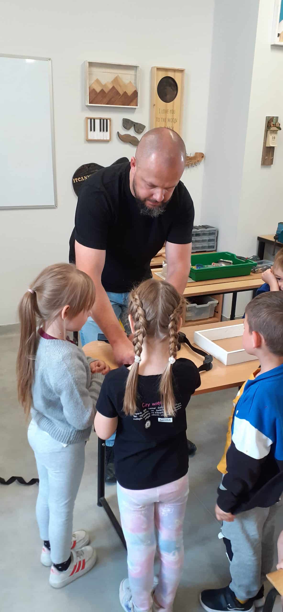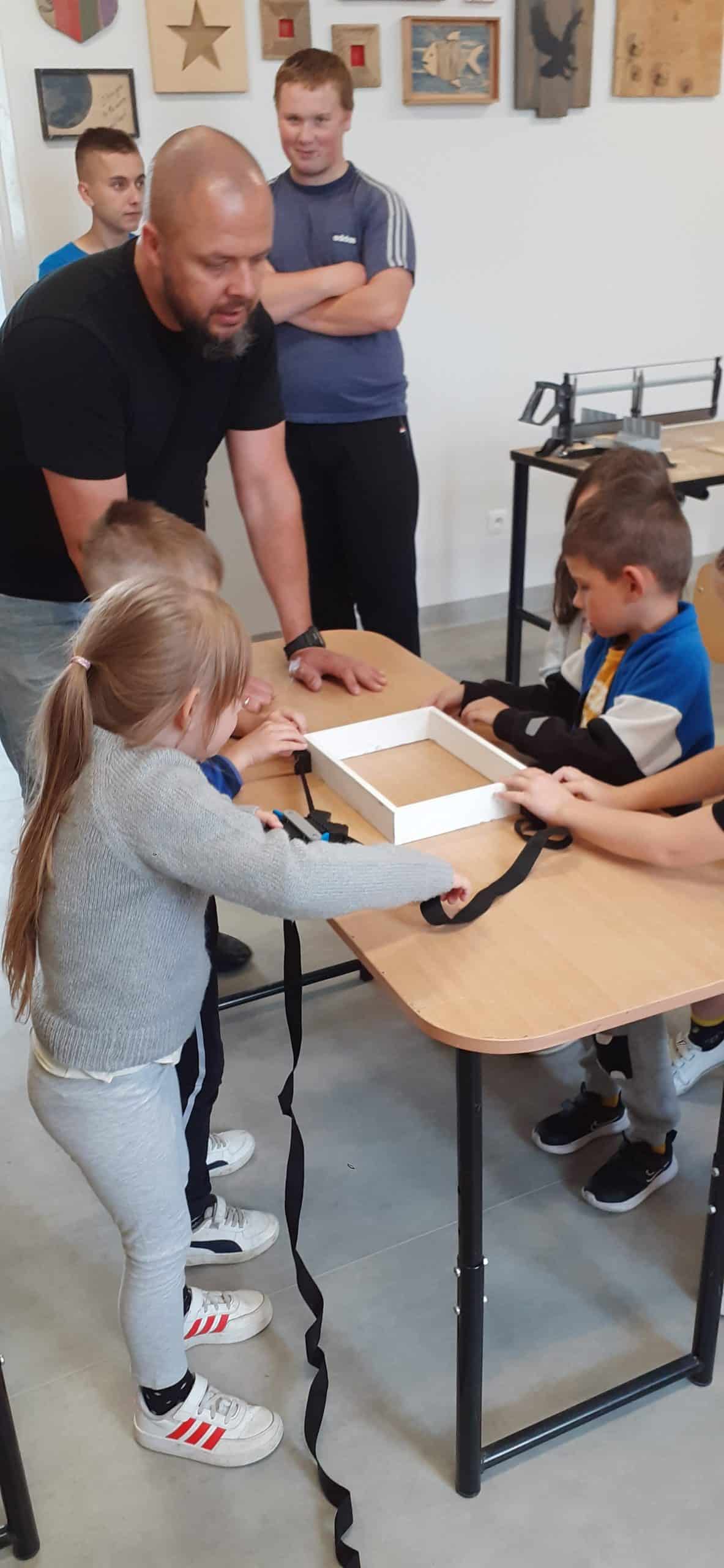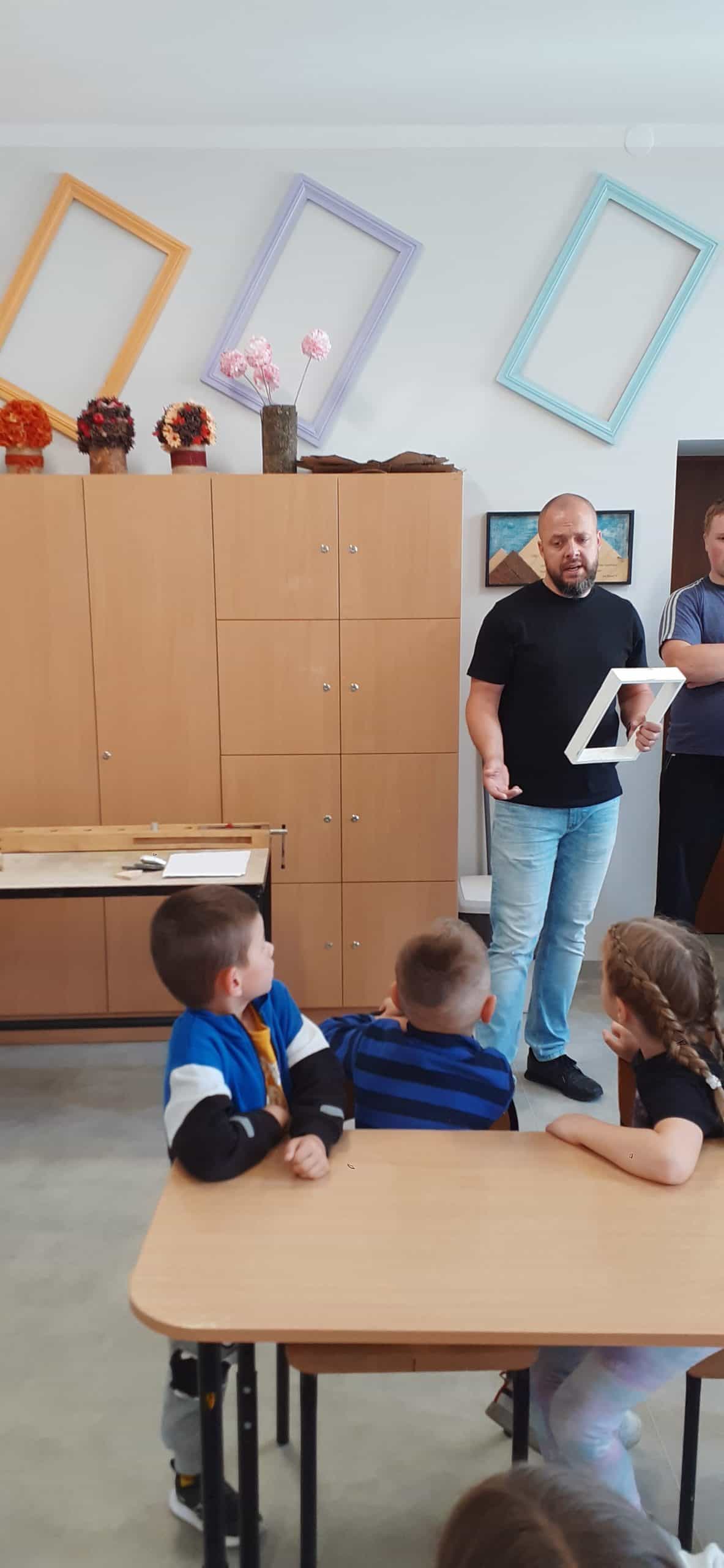 Drewutnia to pracownia stolarska znajdująca się w Ośrodku Szkolno – Wychowawczym. Dzieci miały okazję poznać właściwości drewna i sposoby jego wykorzystania, zwiedzały pracownię, poznały narzędzia stolarskie i pod czujnym okiem Pana Roberta – nauczyciela tego Ośrodka doświadczały jak pracuje się z drewnem z wykorzystaniem rożnych narzędzi. Dzieci podziwiały zawieszone na ścianach pracowni rękodzieła wykonane przez uczniów, to przykład tego, że można dać drugie życie drewnu. Serdecznie dziękujemy Panu Robertowi za możliwość aktywnych działań Przedszkolaków w Drewutni, to kolejne ciekawe doświadczenie dla dzieci.