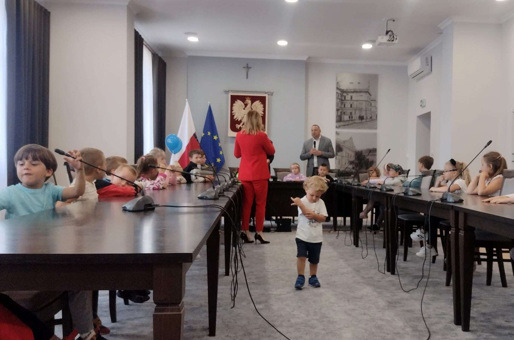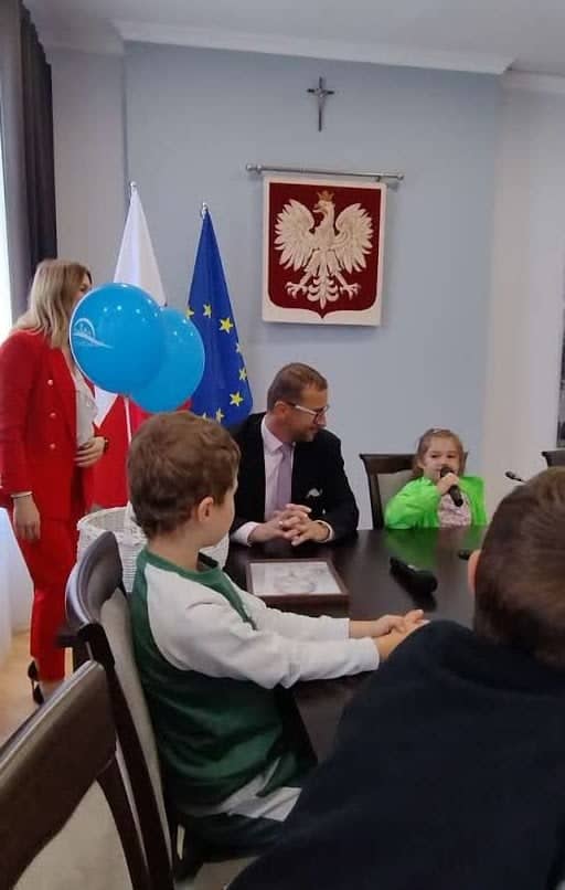 Bardzo serdecznie DZIEKUJEMY Panu Kamilowi Dziukiewiczowi – Staroście Powiatu Jarosławskiego, za zaproszenie, za serdeczne, ciepłe przyjęcie pełne usmiechów i miłych emocji. Dziękujemy za słodkości, prezenty, piękne wspomnienia. Osobne podziękowania składamy również Panu Krzysztofowi Cebulakowi – Wicestaroście Powiatu Jarsławskiego, który także znalazł dla nas czas i spędził z nami ten miły poranek 🙂 Dzieci, oprócz zwiedzania Starostwa miały możliwość spotkania się i porozmawiania z Panem Tadeuszem Chrzanem – posłem na sejm RP, który opowiadał o swojej pracy i swoich obowiązkach zawodowych w stolicy.