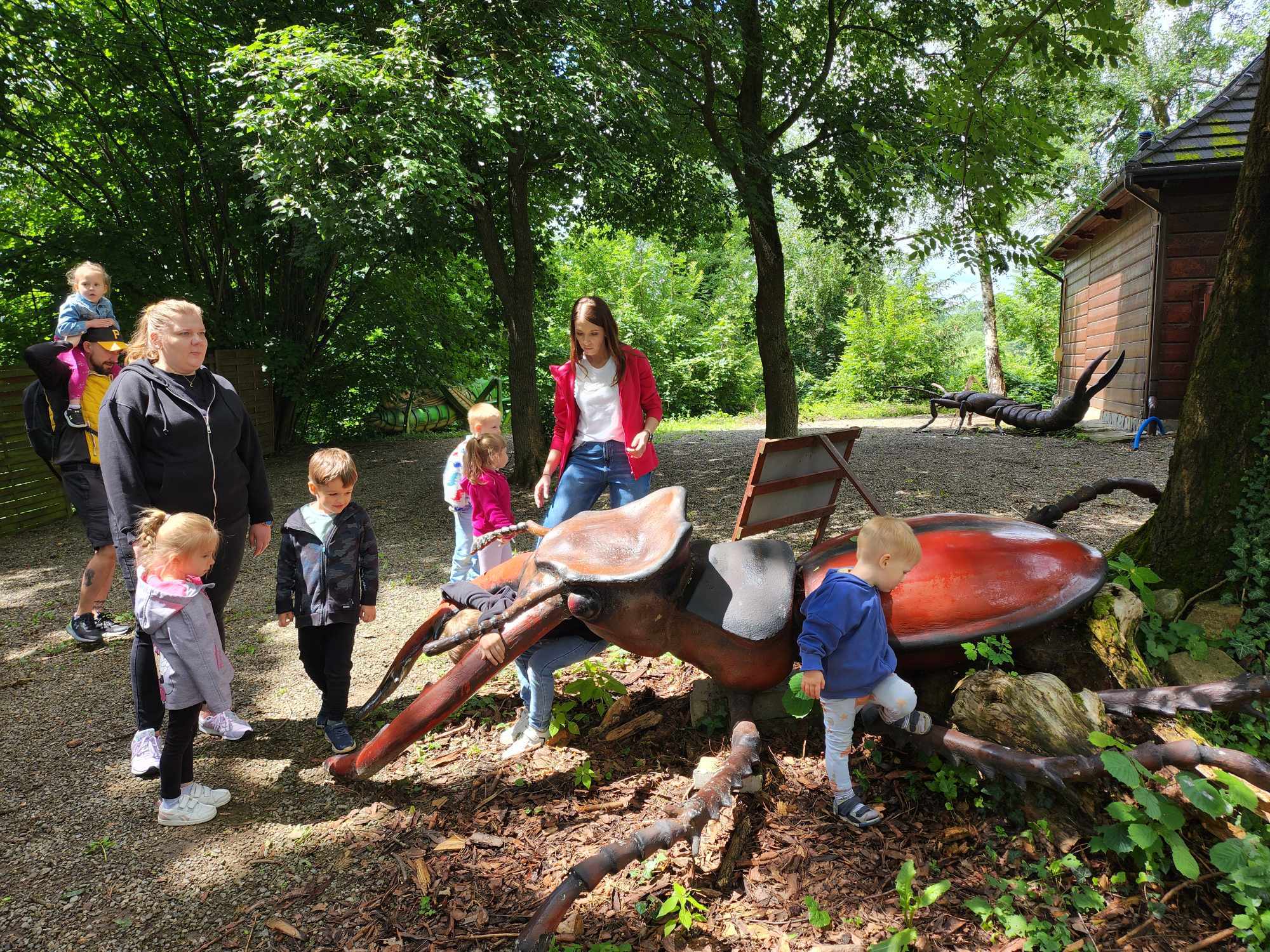 W piątek 14 czerwca przedszkolaki z grupy Czerwonej uczestniczyły w wycieczce końcoworocznej do Wapowiec. W programie wycieczki było: zwiedzanie parku gigantycznych owadów, szukanie skarbu z piratem oraz godzinna zabawa w sali zabaw Koliberek. Po wszystkich atrakcjach zjedliśmy pyszny obiad i pełni pozytywnych emocji wróciliśmy do przedszkola. To był bardzo udany dzień. Dziękujemy Rodzicom za pomoc i aktywny udział w wycieczce.