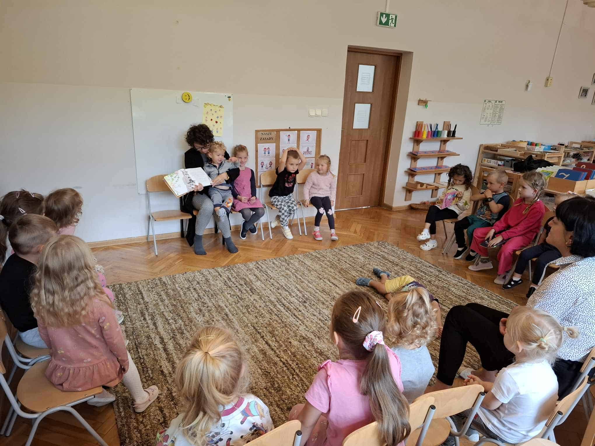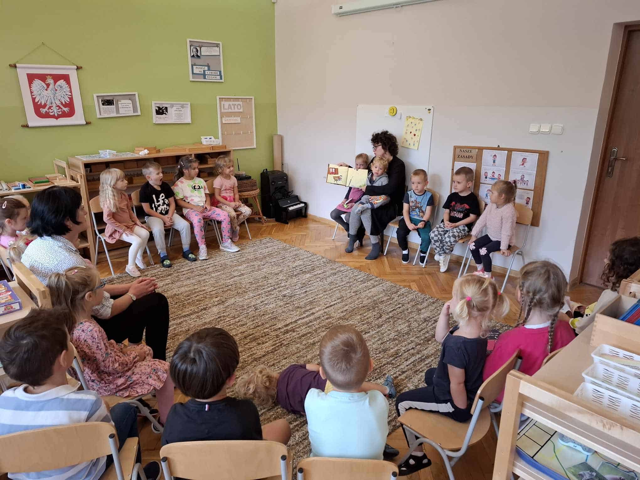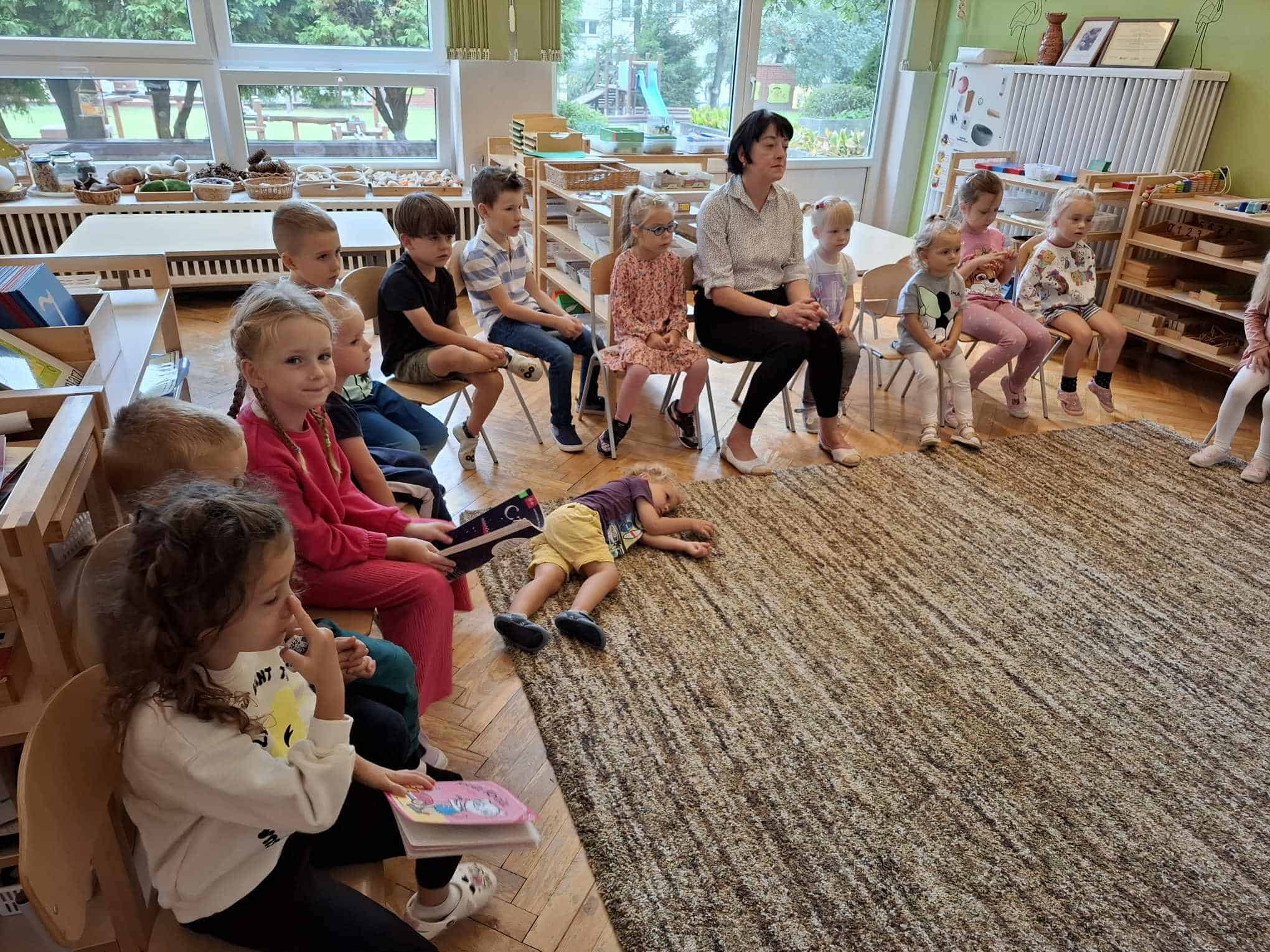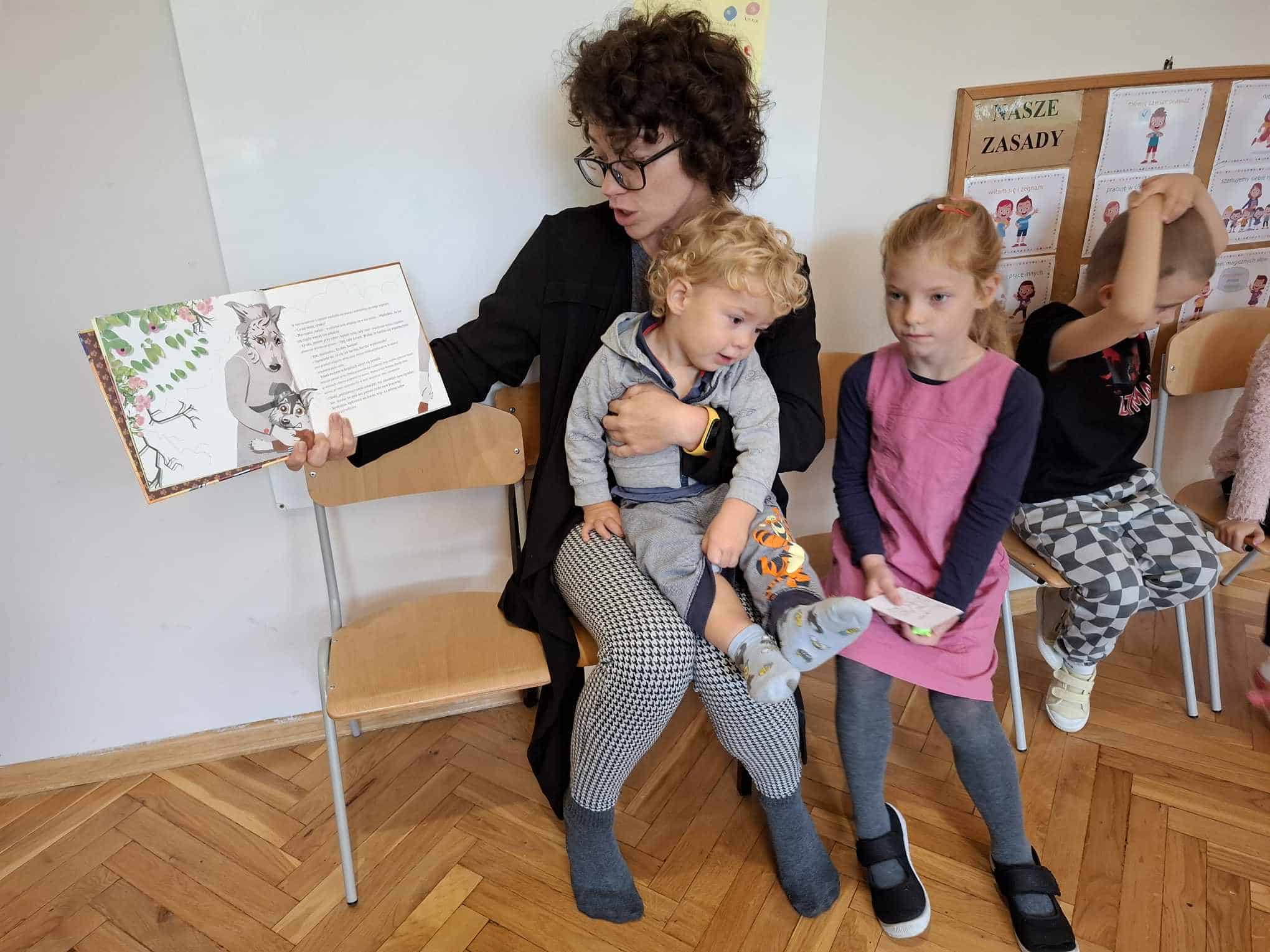 Swoim przybyciem, Pani Oktawia otworzyła nasz grupowy rytuał rodzinnego czytania 🙂 Bardzo dziękujemy Pani za poświęcony czas i mile spędzony poranek 🙂 Zachęcamy i zapraszamy wszystkich Państwa oraz innych członków rodzin, do włączania się w nasze grupowe działania, w tym również czytanie dzieciom, które ma istotny wpływ na rozwój ich umysłu i osobowości, dlatego czytajmy naszym pociechom codziennie, poświęćmy te kilkanaście minut na spotkanie się z dzieckiem przy bajce, baśni lub innym dziecięcym opowiadaniu; nie pozwólmy, aby świat literackiej fantazji i marzeń został zdominowany przez kulturę telewizyjną czy internetową. Czytanie dzieciom ma zbawienny wpływ na ich psychikę, stymuluje rozwój poznawczy, rozwija koncentracje i mowę. Zatem kochani rodzice czytajmy dzieciom codziennie!