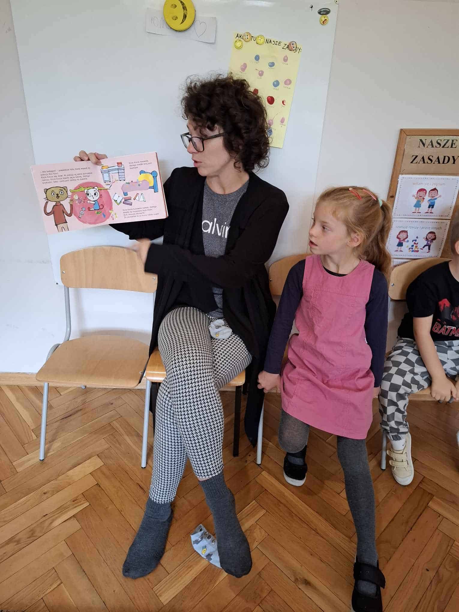 W piątkowy poranek, mieliśmy ogromną przyjemność gościć Panią Oktawię i Aleksa- mamusię i braciszka naszej Oliwci, która uatrakcyjniła nam czas głośnym czytaniem bardzo wartościowych i ciekawych książeczek z kanonu literatury dziecięcej. Co więcej, wśród czytanych historii znalazła się także książeczka w języku angielskim, którą dzieci słuchały równie uważnie. Na zakończenie zamieniły się w literackich detektywów, którzy odgadywali zagadki związane z czytanym tekstem…..było mnóstwo radości 🙂