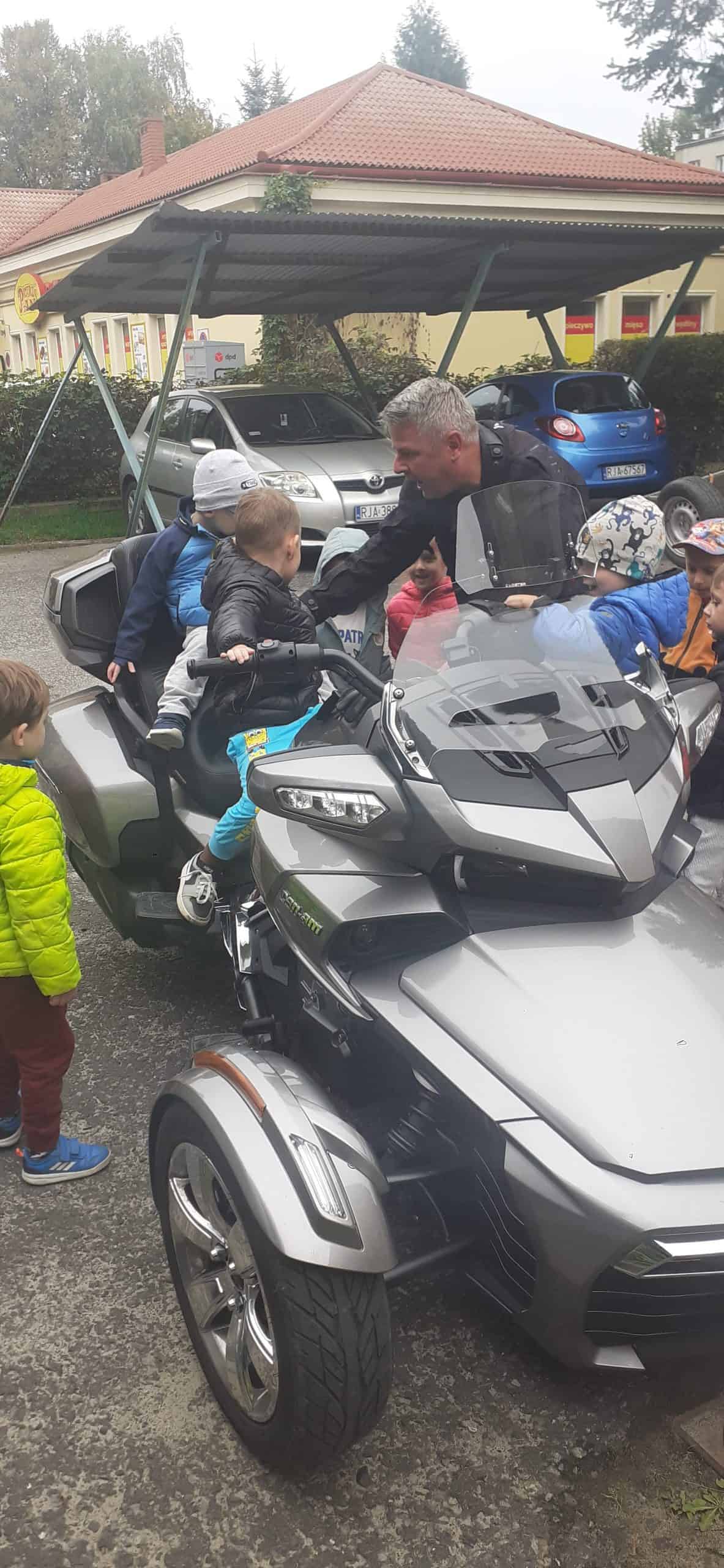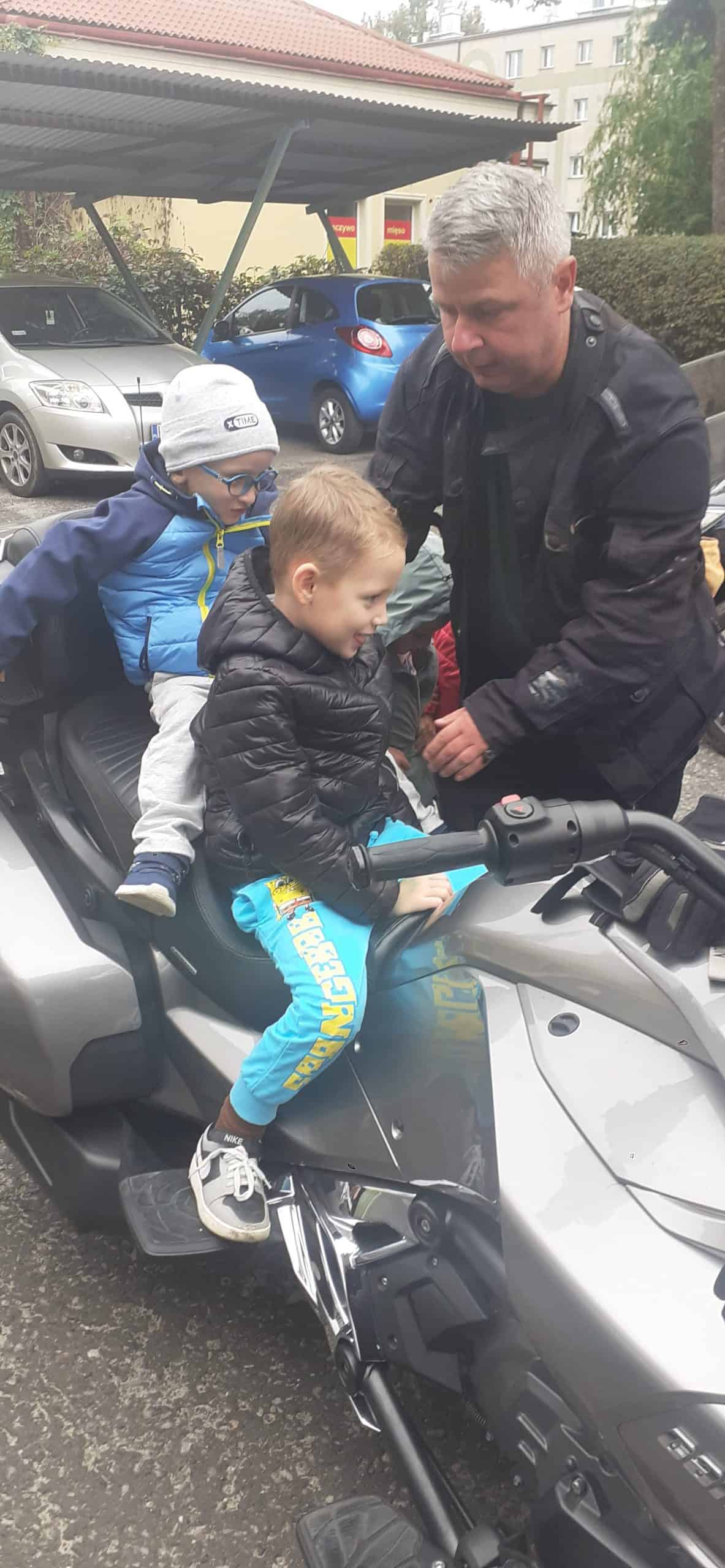 W grupie Pomarańczowej chłopcy liczebnie stanowią zdecydowaną większość. Wychodząc naprzeciw ich zainteresowaniom motoryzacją zorganizowano zajęcia hobbystyczne prowadzone przez pana Wojciecha – tatę Adasia. To było wyjątkowe spotkanie zorganizowane w ramach celebrowania Dnia Chłopca. Obok budynku przedszkolnego Pan Wojciech zgromadził pokaźną kolekcję różnych modeli motorów począwszy od tych starszych modeli, a skończywszy na współczesnym turystycznym motorze, na którym podróżuje razem z mamą Adasia. Dzieci mogły obejrzeć modele motorów, poznać ich historię oraz liczne ciekawostki związane z podróżowaniem. Nie zabrakło też ciekawych elementów związanych z bezpieczeństwem podczas użytkowania motorów. Dzieci były zachwycone, mogły wsiąść na motor i zrobić sobie pamiątkowe zdjęcia.