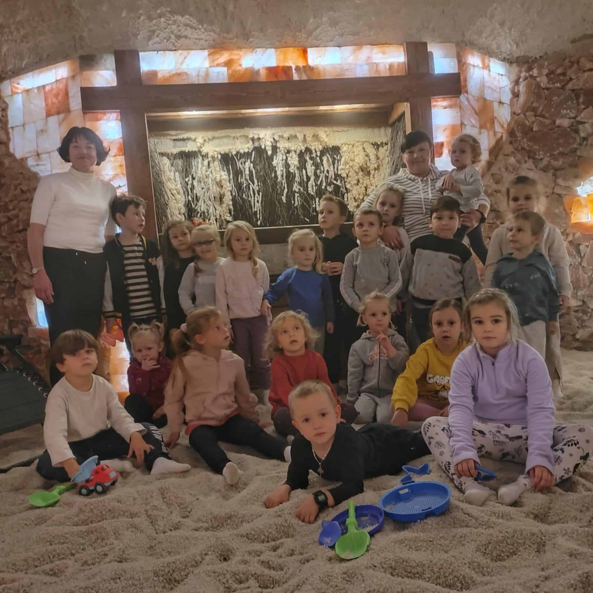 15 października, przedszkolaki z Grupy Zielonej wybrały się na wycieczkę do Groty Solnej znajdującej się w Pruchniku. Był to dla nas pełen zdrowotnych i miłych wrażeń dzień 🙂 Poznanie właściwości leczniczych soli poprzez wdychanie uwalnianego przez ścianę solnego powietrza bogatego w mnóstwo mikroelementów, a to wszystko w atmosferze zabawy, cudownej muzyki i gościnności 🙂
