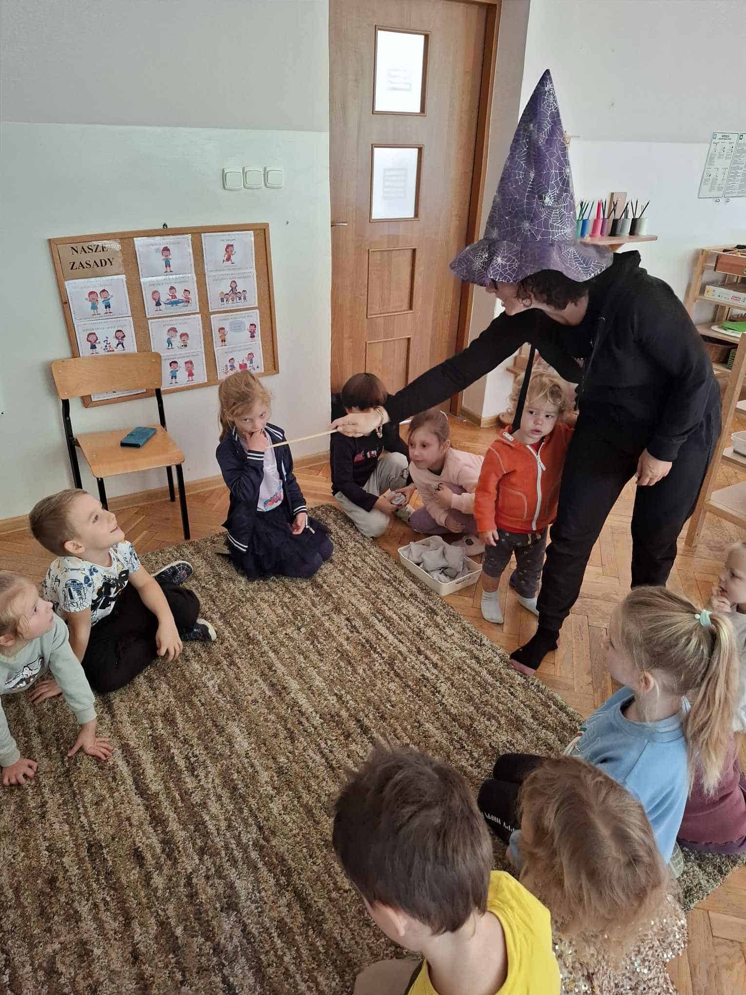 Przedszkolaki poznały wiele ciekawych informacji na temat koni, mogły zobaczyć na krótkich filmikach różne dyscypliny jeździeckie oraz przymierzyć toczek, czyli kask jeździecki. To była bardzo ciekawa lekcja. Dziękujemy serdecznie Pani Justynie i Pani Magdalenie za poświęcony czas.
