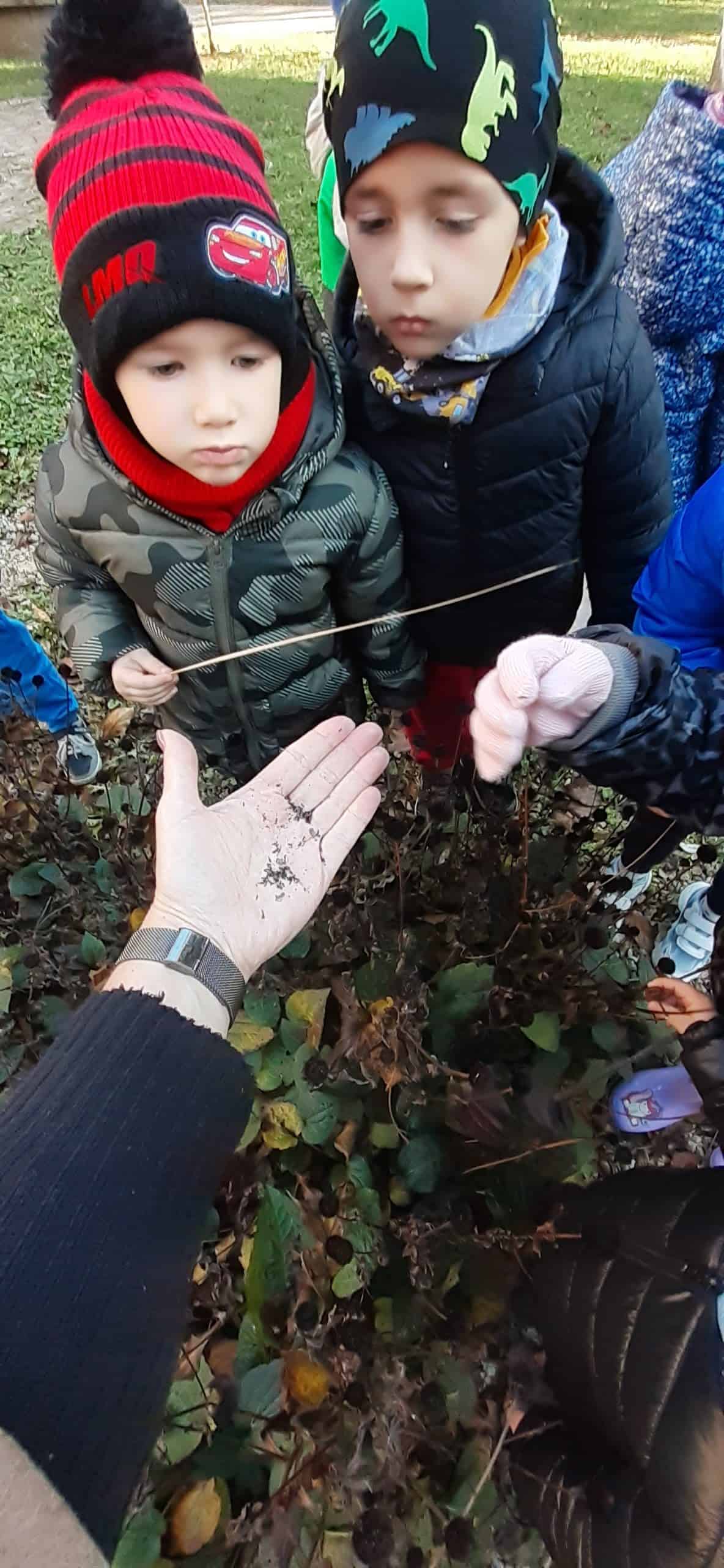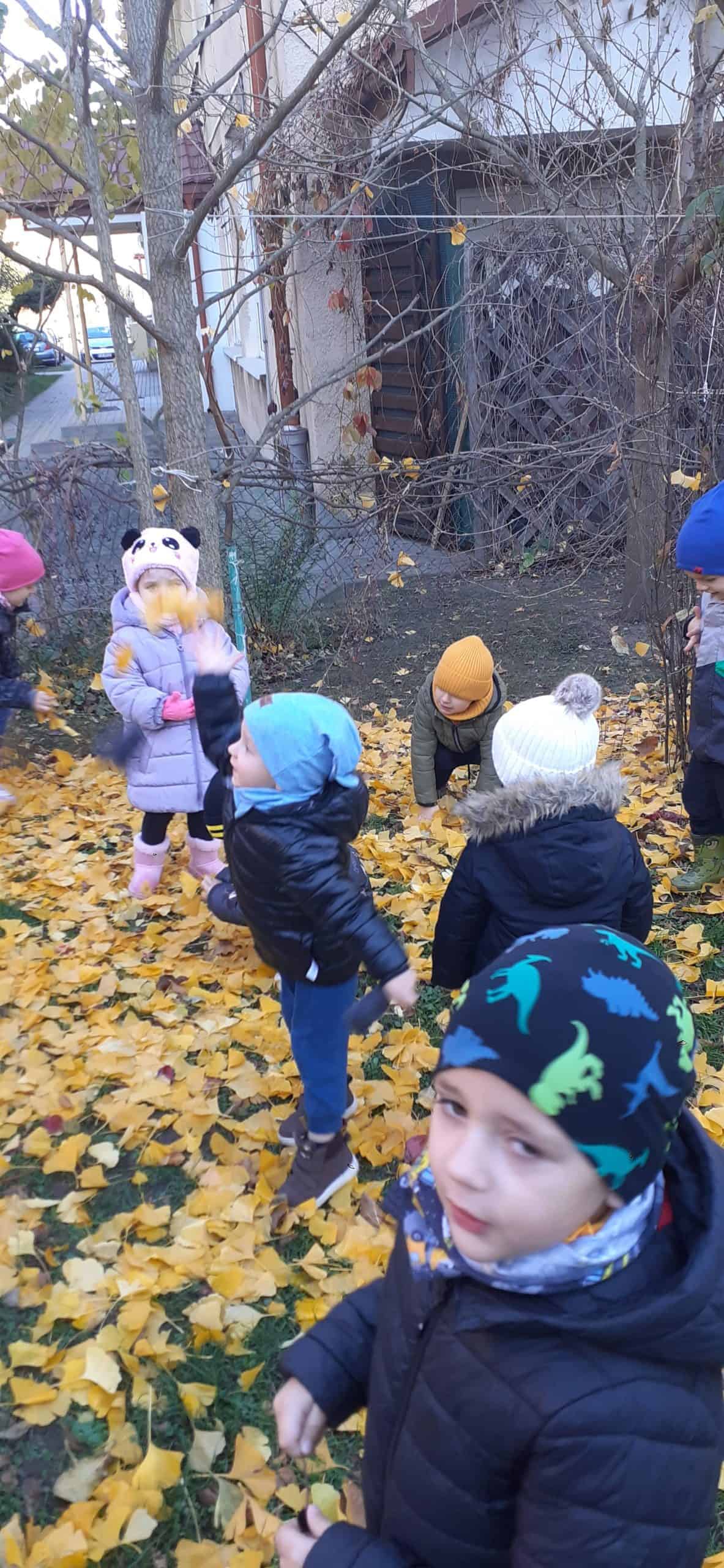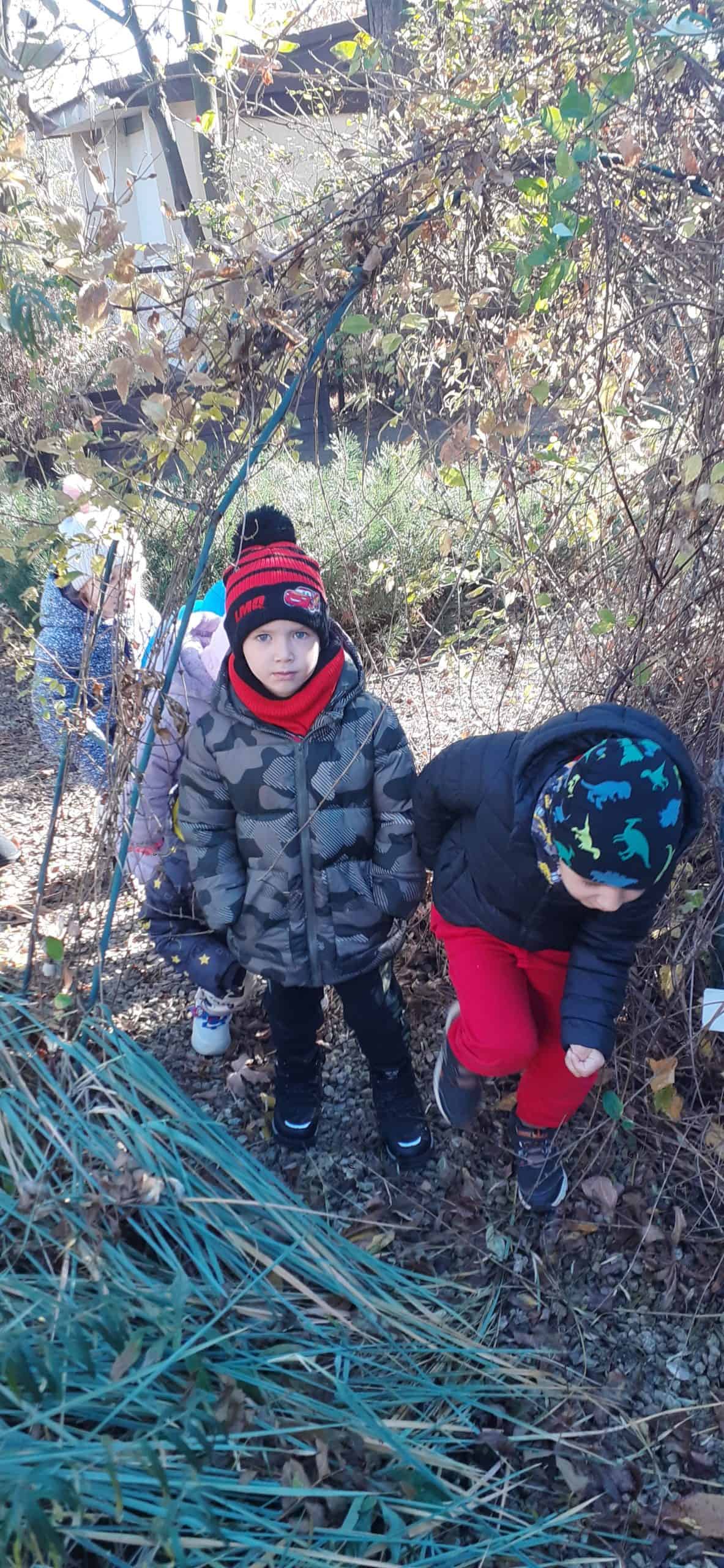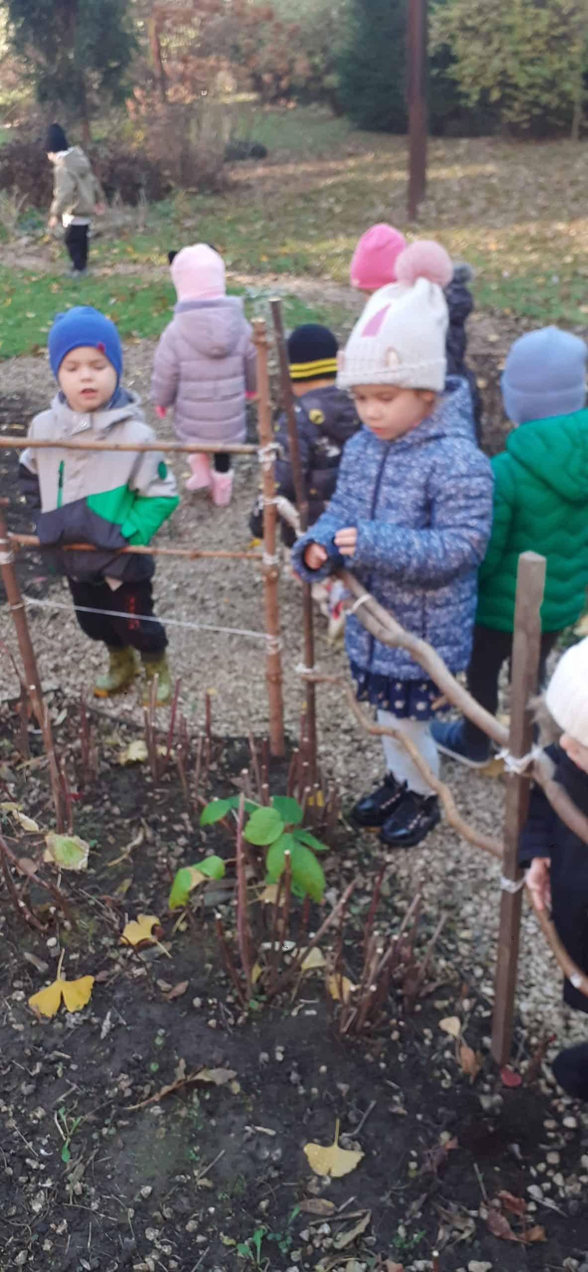 Jesienne porządki w ogrodzie to istotny element  pielęgnacji roślin. Od jakości tej pielęgnacji zależy w jakim stanie  rośliny przetrwają zimę. Dzieci dokonując obserwacji przyrodniczych roślin w okresie jesieni dowiedziały się o podstawowych czynnościach przygotowujących rośliny do  zimy: m.in przycinanie gałęzi, zabezpieczanie bylin przed mrozem  oraz grabienie liści.  Do tej ostatniej czynności dzieci przystąpiły z entuzjazmem. Małe grabki i miotły poszły w ruch, szybko tworzyły się małe skupiska grabionych liści. Dzieci doskonale wiedziały,  że taka warstwa liści to też doskonałe schronienie dla zwierząt  w okresie zimy np  dla jeży. Grabienie liści okazało się bardzo przyjemnych zadaniem dla dzieci.