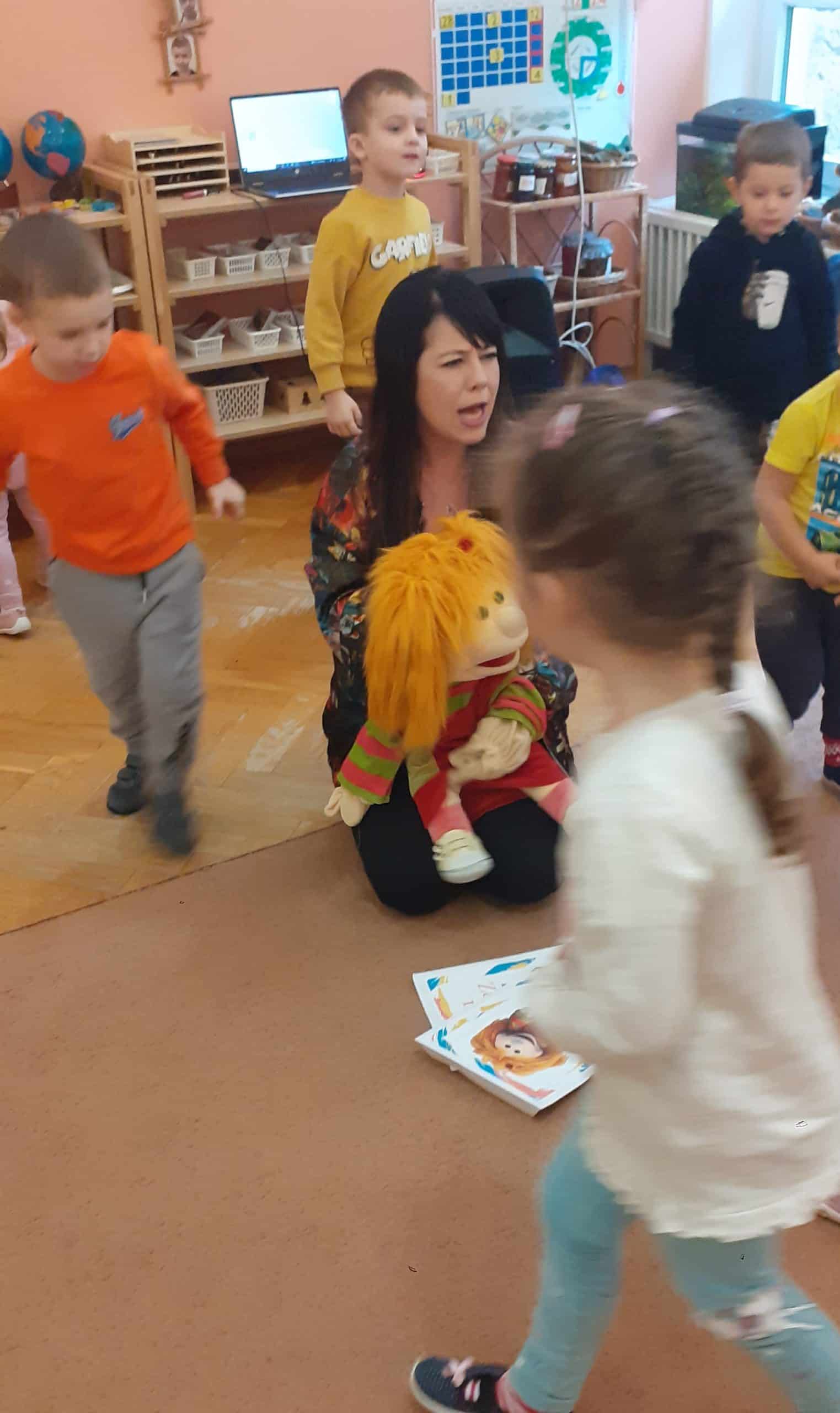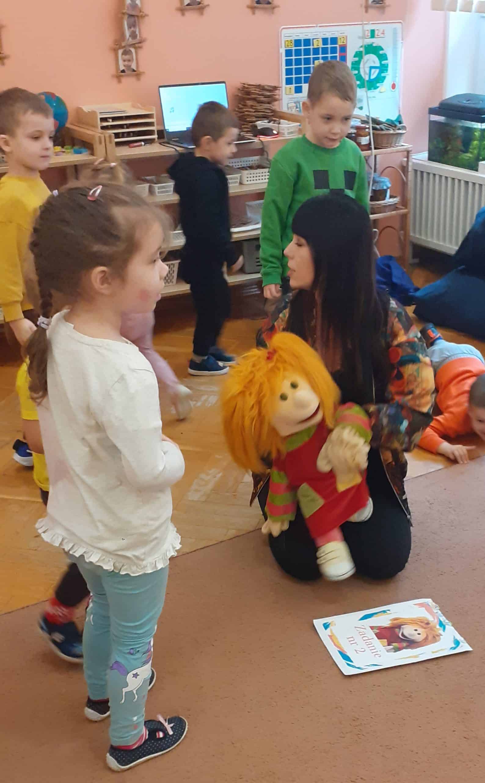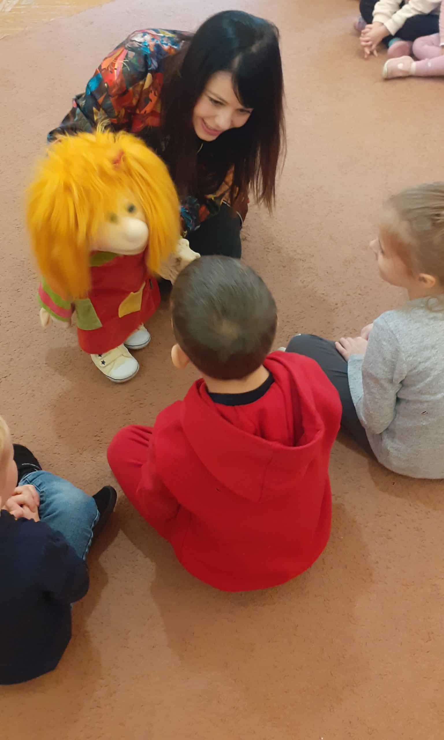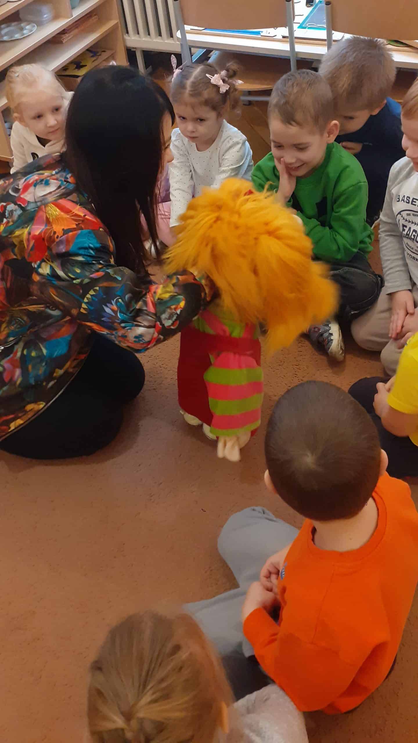 W grupie Pomarańczowej odbyły się warsztaty z lalkami teatralnymi. Warsztaty poprowadziła pani Katarzyny Król z Państwowej Akademii Nauk Stosowanych w Jarosławiu. Pacynka Matylda jak i wiele innych pacynek zachwyciły dzieci. Warsztaty wypełnione były pozytywnymi emocjami, świetnymi zabawami i muzycznymi aktywnościami. Dzieci bardzo chętnie podejmowały aktywności z pacynkami w roli głównej.