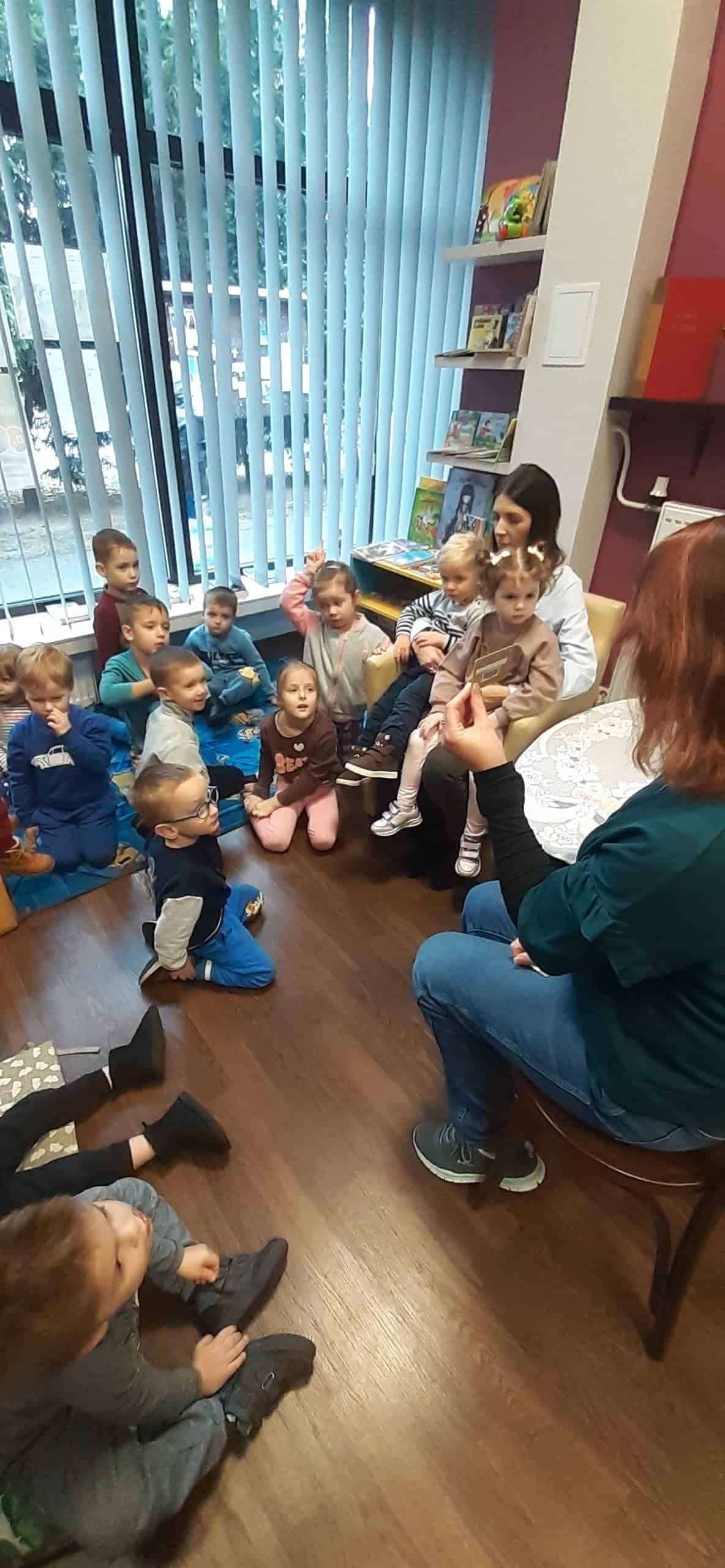 Dzieci z grupy Pomarańczowej udały się z wizytą do pobliskiej biblioteki w ramach realizacji zadań związanych z Narodowym Programem Rozwoju Czytelnictwa. Tematem spotkania była „Jesień w literaturze dziecięcej” , a inspiracją do rozmów z dziećmi był wiersz Wandy Chotomskiej „Pan Listopad”. Dzieci ponadto zwiedziły bibliotekę, poznały zasady wypożyczania książek i korzystania z czytelni. Pani Anecie dziękujemy za ciekawą prezentację.