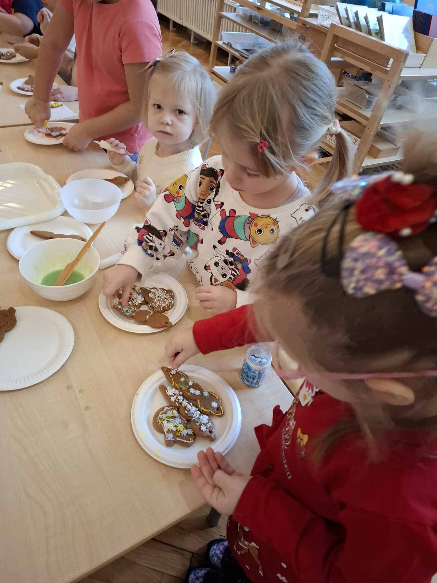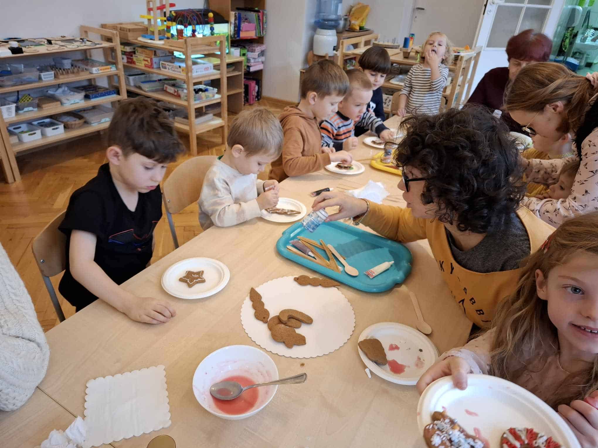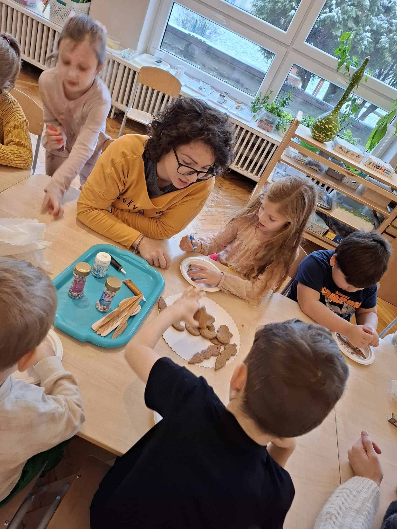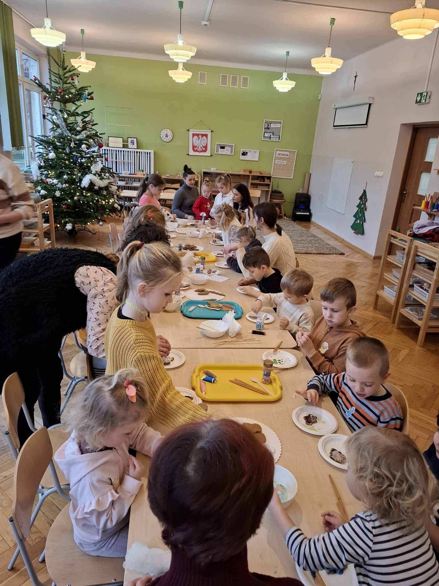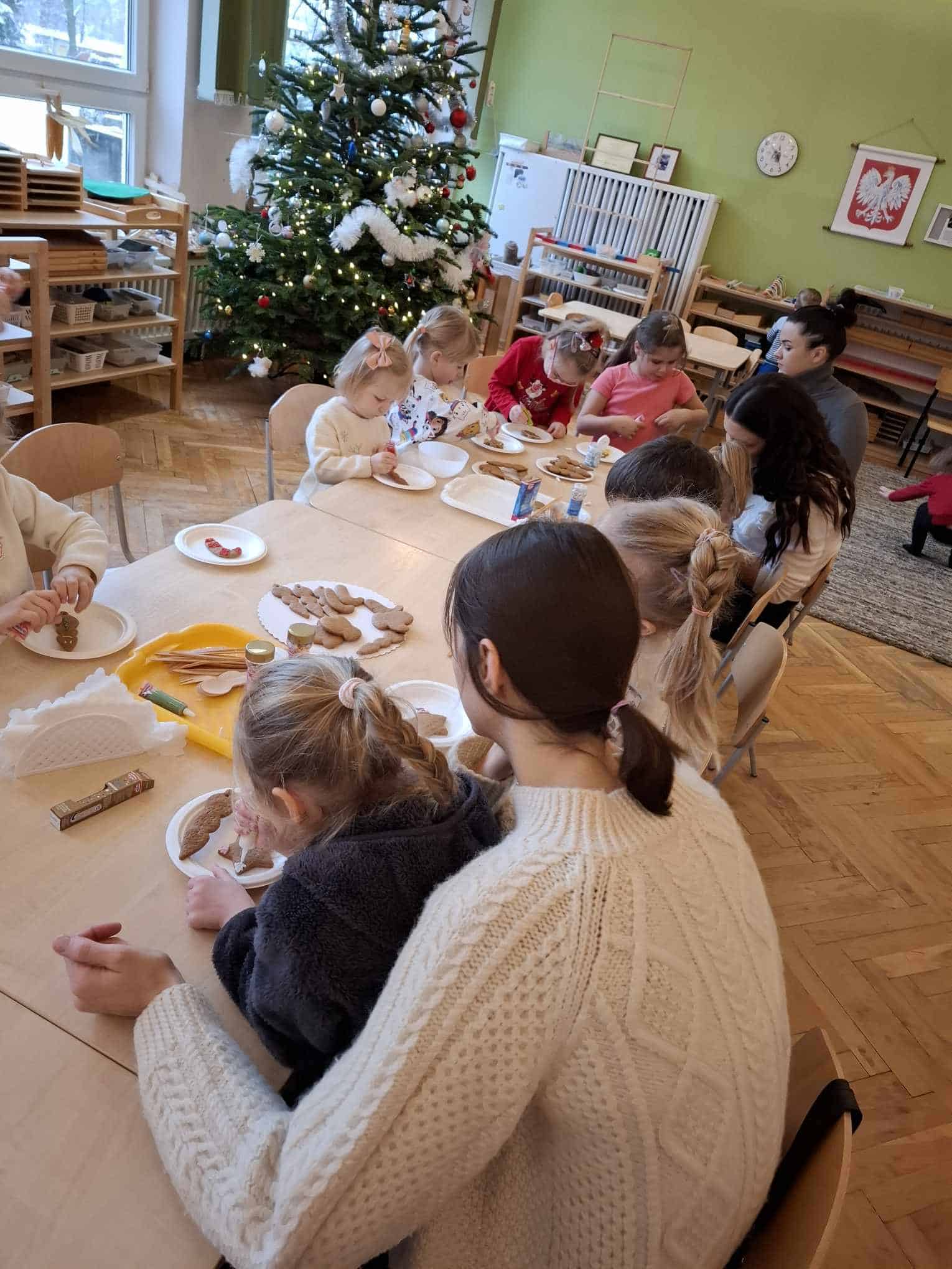 W środę, 11 grudnia, odbyły się w naszej grupie warsztaty świąteczne z udziałem członków rodzin naszych Zieloniuszków. Wszyscy wspólnie, przy dźwiękach kolęd, zdobiliśmy pachnące, różnokształtne pierniczki – symbol świąt bożonarodzeniowych.