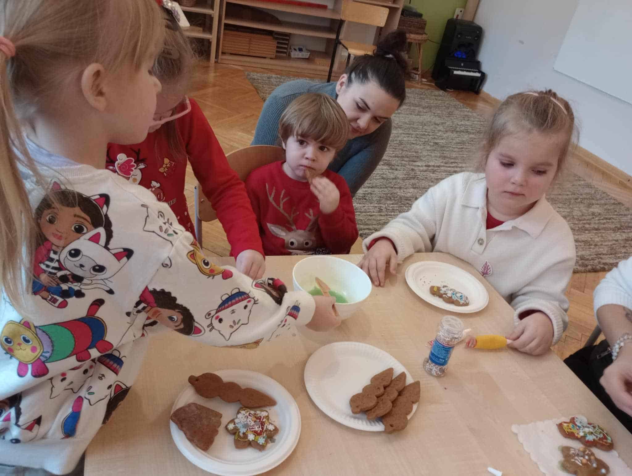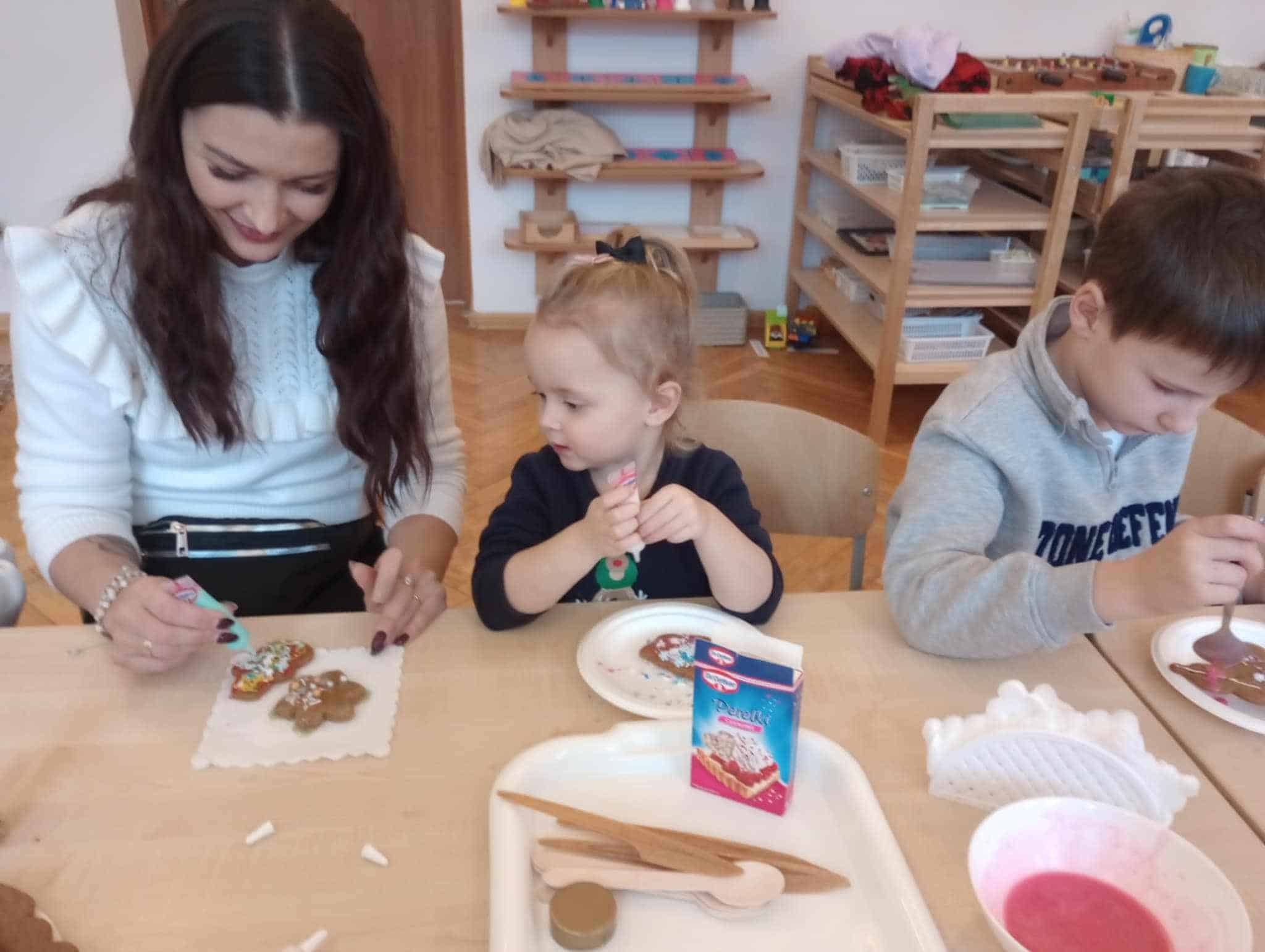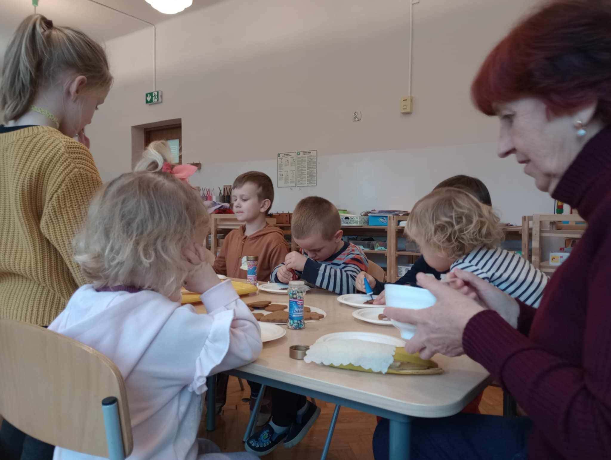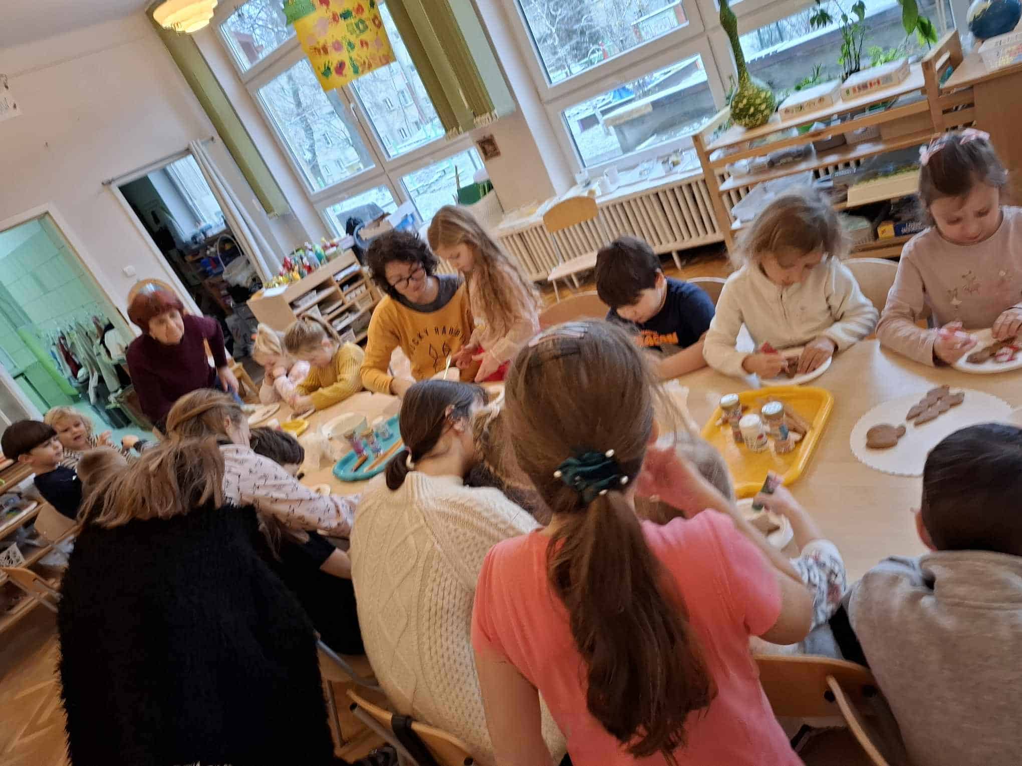 W środę, 11 grudnia, odbyły się w naszej grupie warsztaty świąteczne z udziałem członków rodzin naszych Zieloniuszków. Wszyscy wspólnie, przy dźwiękach kolęd, zdobiliśmy pachnące, różnokształtne pierniczki – symbol świąt bożonarodzeniowych.
