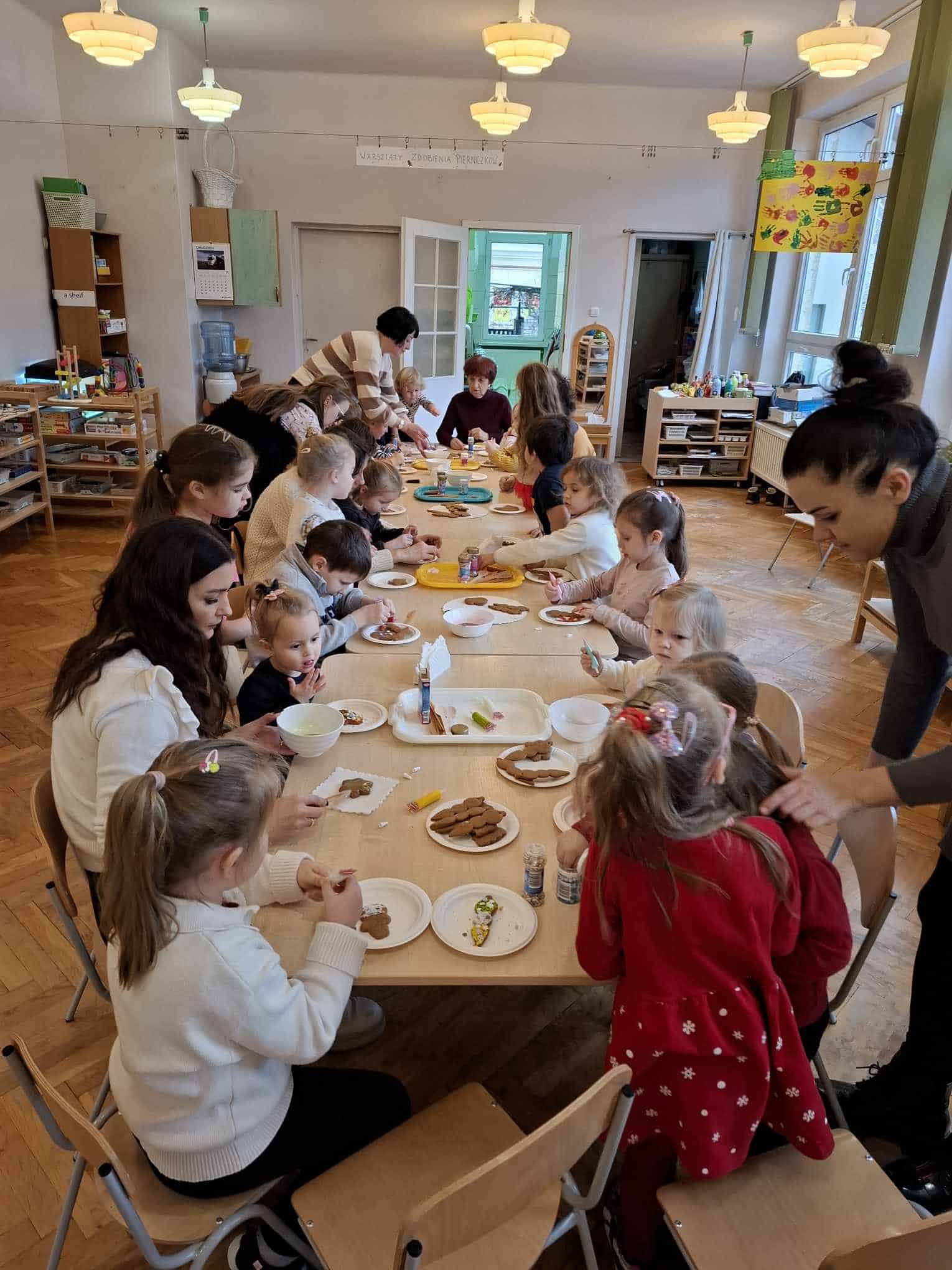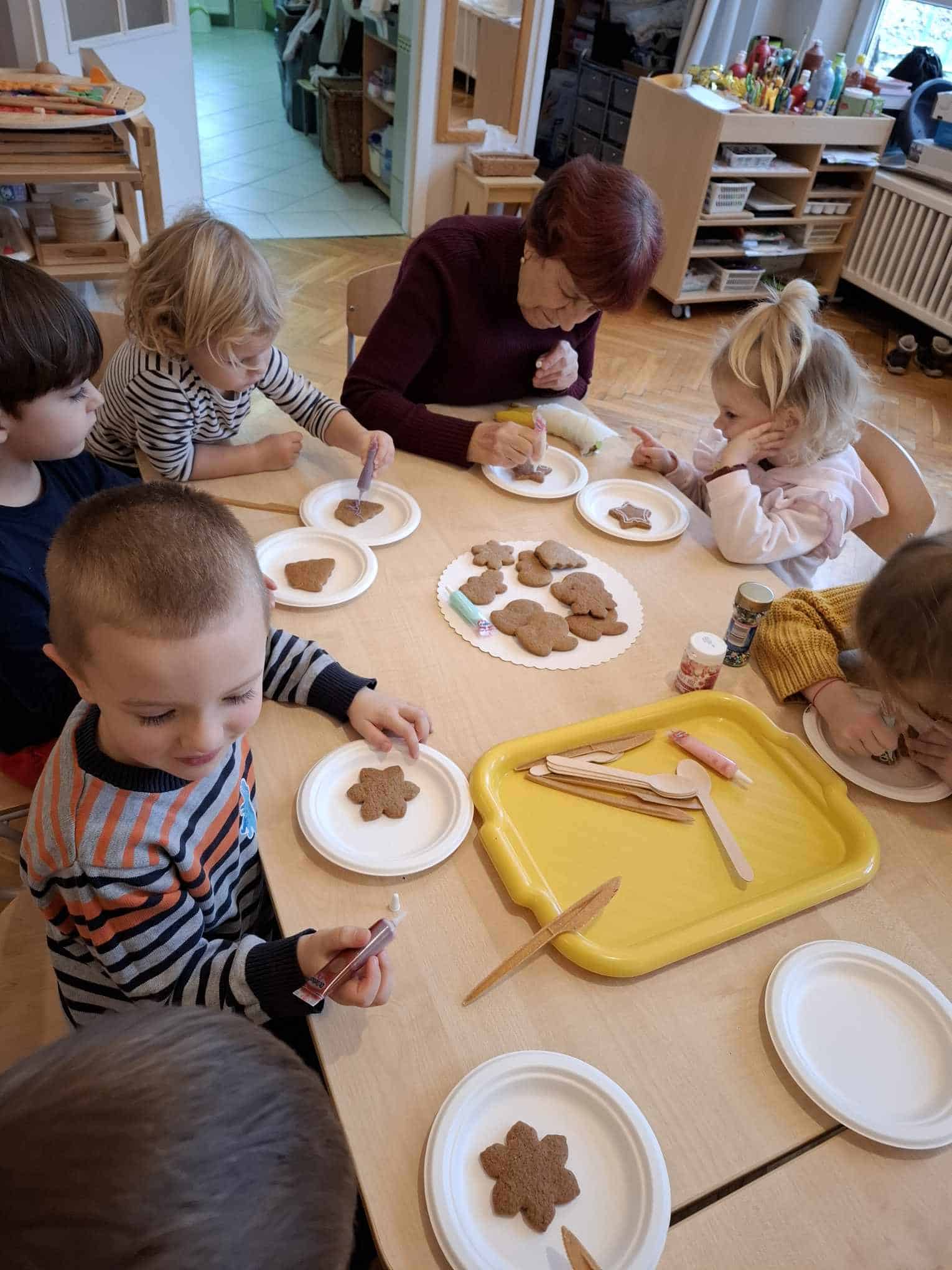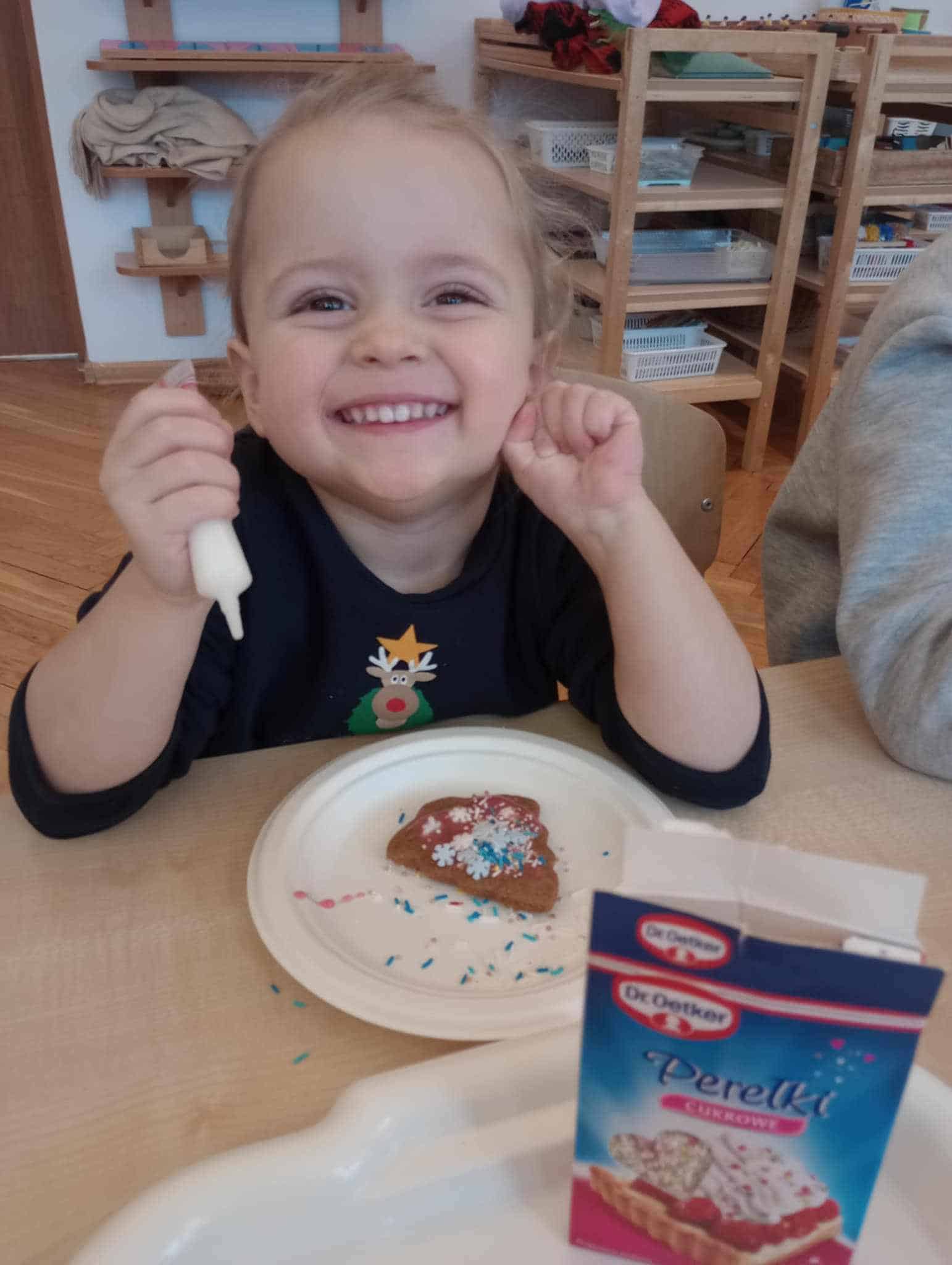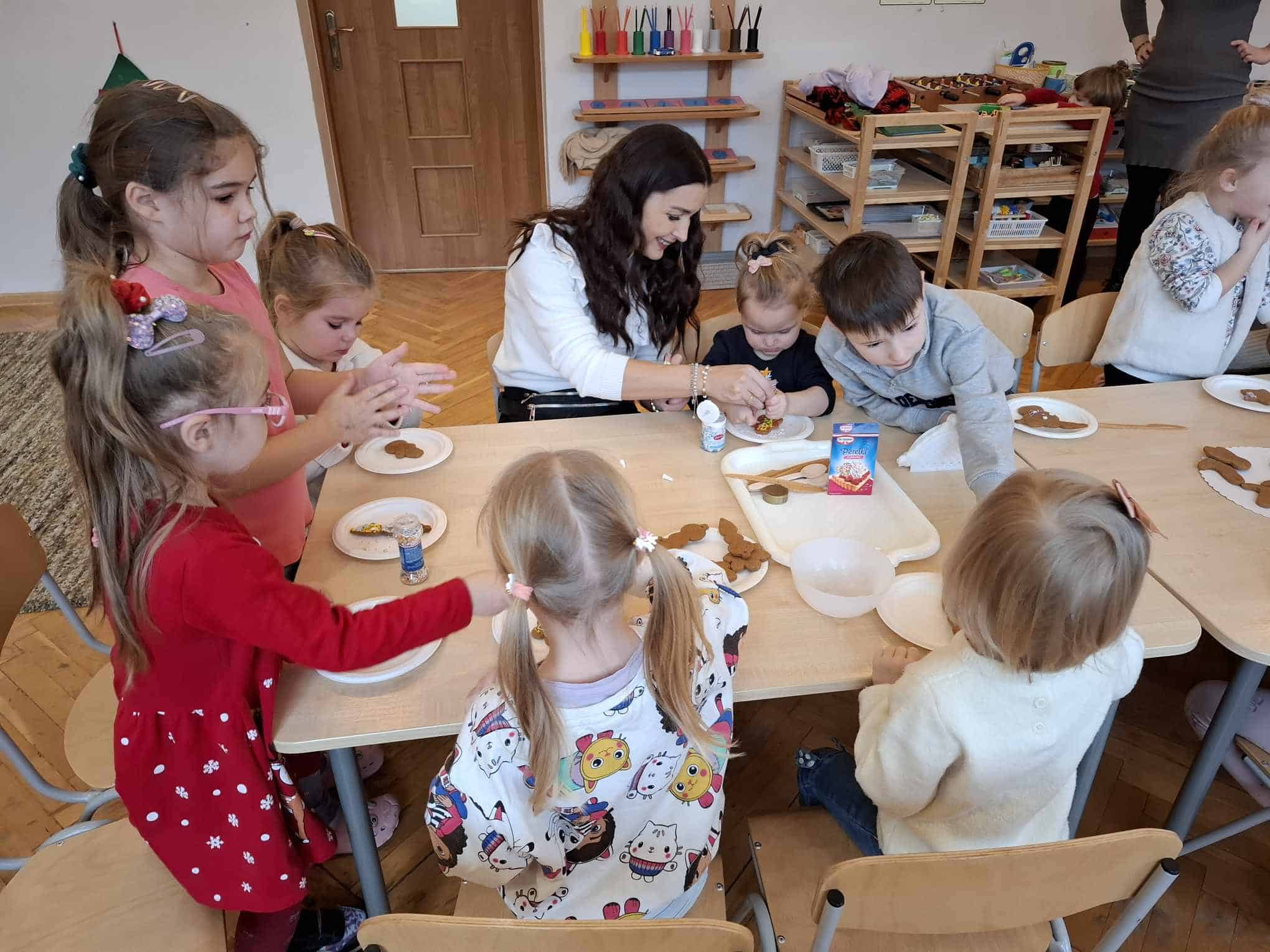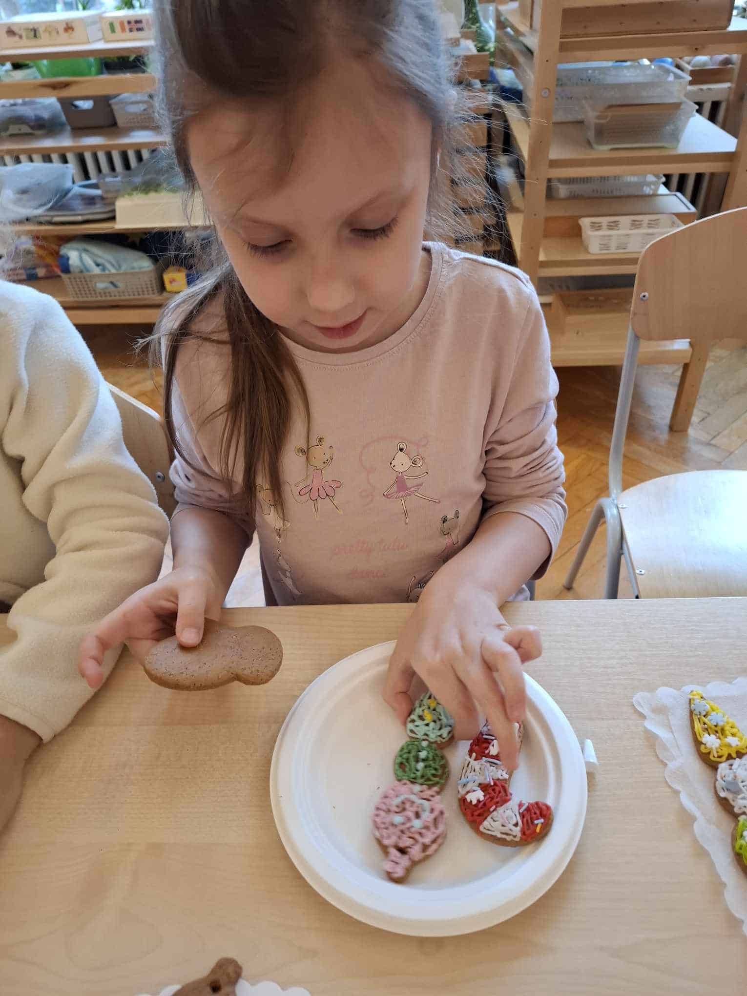 W środę, 11 grudnia, odbyły się w naszej grupie warsztaty świąteczne z udziałem członków rodzin naszych Zieloniuszków. Wszyscy wspólnie, przy dźwiękach kolęd, zdobiliśmy pachnące, różnokształtne pierniczki – symbol świąt bożonarodzeniowych.