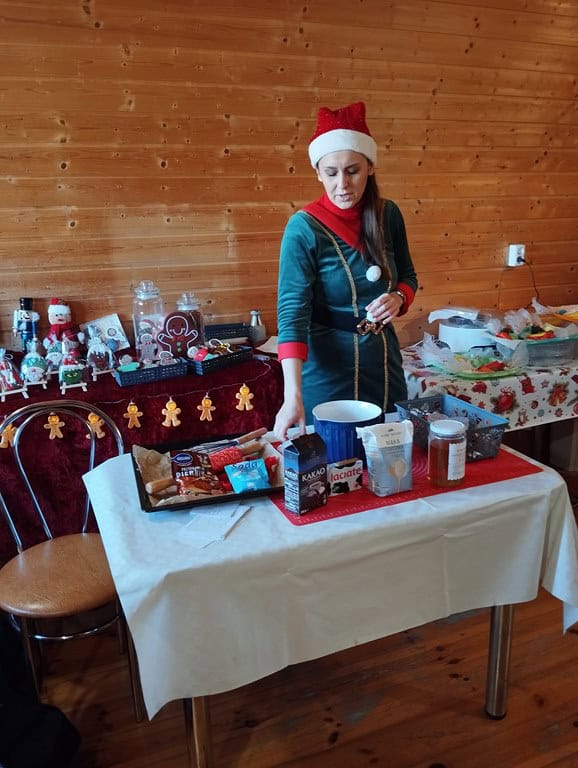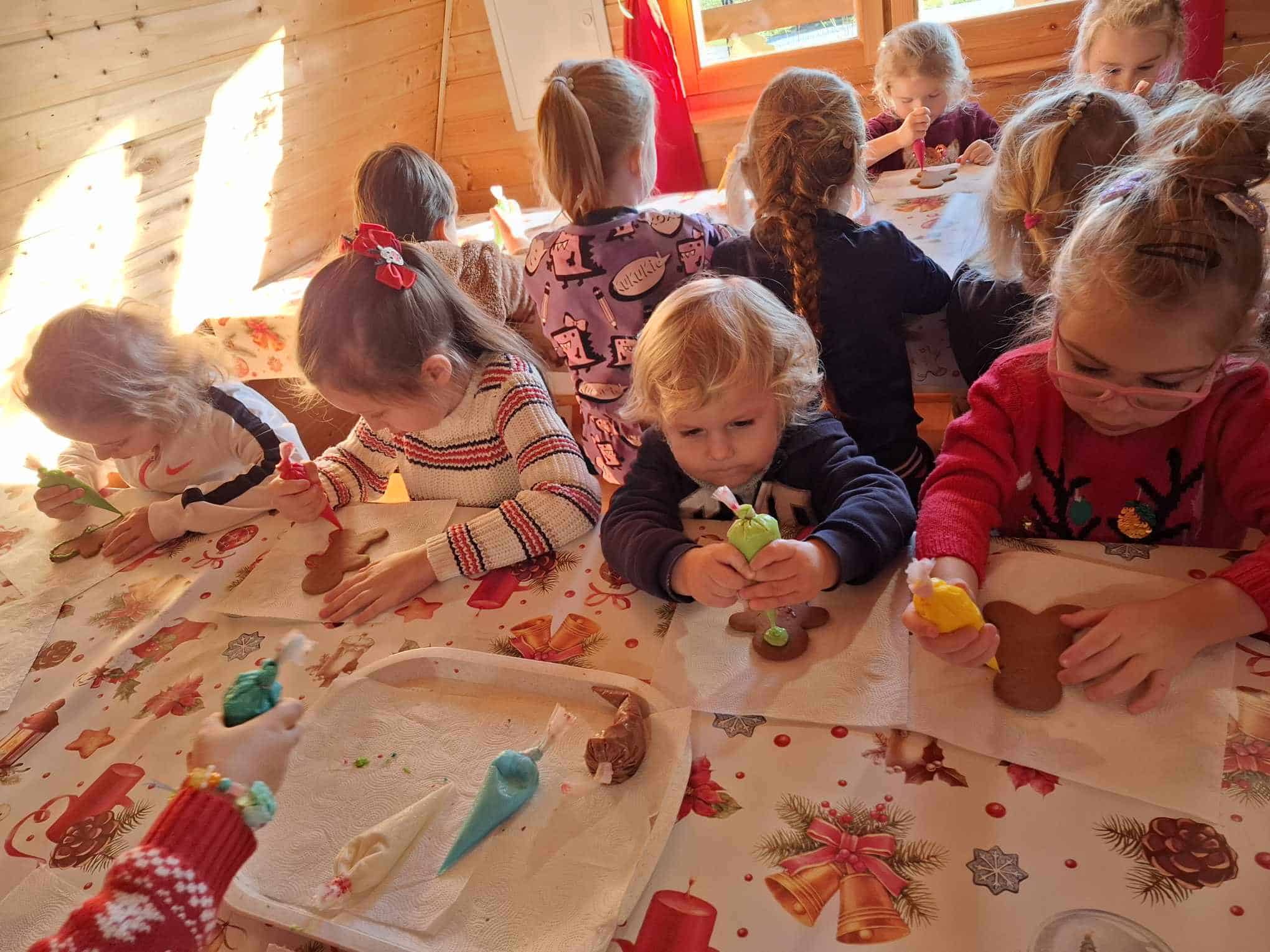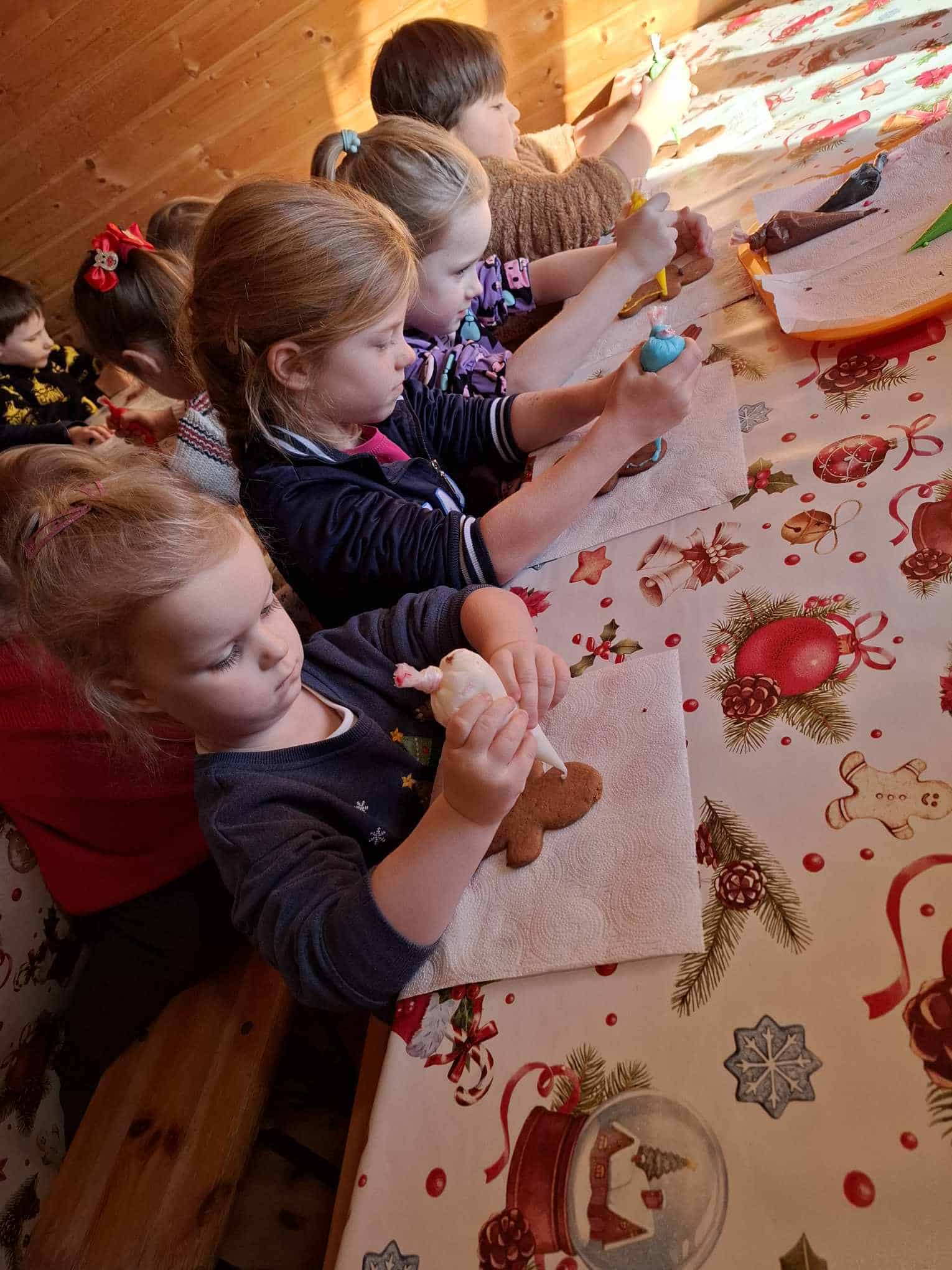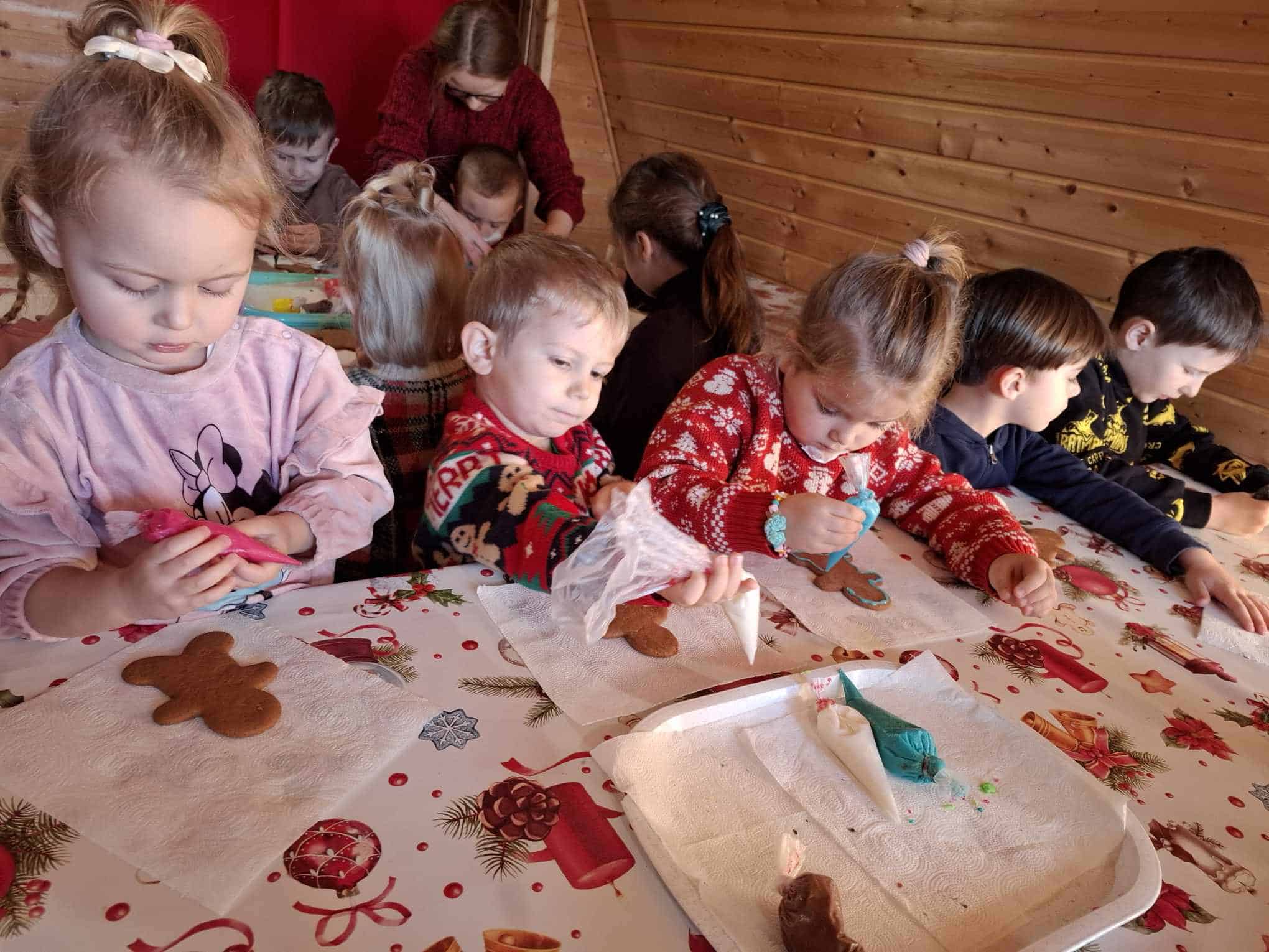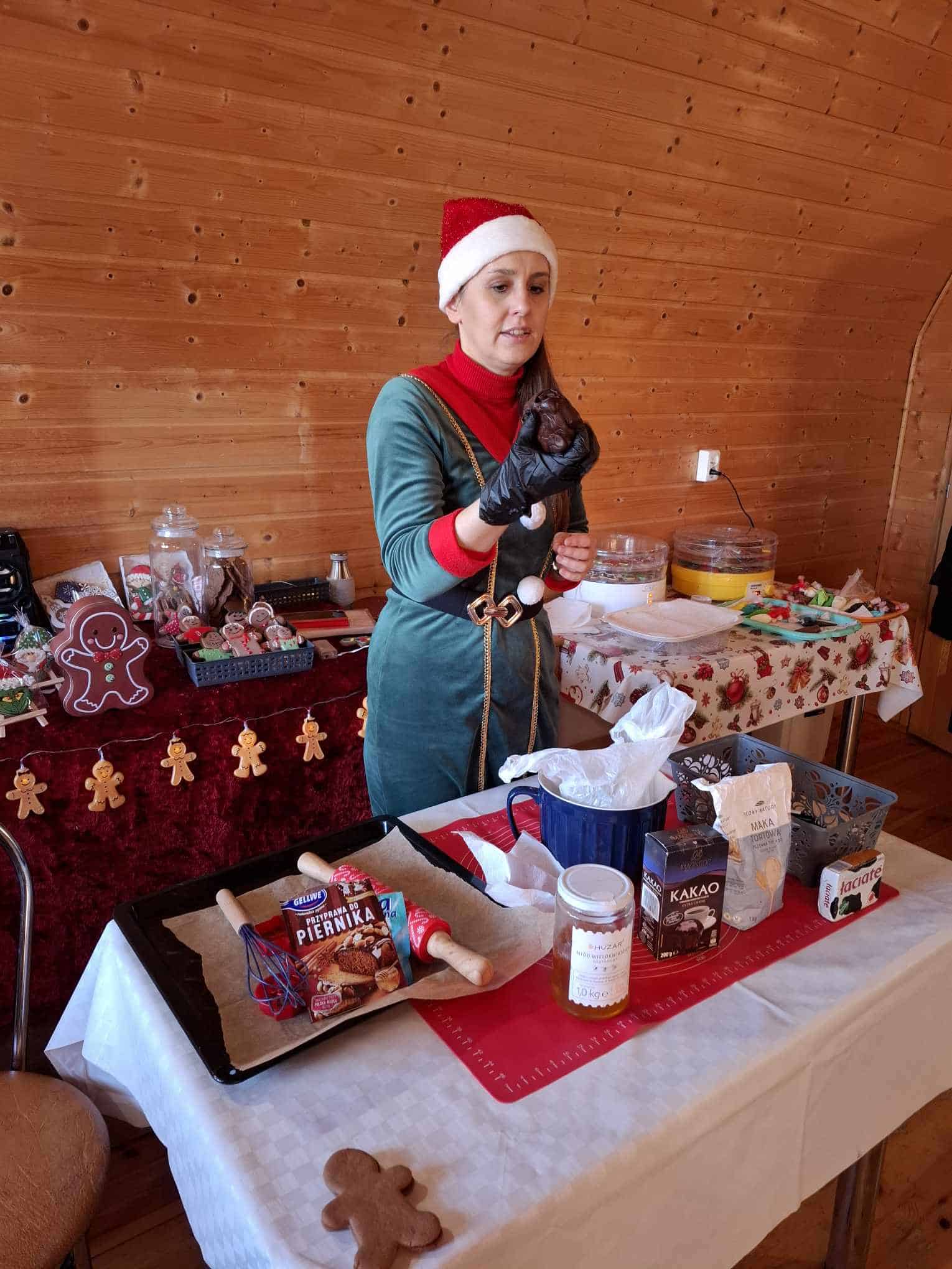 Braliśmy udział w warsztatach robienia i zdobienia pierniczków, piliśmy pyszną gorącą czekoladę, pisaliśmy listy i co najważniejsze spotkaliśmy się ze Świętym Mikołajem, który wraz ze swoimi elfami umilał nam czas w swojej chacie.