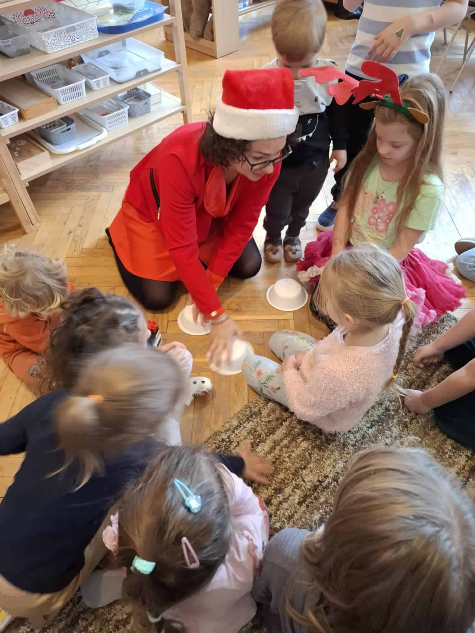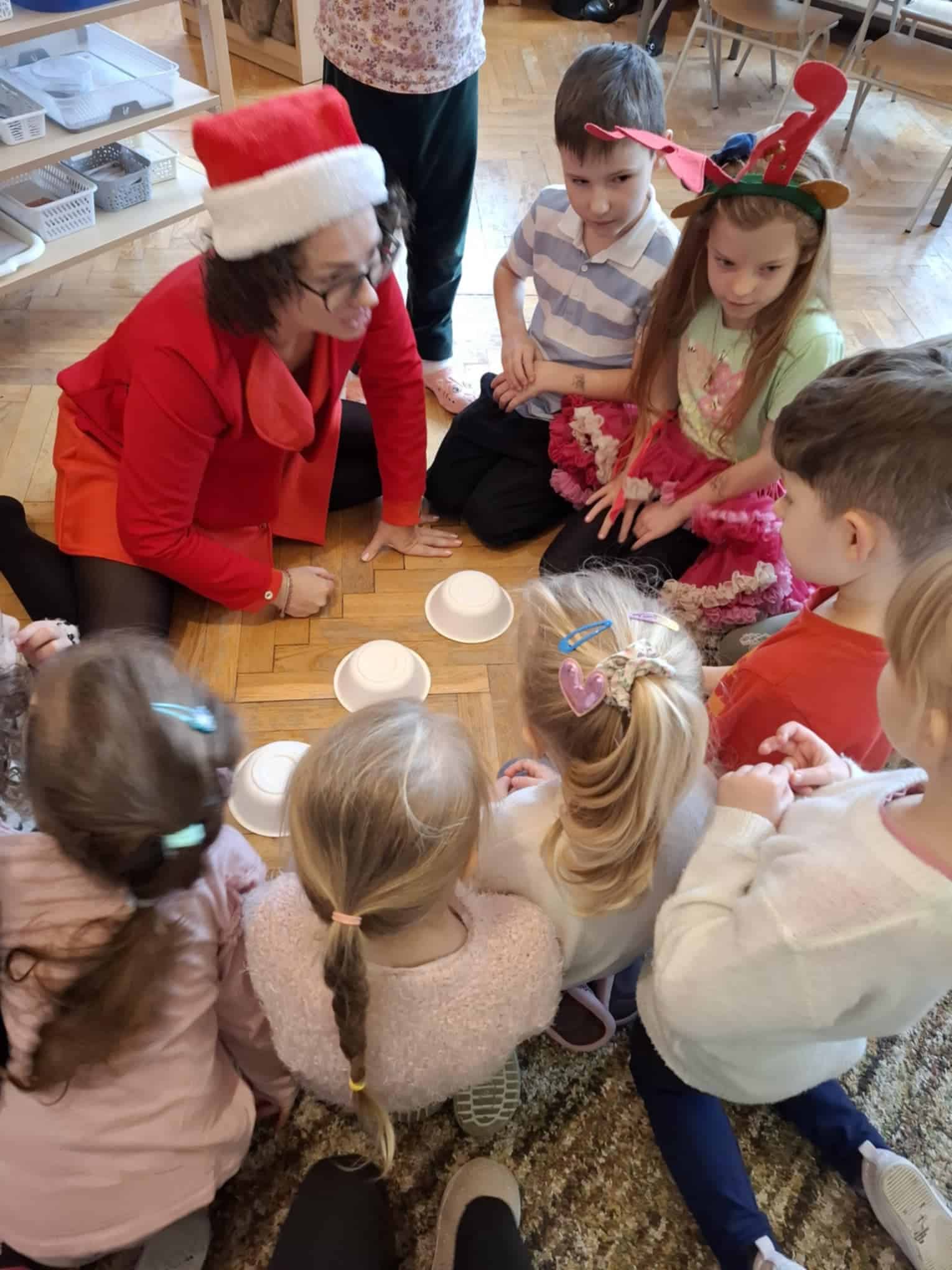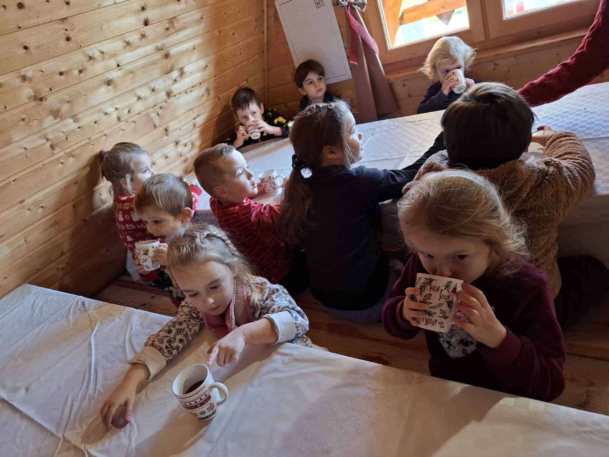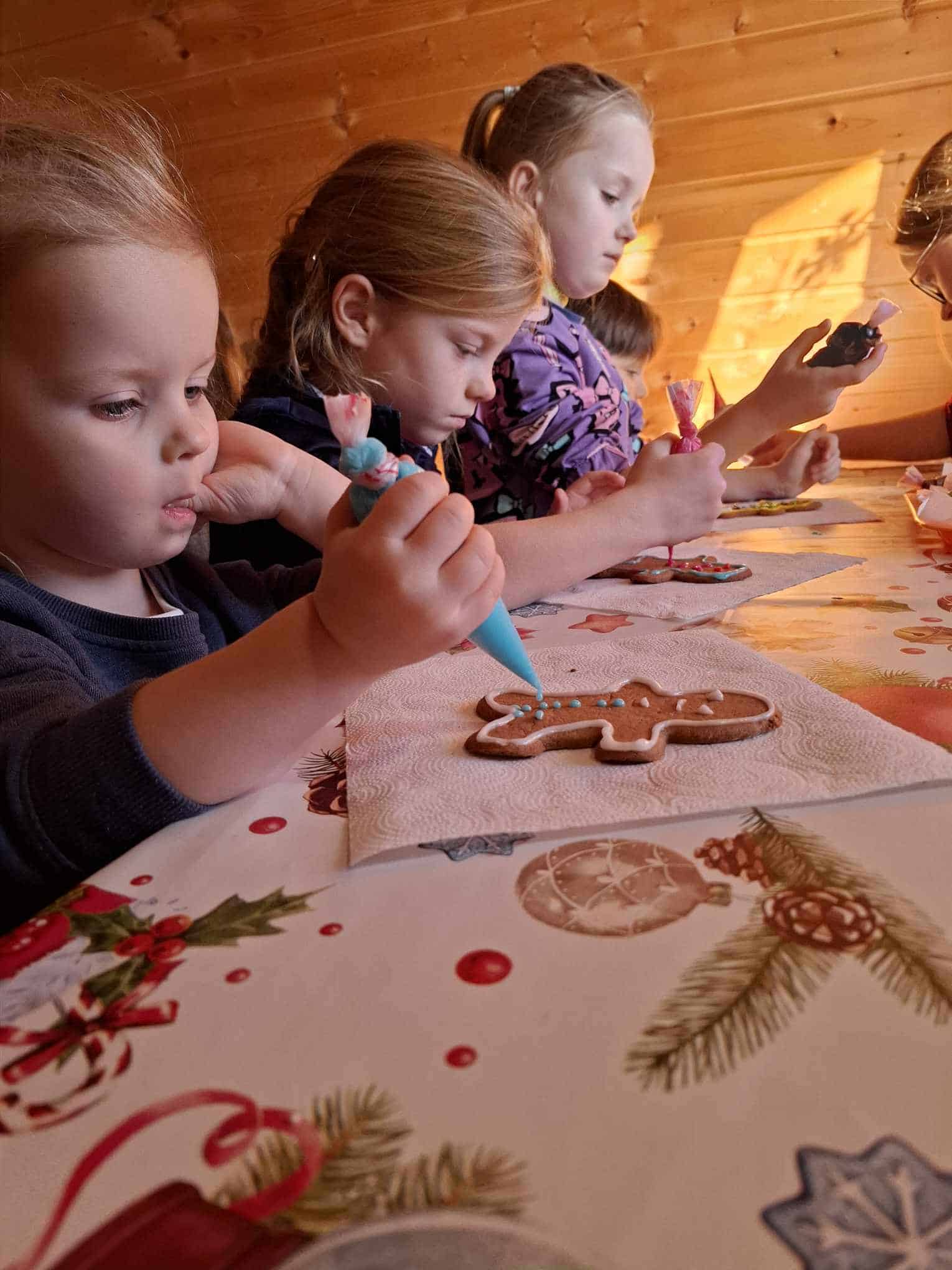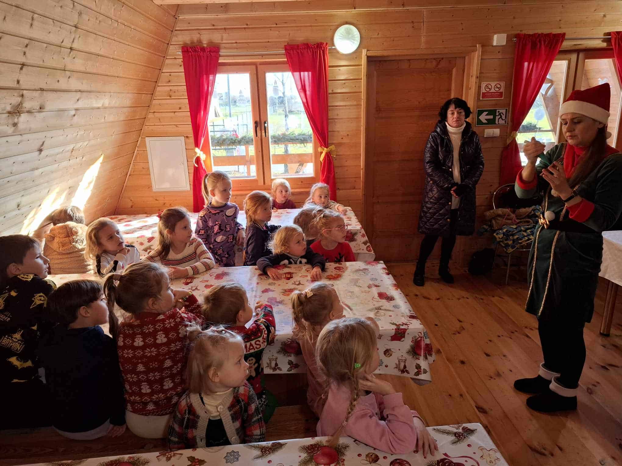 Braliśmy udział w warsztatach robienia i zdobienia pierniczków, piliśmy pyszną gorącą czekoladę, pisaliśmy listy i co najważniejsze spotkaliśmy się ze Świętym Mikołajem, który wraz ze swoimi elfami umilał nam czas w swojej chacie.