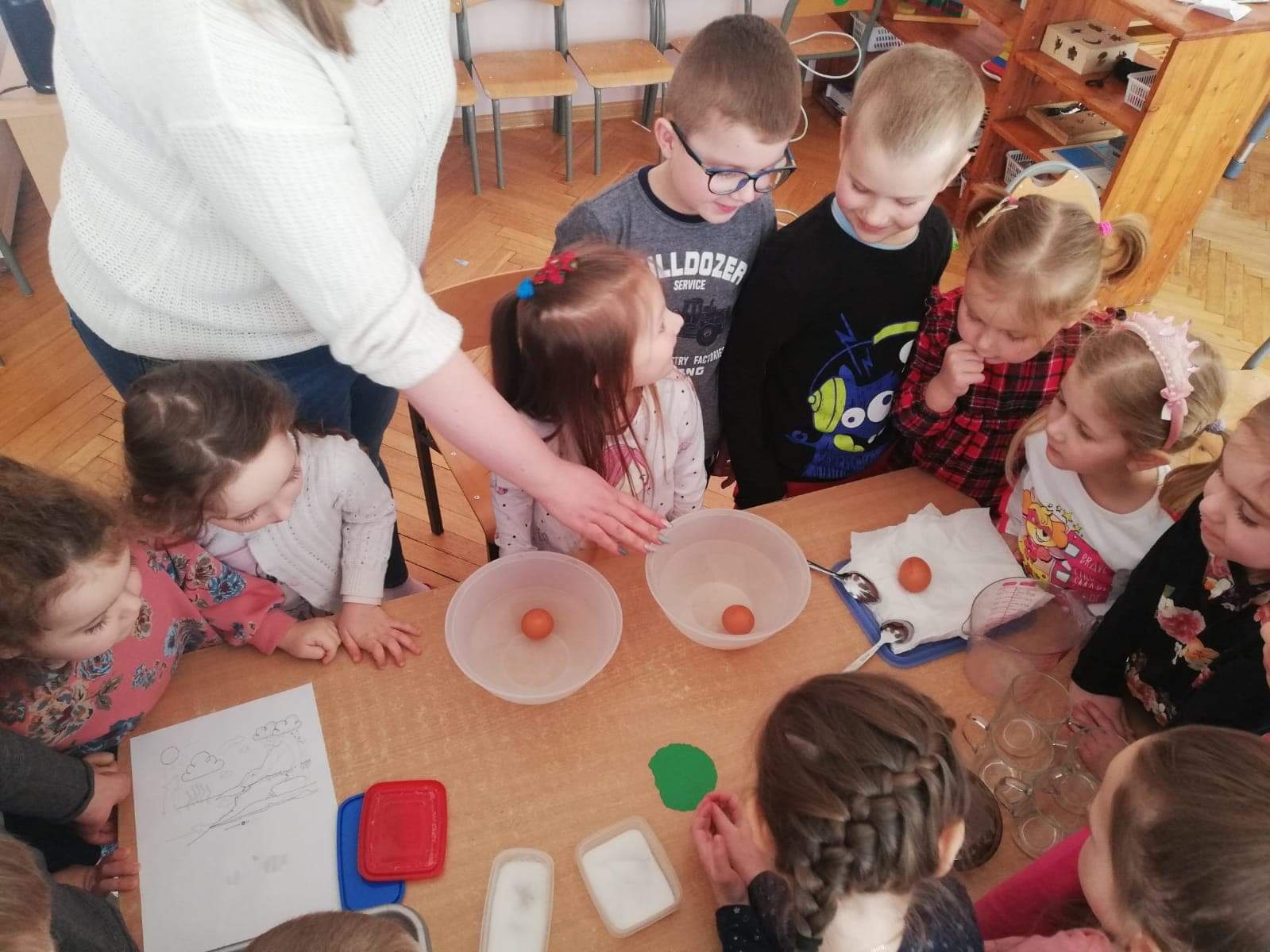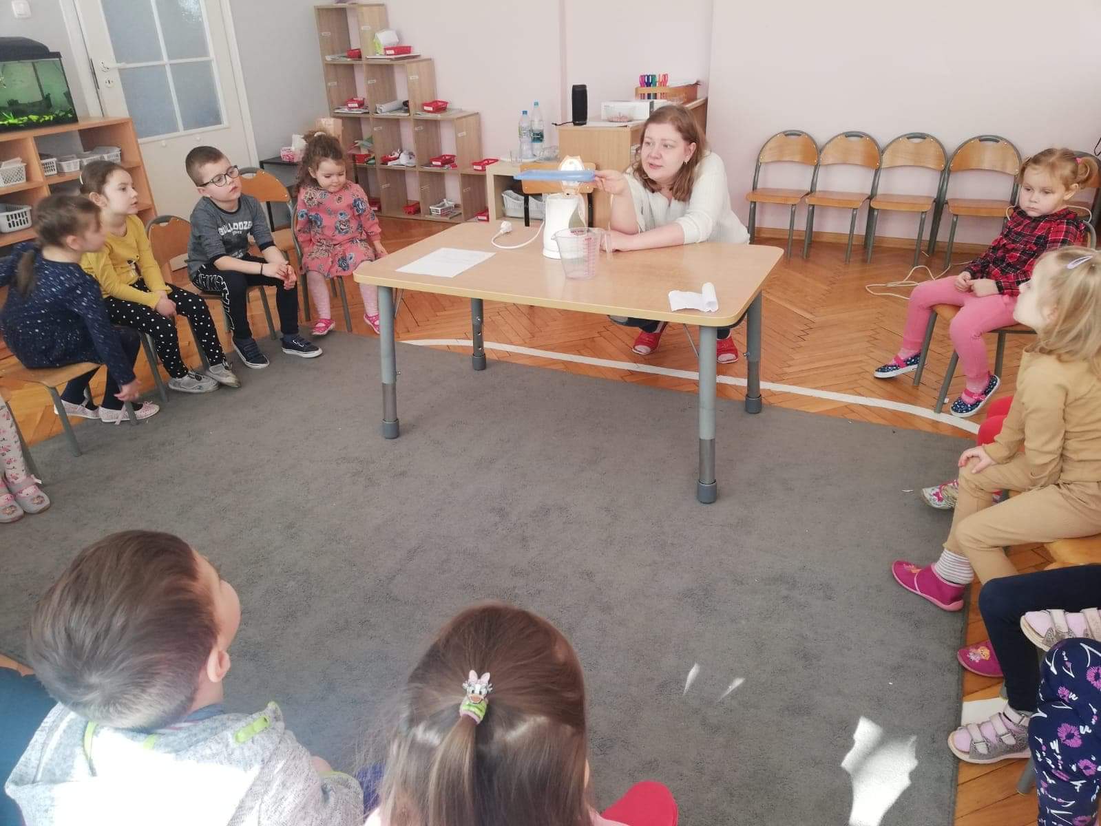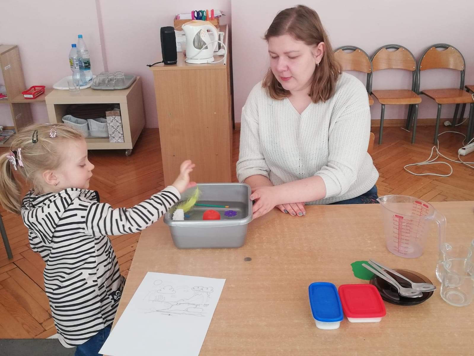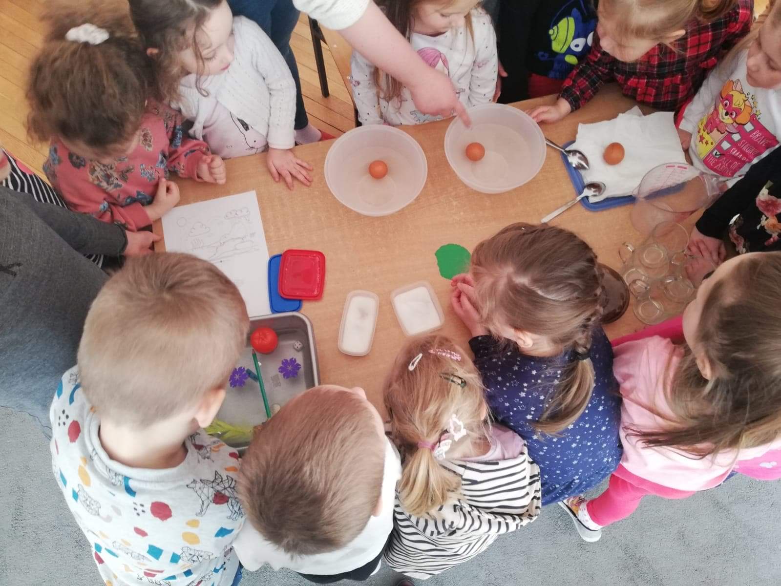 Odpowiedzią na powyższą zagadkę jest oczywiście woda. Dnia 22 marca obchodzony jest Światowy Dzień Wody, w związku z tym nasze przedszkolaki również przyłączyły się do świętowania tego ważnego dnia. Dzieci badały i poznawały właściwości wody takie jak smak, zapach czy kolor. Zapoznały się z obiegiem wody w przyrodzie, który bardzo je zaciekawił. Rozpoznawały także odgłosy jakie może wydawać woda: szum fal, kapanie wody z kranu, odgłos wodospadu czy deszczu. Rozmawialiśmy również o tym jak ważna jest woda dla ludzi ale także dla zwierząt i roślin, nasze przedszkolaki wykazały się dużą wiedzą na ten temat i celnymi spostrzeżeniami. W obchodach Dnia Wody nie zabrakło eksperymentów z nią w roli głównej. Wraz z dzieci przeprowadziliśmy kilka doświadczeń. Dzięki obchodom tego święta wszystkie przedszkolaki wiedzą jak ważną role pełni woda w przyrodzie, a także jak istotna jest dla nas wszystkich, bo bez wody nie byłoby życia.
