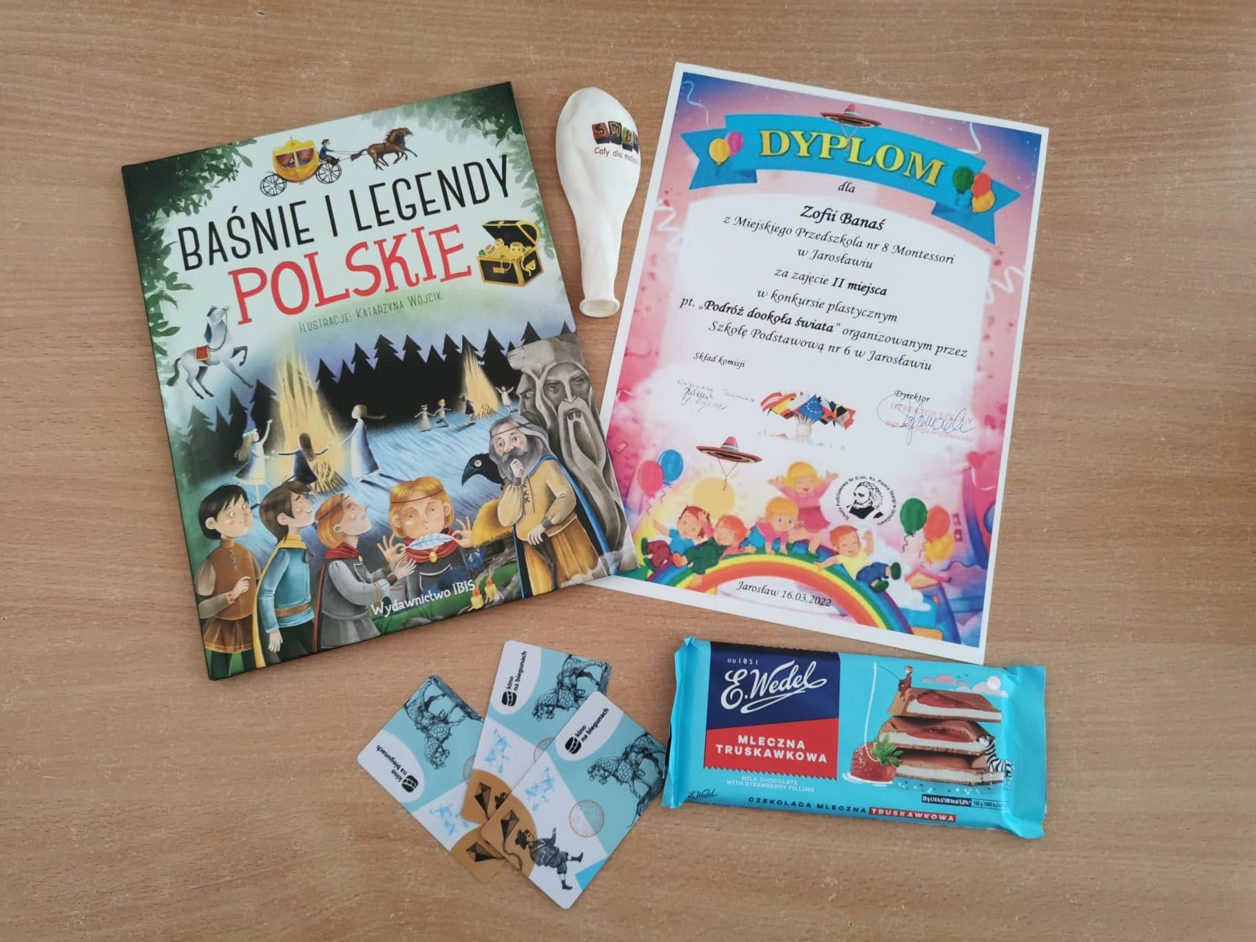 Zosia zdobyła II miejsce 🙂 otrzymała piękne nagrody: dyplom, książkę pt. „Baśnie i legendy Polskie”, czekoladę oraz trzy bilety do Kina na biegunach.