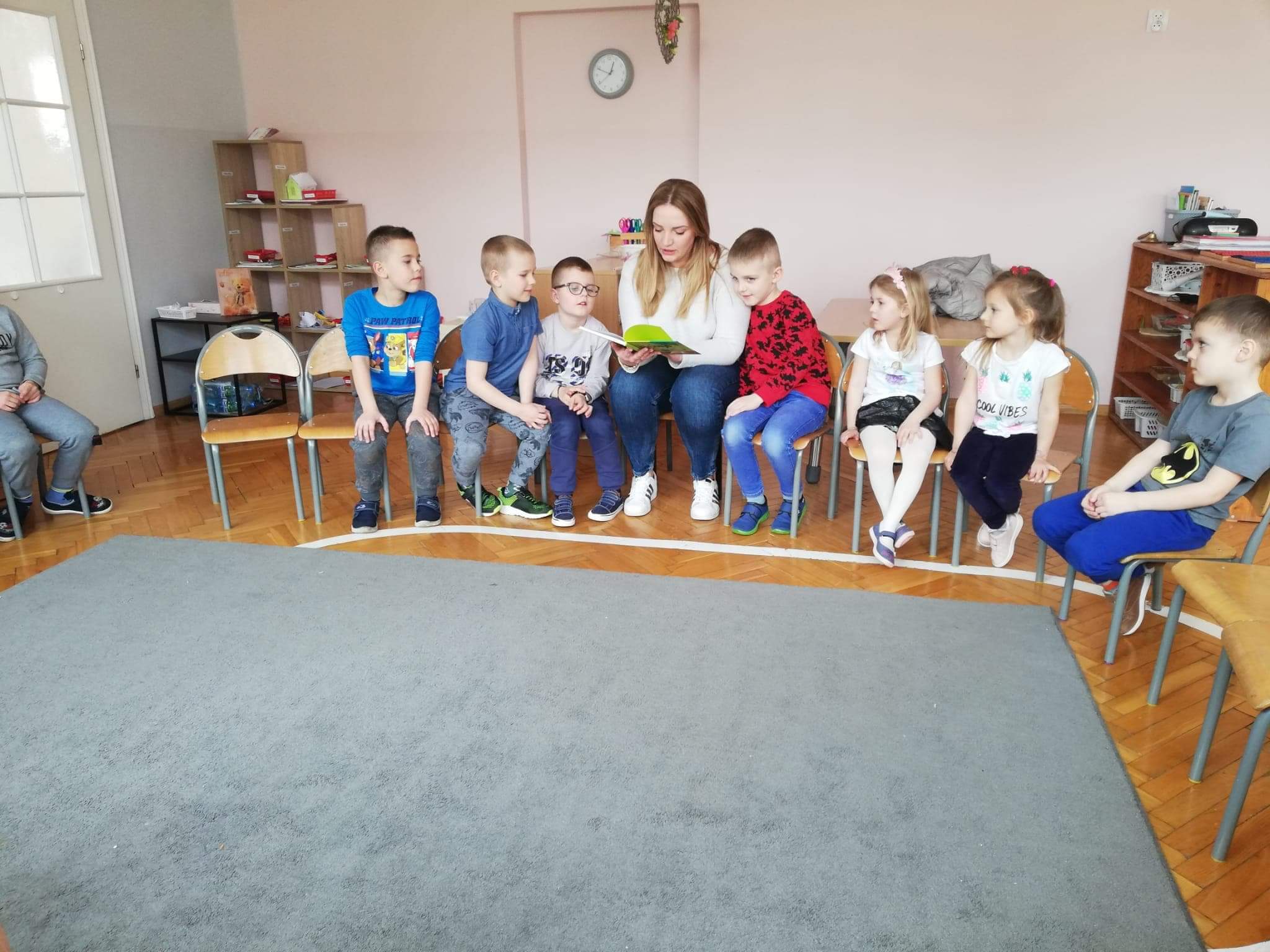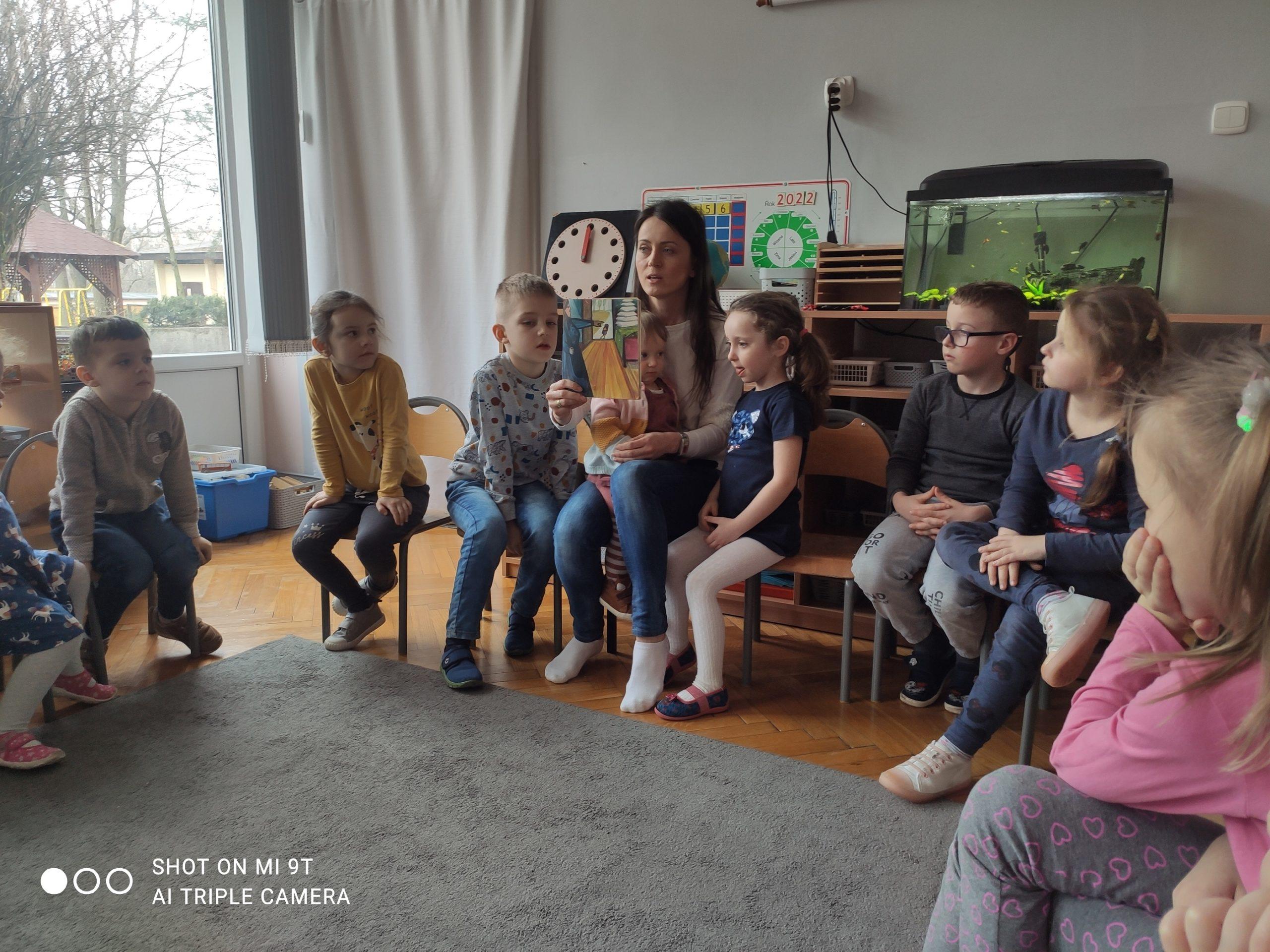 W tym tygodniu z książkami pełnymi przygód odwiedziły nas mama Ninki wraz z jej młodszą siostrzyczką Lili oraz mama Alanka. Tuż po obiedzie nasi goście przeczytali przedszkolakom wybrane przez siebie książeczki. Dzieci z zaciekawieniem i z uwagą śledziły przygody Kozuchy Kłamczuchy- tytułowej bohaterki książki czytanej przez mamę Ninki a także historię kropki, która chciała poznać świat z książeczki wybranej przez mamę Alanka. Przedszkolaki chętnie odpowiadały na zadawane pytania. Wiek przedszkolny to odpowiedni czas aby rozwijać zainteresowania czytelnicze u dzieci. Powinniśmy zachęcać je do częstego kontaktu z książką, także własną postawą. Ponieważ ma to bardzo duże znaczenie w dalszej nauce i uczestnictwie w kulturze. Rodzinne czytanie opowiadań pozwala nam stworzyć atmosferę ciepła i bliskości dlatego ważne jest abyśmy czytali książki dzieciom.
