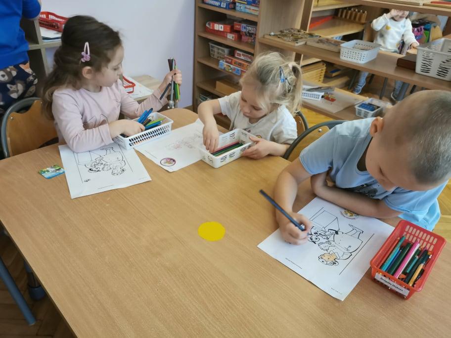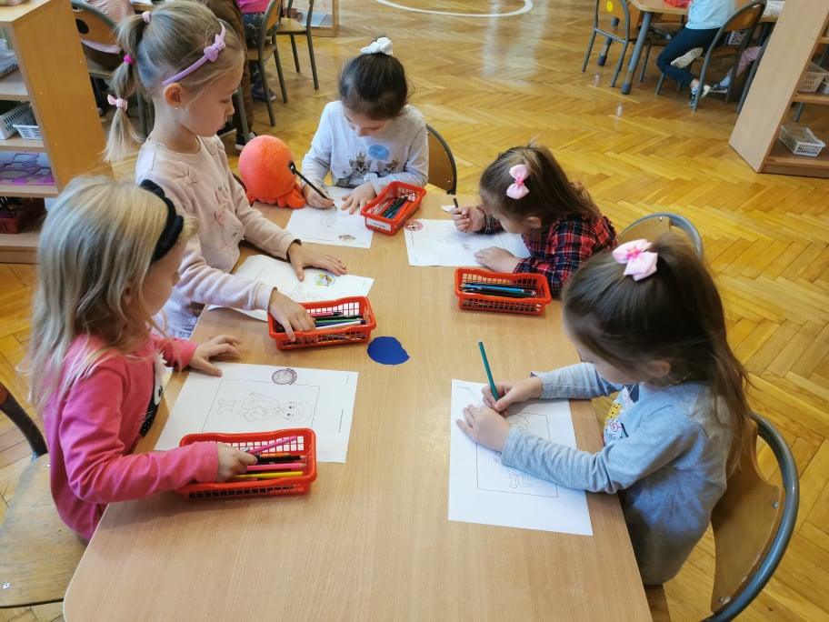 Na zakończenie przedszkolaki otrzymały kolorowanki oraz naklejki. Pani Gosi pomagała jej osobista asystentka – Emilka. Kto wie, może pójdzie w ślady swojej mamusi i też będzie pielęgniarką.