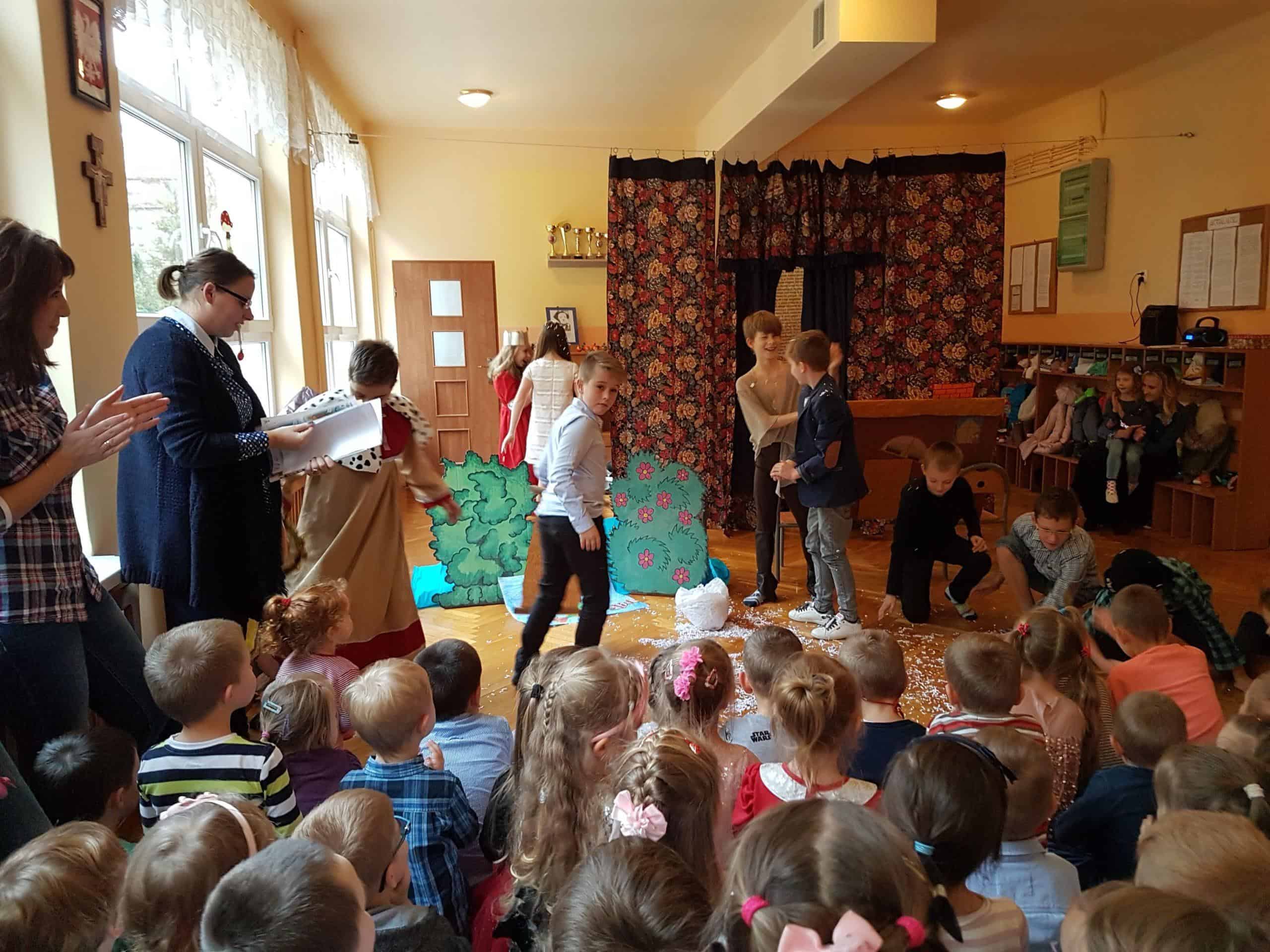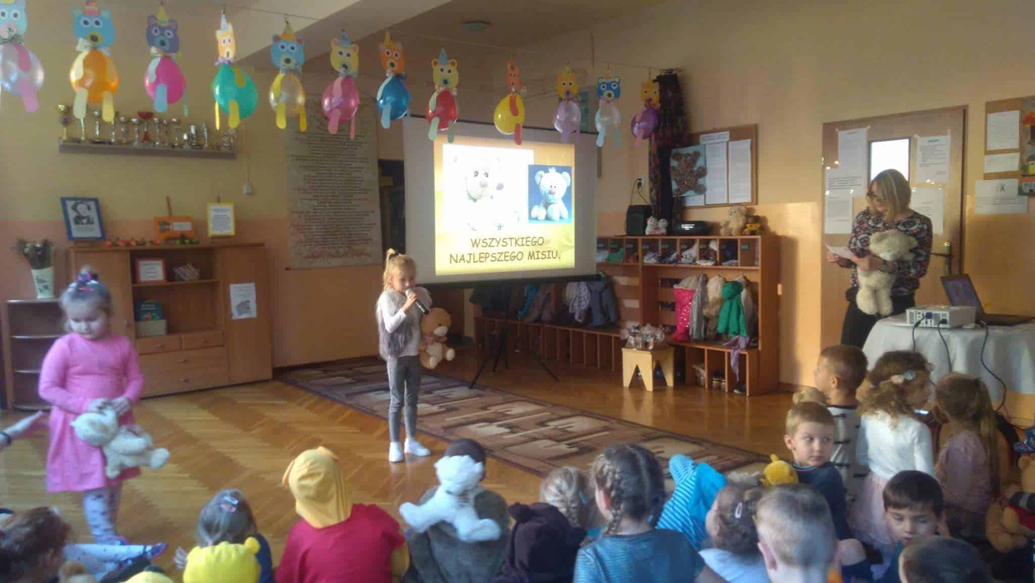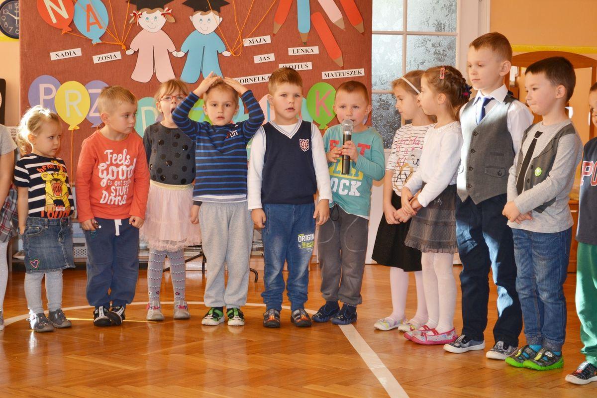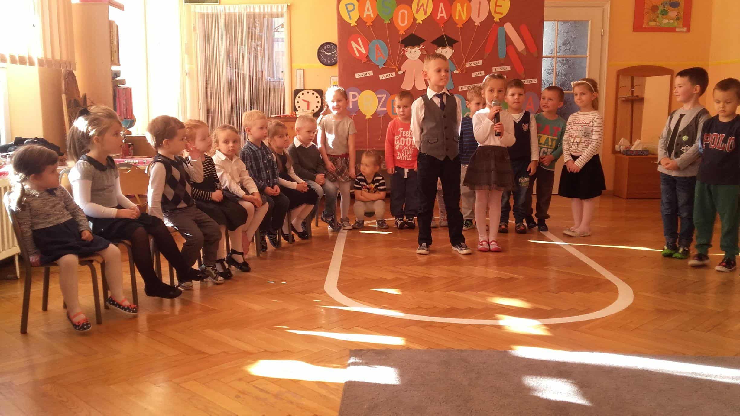 Gdy pojawił się w drzwiach naszej sali na buziach przedszkolaków malowały się szerokie uśmiechy. Dzieci przywitały gościa słowami: