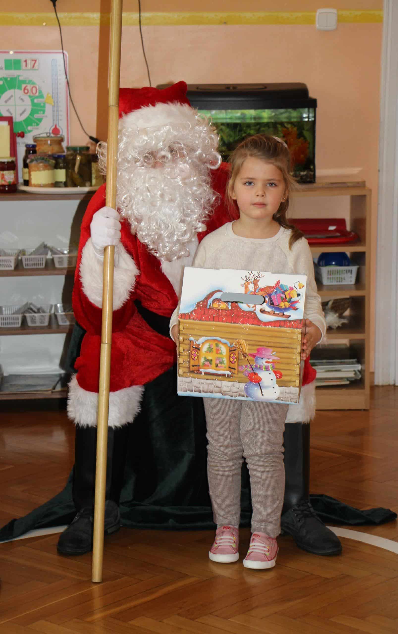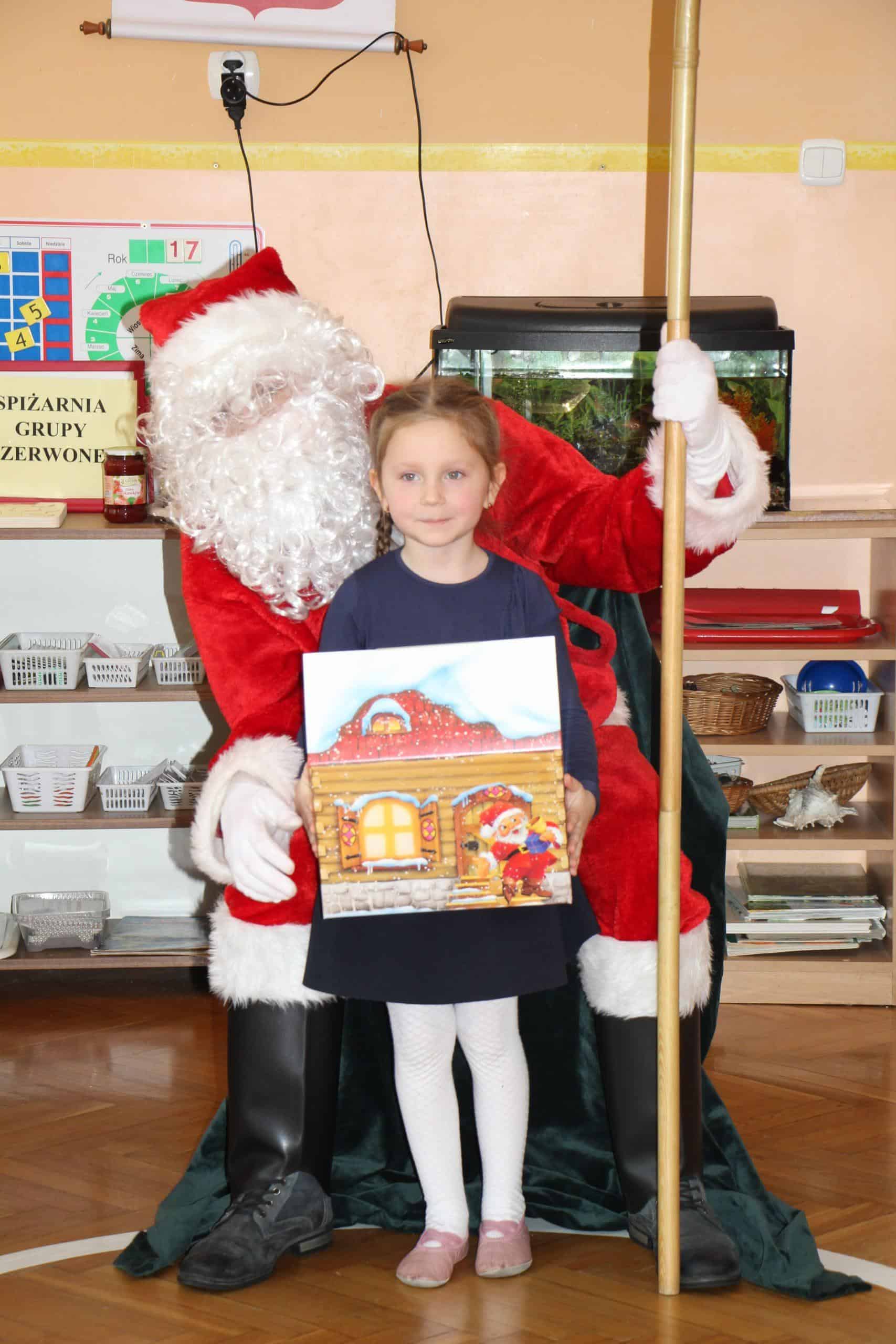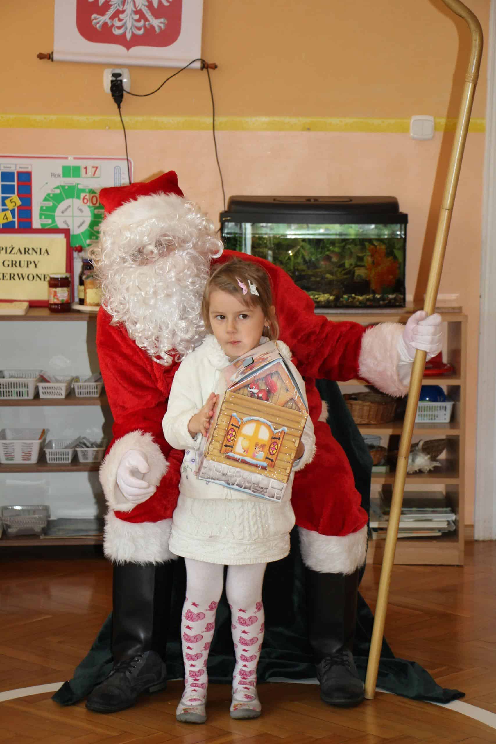 Potem zaśpiewały Mu jeszcze piękne piosenki. Po występach Mikołaj wręczył każdemu wspaniały prezent i musiał się pożegnać, ponieważ czekały na niego jeszcze inne dzieci. Zdjęcia zrobione z Mikołajem, będą wspaniałą pamiątką tego spotkania, pełnego pozytywnych przeżyć i emocji. Szkoda tylko, że ten wyjątkowy Gość odwiedza nas tylko raz w roku.