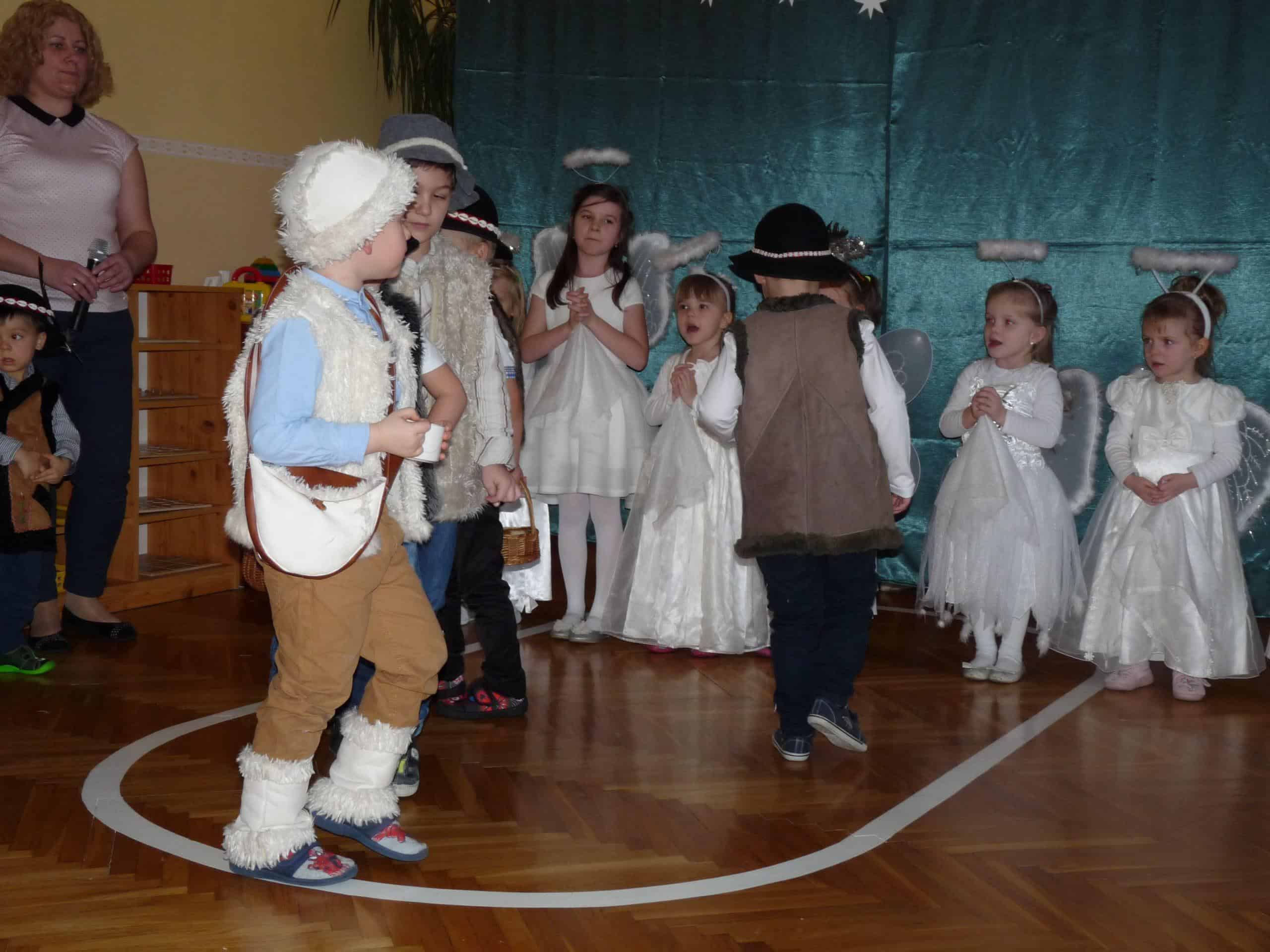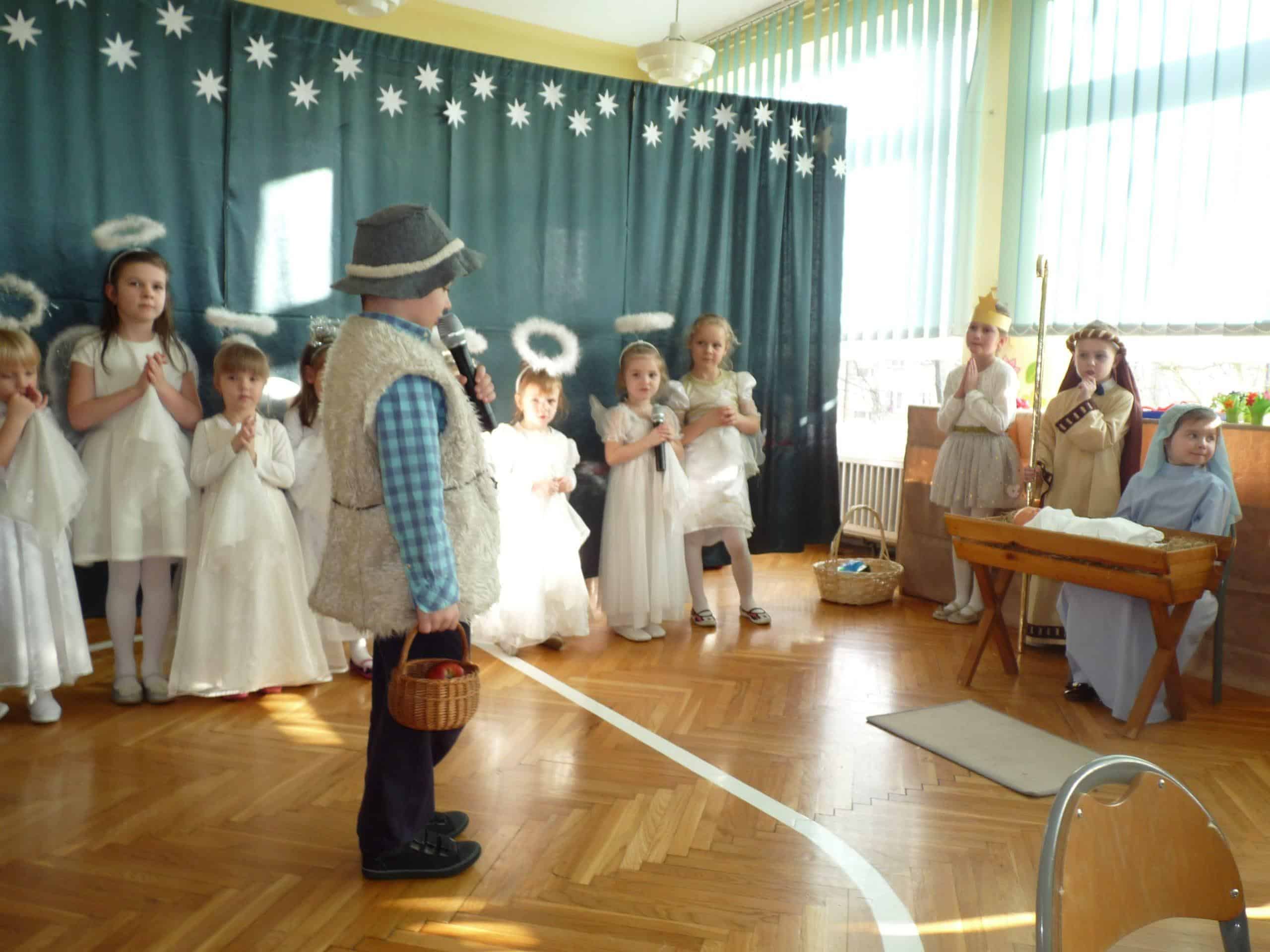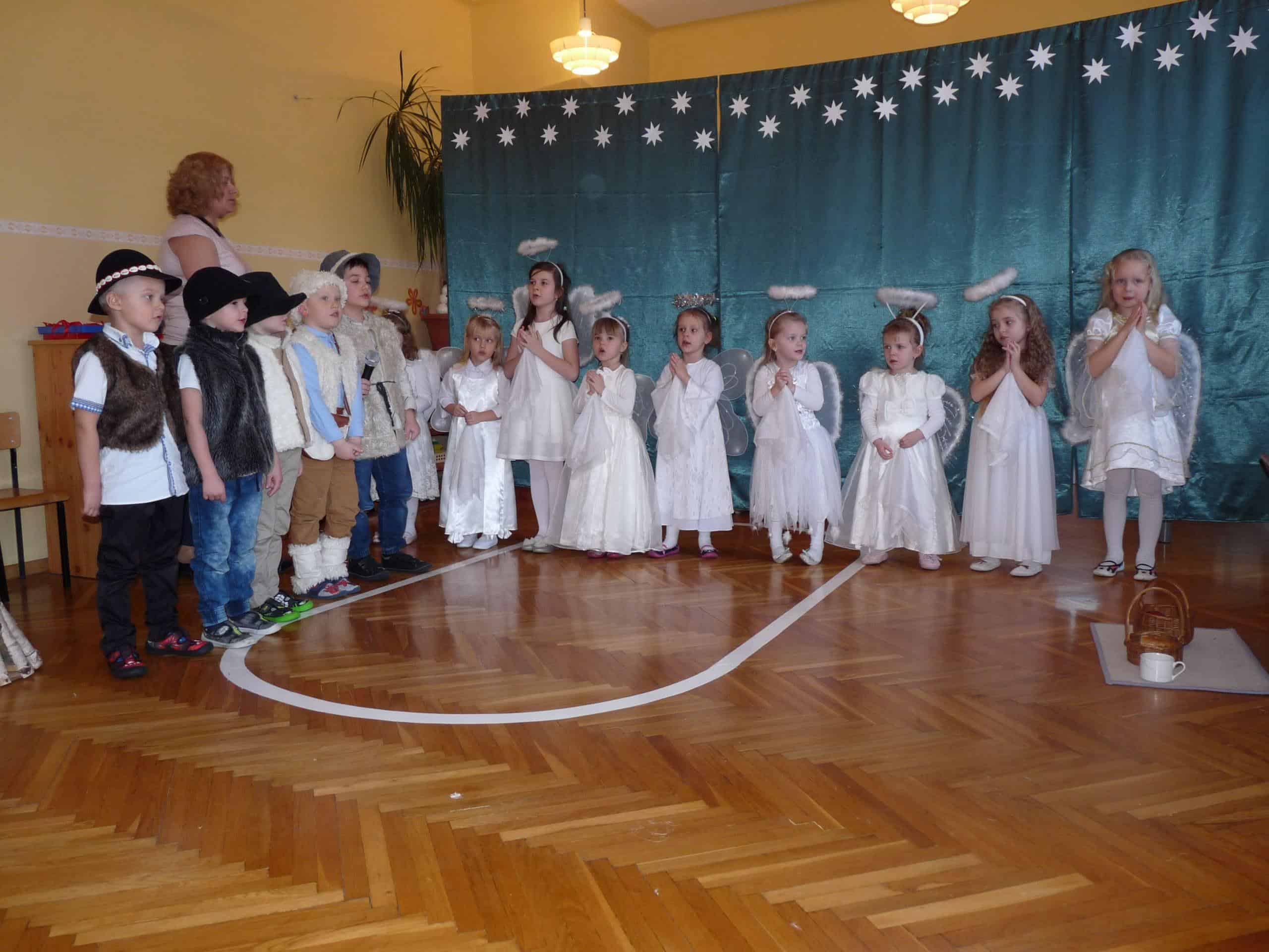 18 stycznia dzieci z grupy „Żółtej” zaprezentowały swoje umiejętności artystyczne w przedstawieniu jasełkowym. Zaproszeni na tą uroczystość, licznie przybyli rodzice, mieli okazję podziwiać kunszt aktorski swoich pociech. Dzieci, w pięknych strojach aniołków, pastuszków, królów, oraz Maryi i Józefa, z dużym zaangażowaniem odegrały swoje role. Wspaniały występ dzieci został nagrodzony gromkimi brawami. Spotkanie to było przedłużeniem radosnego czasu, jakim jest okres świąt Narodzenia Pańskiego. Wrażenia, które dostarczyli nam mali aktorzy, pozostaną na długo w naszych sercach i pamięci.