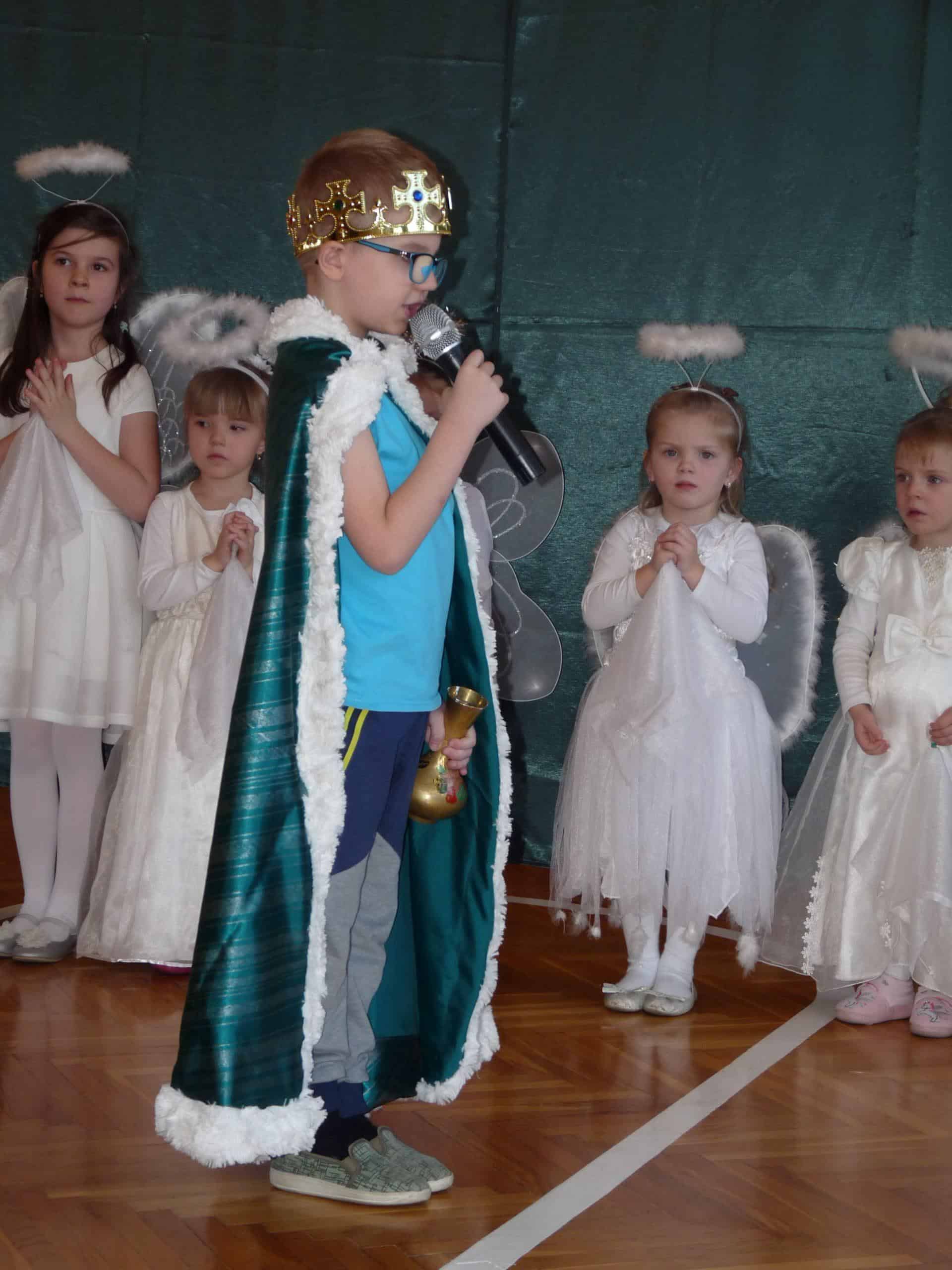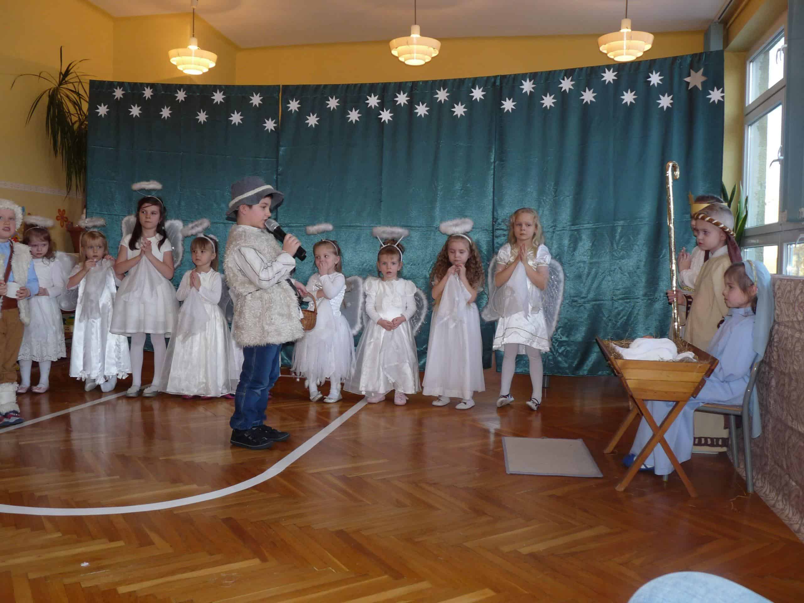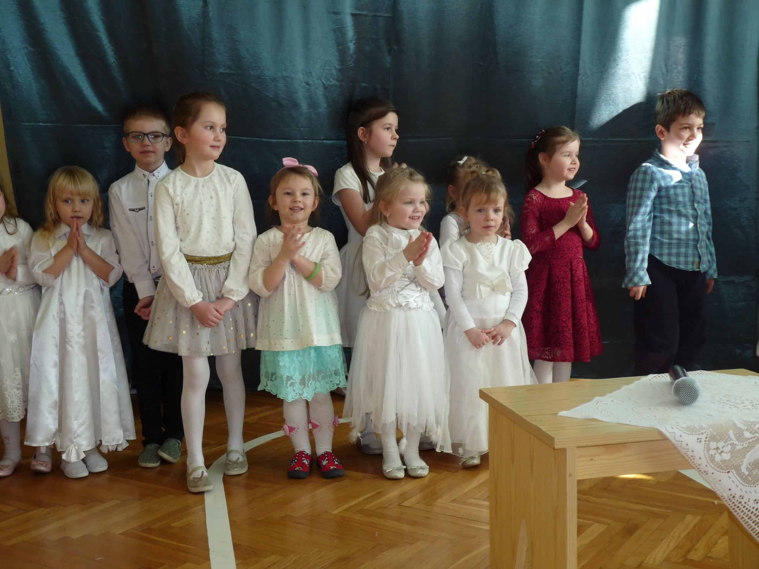 18 stycznia dzieci z grupy „Żółtej” zaprezentowały swoje umiejętności artystyczne w przedstawieniu jasełkowym. Zaproszeni na tą uroczystość, licznie przybyli rodzice, mieli okazję podziwiać kunszt aktorski swoich pociech. Dzieci, w pięknych strojach aniołków, pastuszków, królów, oraz Maryi i Józefa, z dużym zaangażowaniem odegrały swoje role. Wspaniały występ dzieci został nagrodzony gromkimi brawami. Spotkanie to było przedłużeniem radosnego czasu, jakim jest okres świąt Narodzenia Pańskiego. Wrażenia, które dostarczyli nam mali aktorzy, pozostaną na długo w naszych sercach i pamięci.