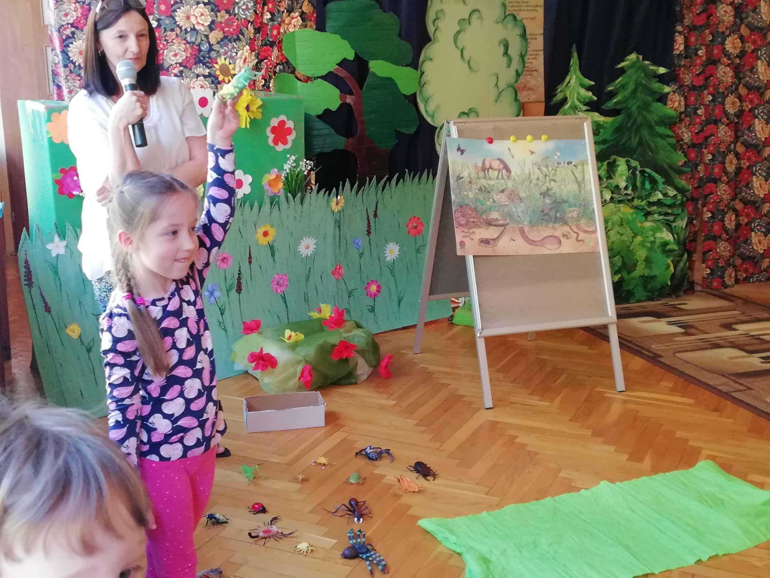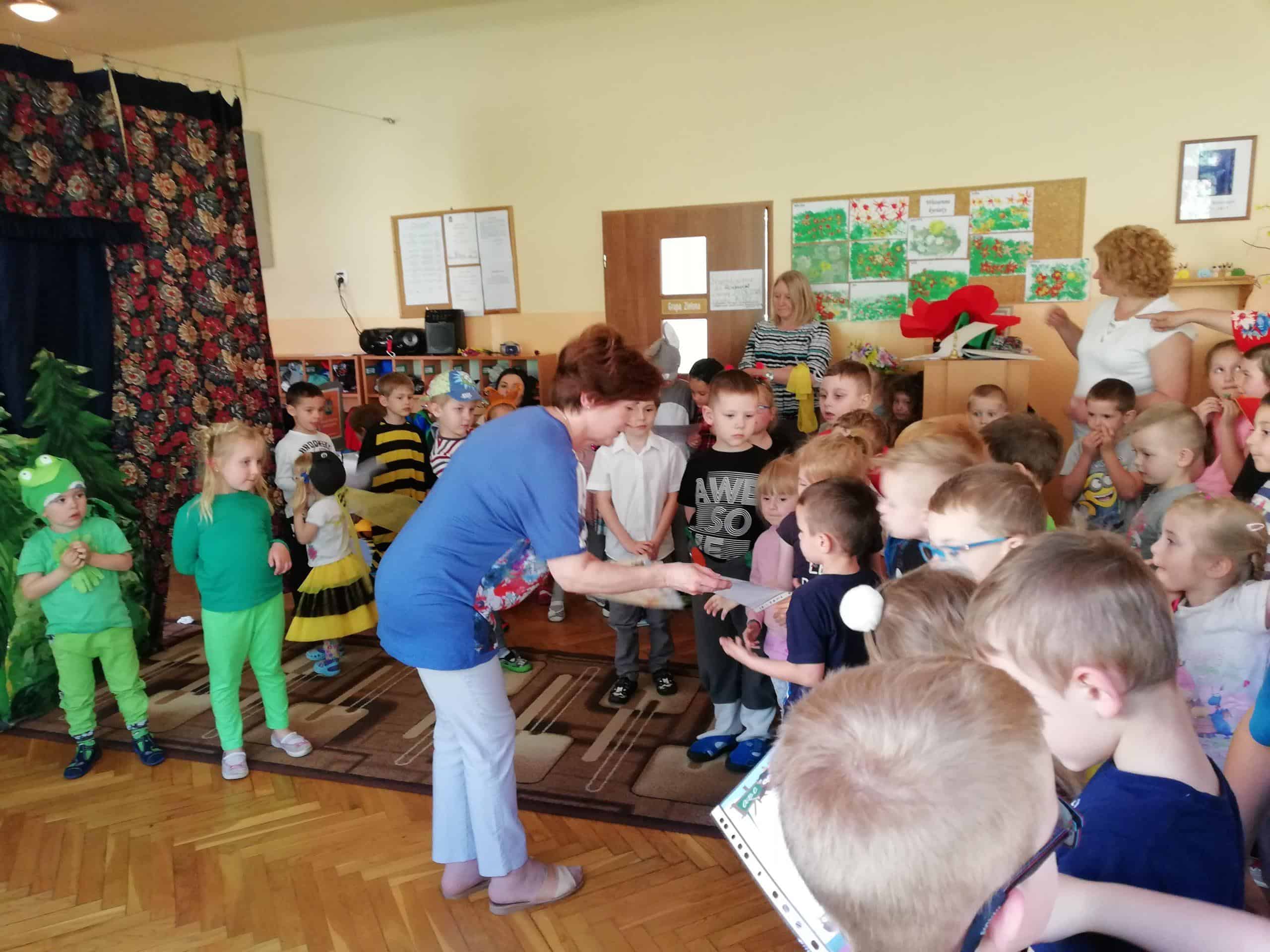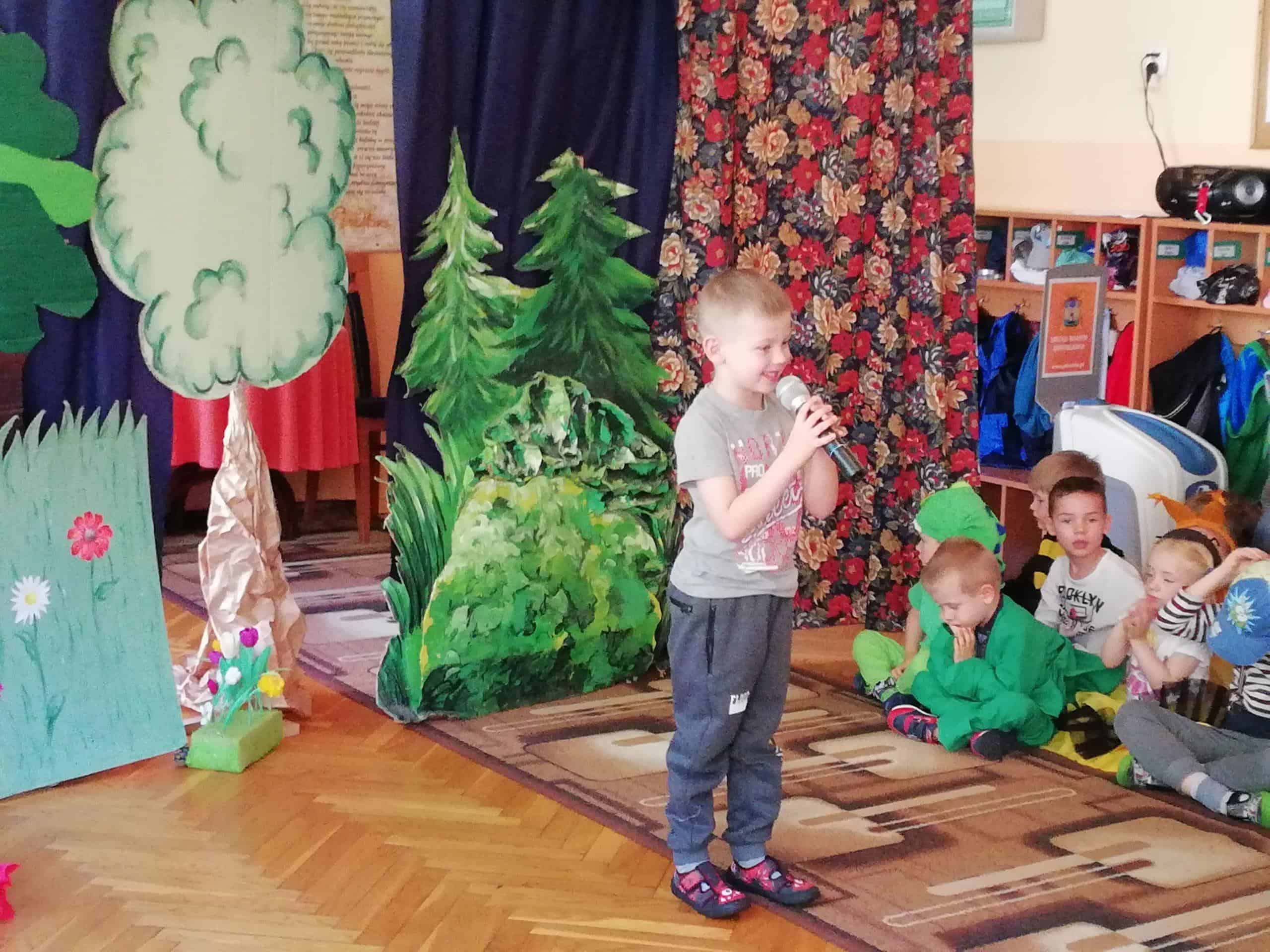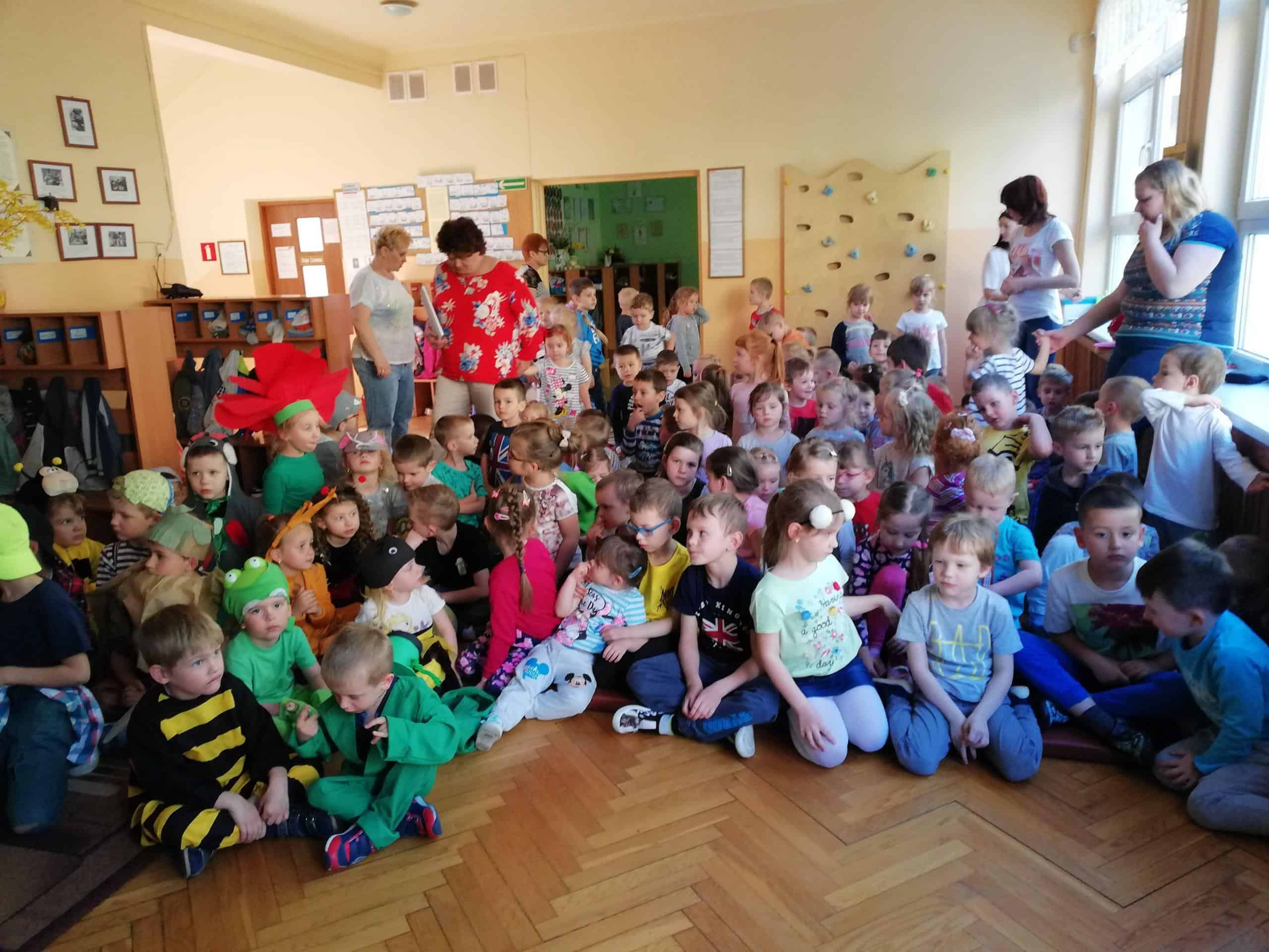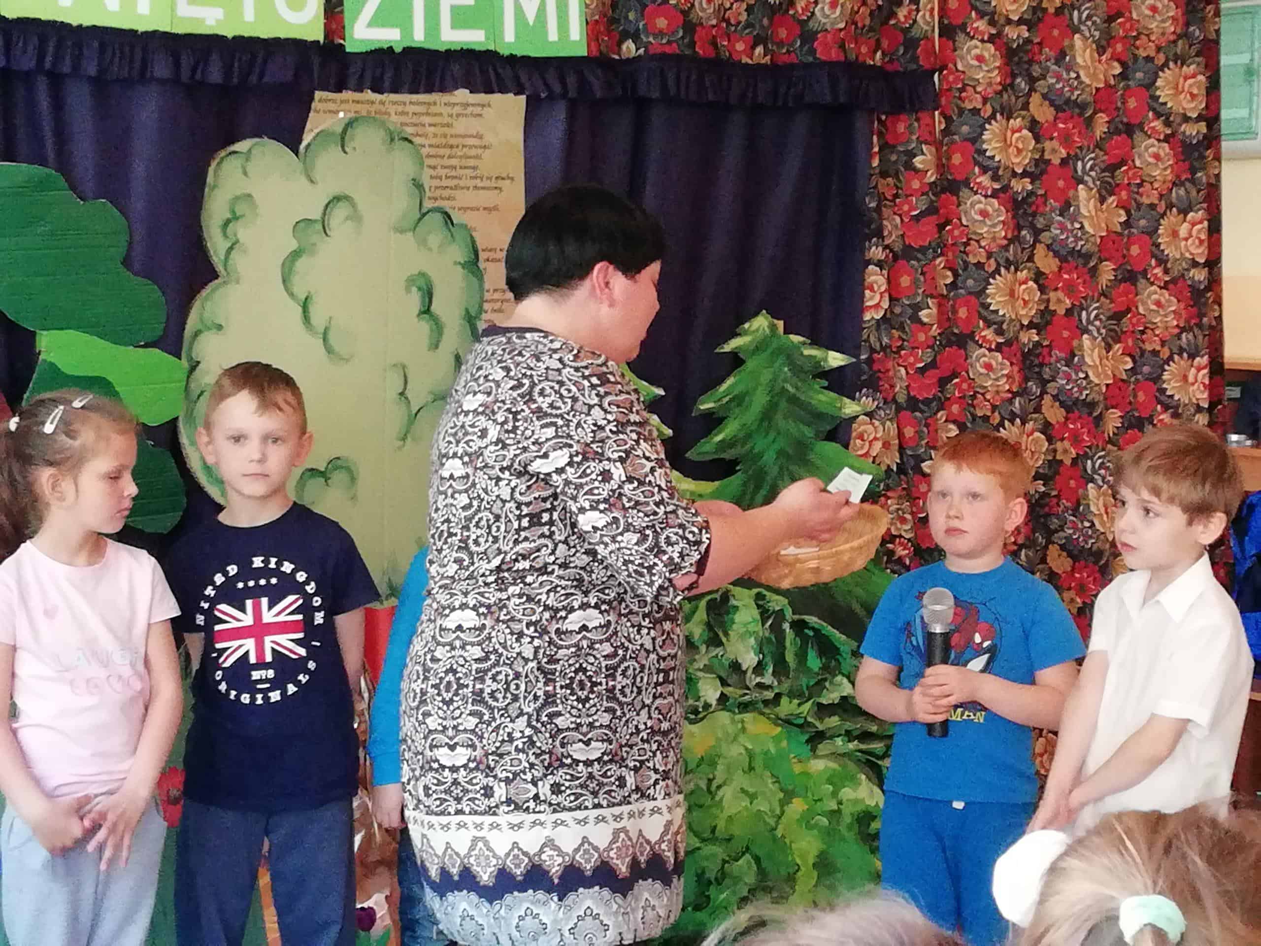 23 kwietnia obchodziliśmy w naszym przedszkolu Święto Ziemi. W tym roku każda grupa przedstawiła swój program o tematyce ekologicznej. Uroczystość rozpoczęła się inscenizacją „Ratujmy wiosnę” w wykonaniu grupy Zielonej, nad którą opiekę sprawuje pani Lidka. Dzieci pięknie ubrane, w ciekawej scenografii, udowodniły, że los przyrody nie jest im obojętny. Następnie pani Ania z grupy Czerwonej przeprowadziła grę planszową „Co wiesz o ekologii”. W tej grze zwycięzcami zostali wszyscy uczestnicy, dowodząc, że zagadnienia związane z tematem przeprowadzonych zajęć nie są im obce. Pani Renata z grupy Niebieskiej przeprowadziła quiz, podczas którego wszystkie dzieci wykazały się obszerną wiedzą ekologiczną. Pani Basia z grupy Pomarańczowej zapoznała nas z ekosystemem łąki, dzięki czemu poznaliśmy wiele żyjących na niej zwierząt i owadów, oraz występujących tam roślin. Dzieci z grupy Żółtej, pod opieką pani Marty, odczytały list Ziemi do dzieci, w którym nasza planeta żaliła się na krzywdy, jakie wyrządzają jej ludzie. Następnie przedszkolaki złożyły ślubowanie „miłośników przyrody”. Na zakończenie spotkania wszystkie grupy otrzymały dyplomy za wiedzę o tematyce ekologicznej oraz podziękowania za włączenie się do obchodów Święta Ziemi.